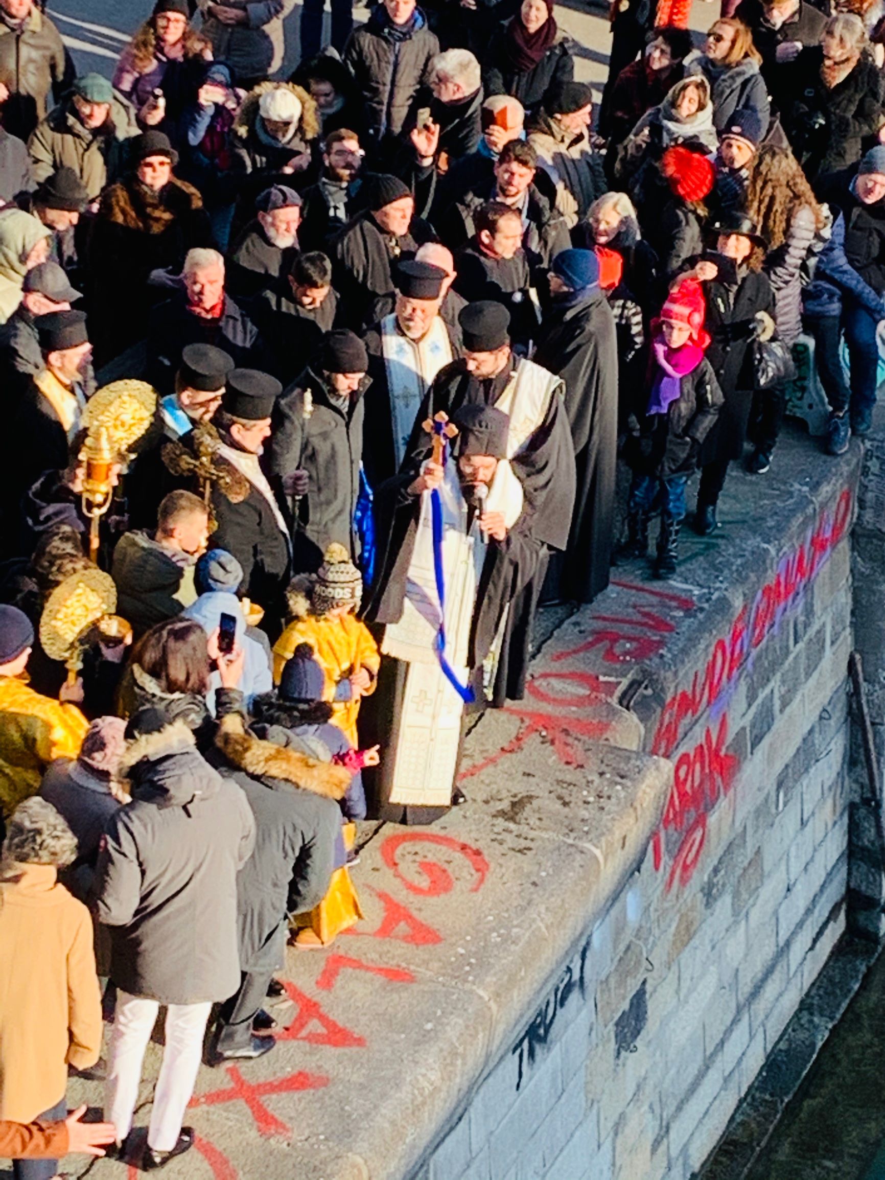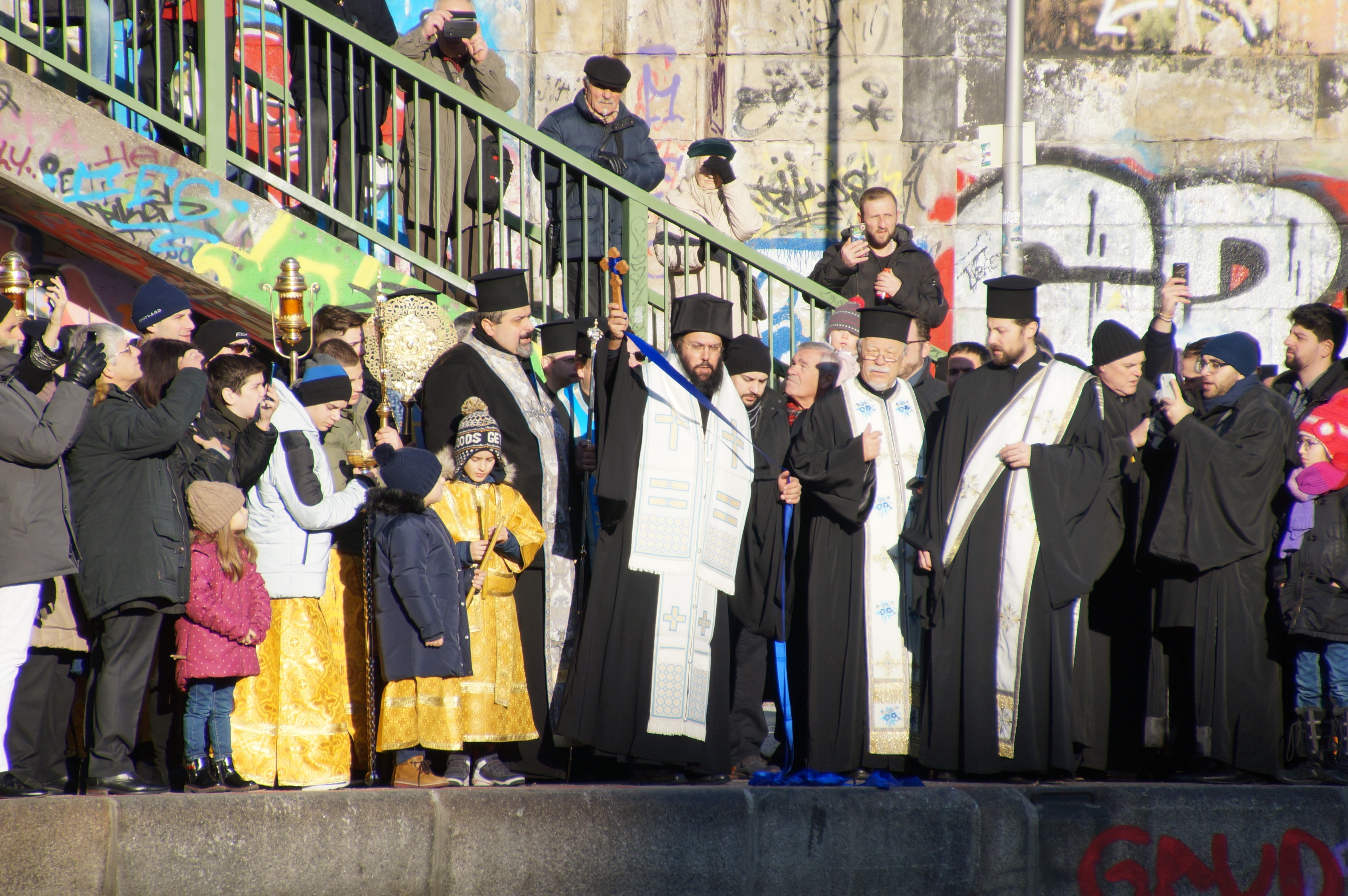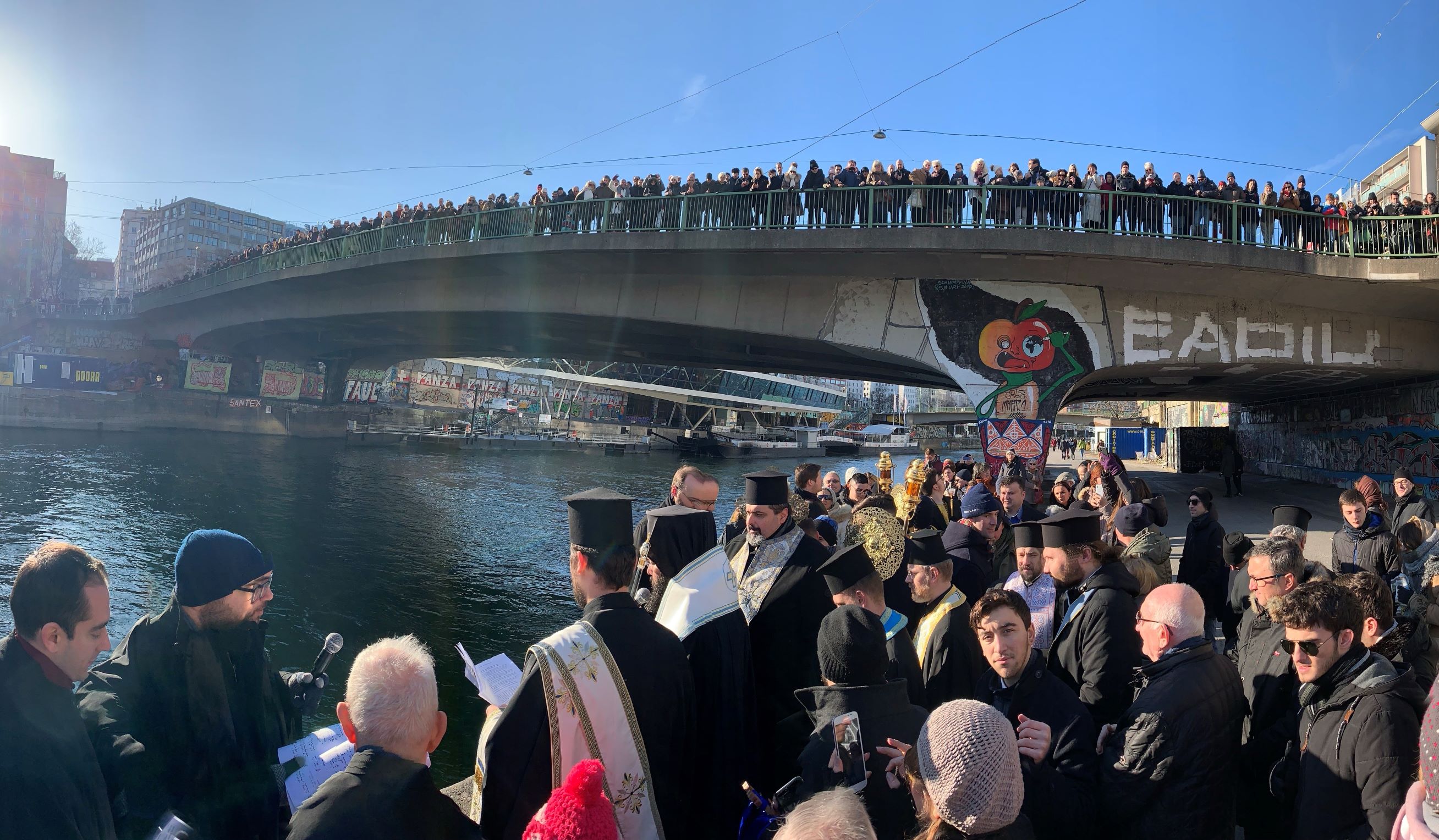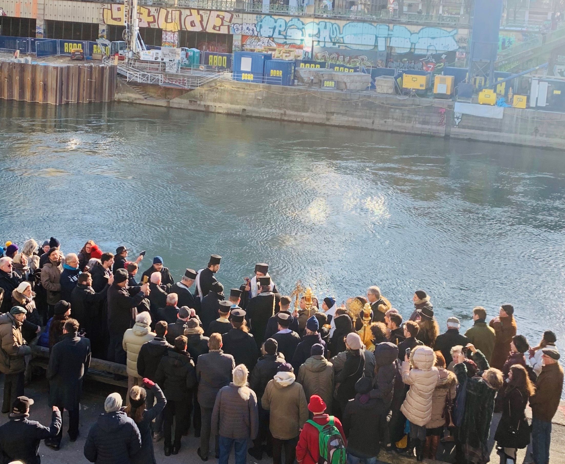 Am Ende der Göttlichen Liturgie wurde die Große Wasserweihe gefeiert, wobei die Gläubigen die Gelegenheit hatten, das Kreuz zu verehren und den Segen und die Gnade Gottes zu empfangen. Anschließend folgte die mittlerweile seit Jahren übliche Wasserweihe am Donaukanal, an der auch dieses Jahr wieder hunderte Menschen teilnahmen. Bei der Wasserweihe wurde nicht nur das Wasser und die ganze Schöpfung geweiht und für diese gebetet, sondern auch für alle Menschen, die in Wien und in ganz Österreich leben, dass sie auch weiterhin in Frieden miteinander leben und dass Gott allen Menschen Seine Gnade schenke.