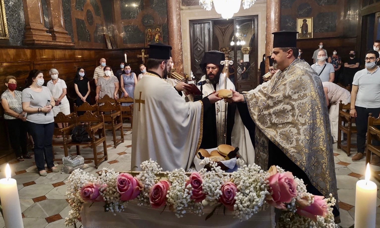 Am Abend des 14. August 2020 feierte Metropolit Arsenios gemeinsam mit den Klerikern und zahlreichen Gläubigen der Metropolis von Austria die Vesper zum Fest der Entschlafung der Gottesgebärerin. Am Ende der Vesper wurde die Artoklasie gefeierert und es folgten die Lobpreisungen (Enkomia) auf die Gottesgebärerin, sowie der Gruß der Gottesbärerin, beschlossen vom gemeinsamen Apodeipnon.