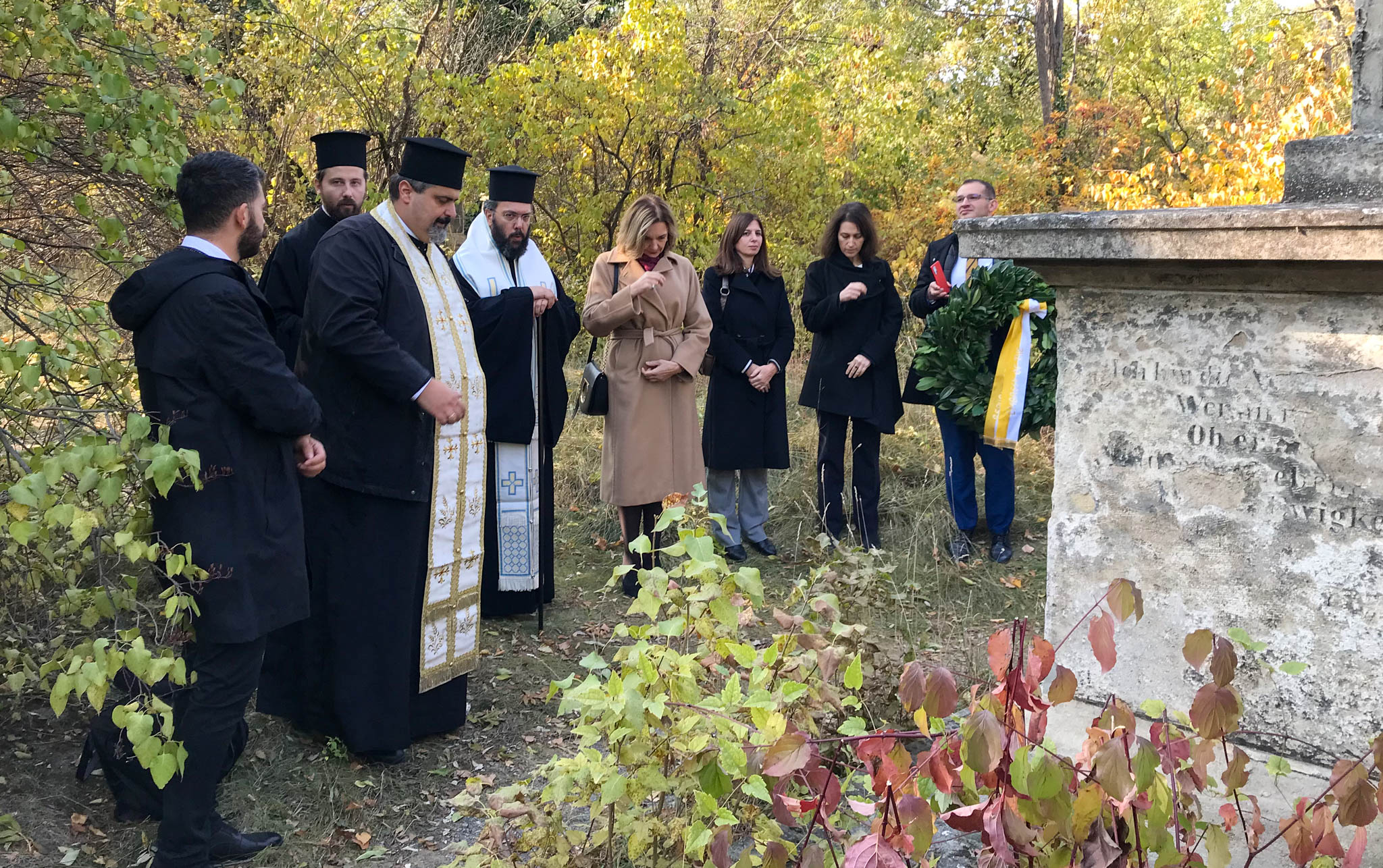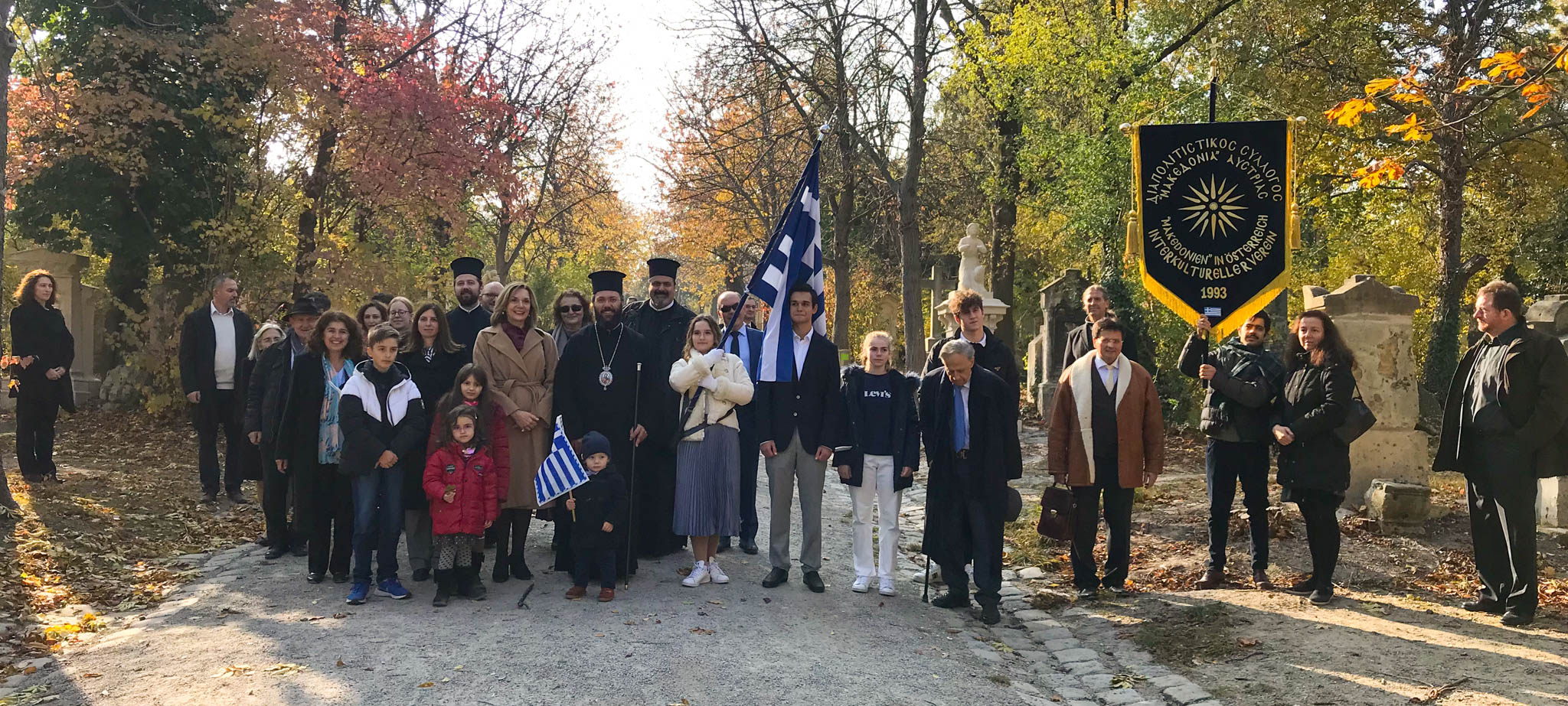 Nach der Göttlichen Liturgie besuchte Metropolit Arsenios gemeinsam mit dem Klerus, den Schülerinnen und Schülern der Griechischen Nationalschule sowie den Gläubigen den Friedhof St. Marx, wo ein Totengedächtnis gefeiert wurde und Kränze zum Gedächtnis der Gefallenen niedergelegt wurden. Der Metropolit betete, dass der barmherzige Gott ihnen allen die ewige Ruhe und Frieden in unseren Tagen schenken möge.
