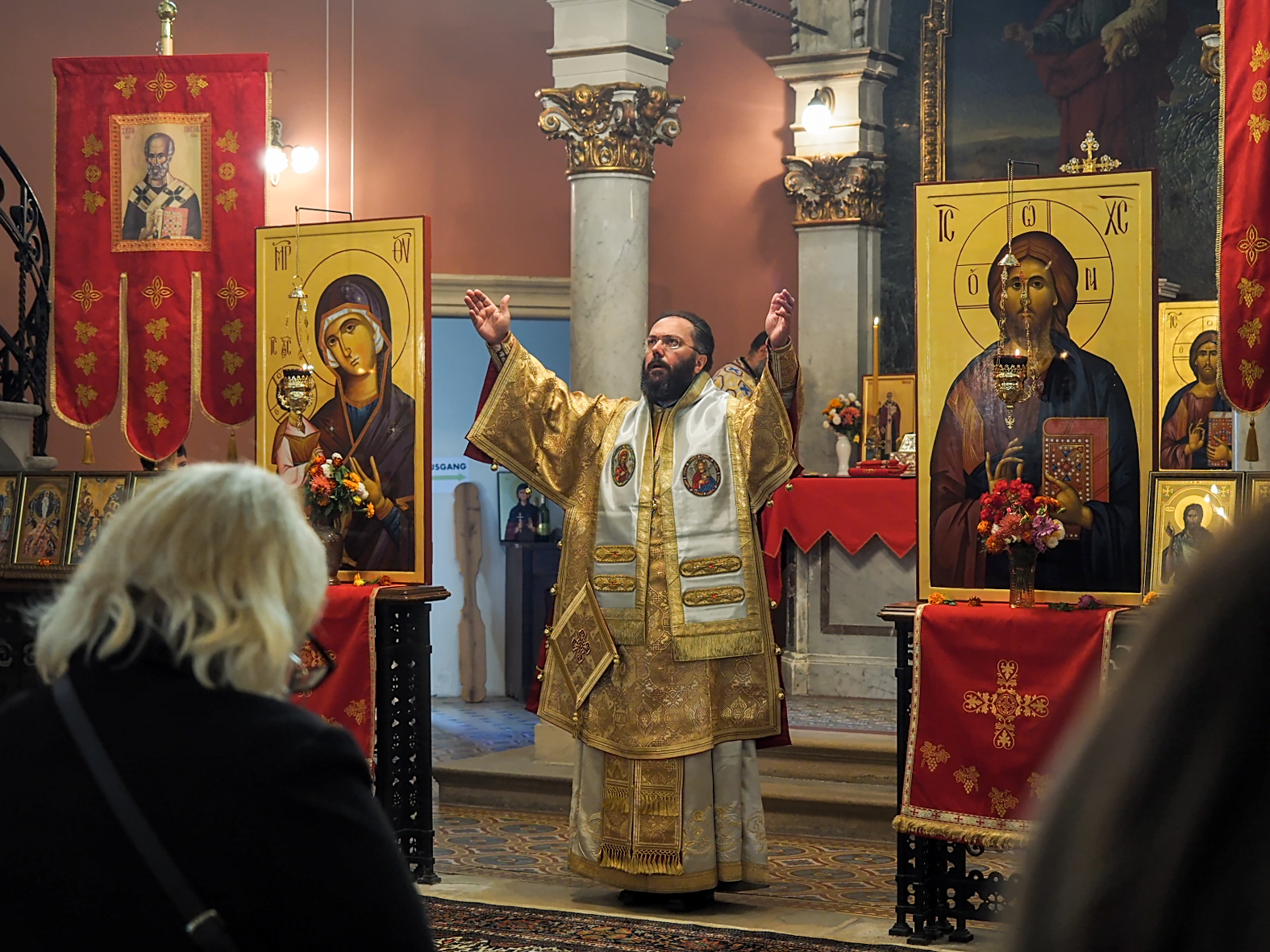 Der Metropolit sprach schließlich Erzpriester Sladjan Vasic seinen Dank für dessen unermüdlichen Einsatz für die Gemeinde aus. Den Gläubigen dankte er ebenfalls für ihr Engagement und ihre Mitfeier und auch dem Bürgermeister von Mödling gegenüber drückte Metropolit Arsenios seine Dankbarkeit für die Bereitstellung der Waisenhauskirche aus. Außerdem dankte er den Mödlinger katholischen wie evangelischen Schwestern und Brüdern für ihre Unterstützung bei der Errichtung der neuen Gemeinde.