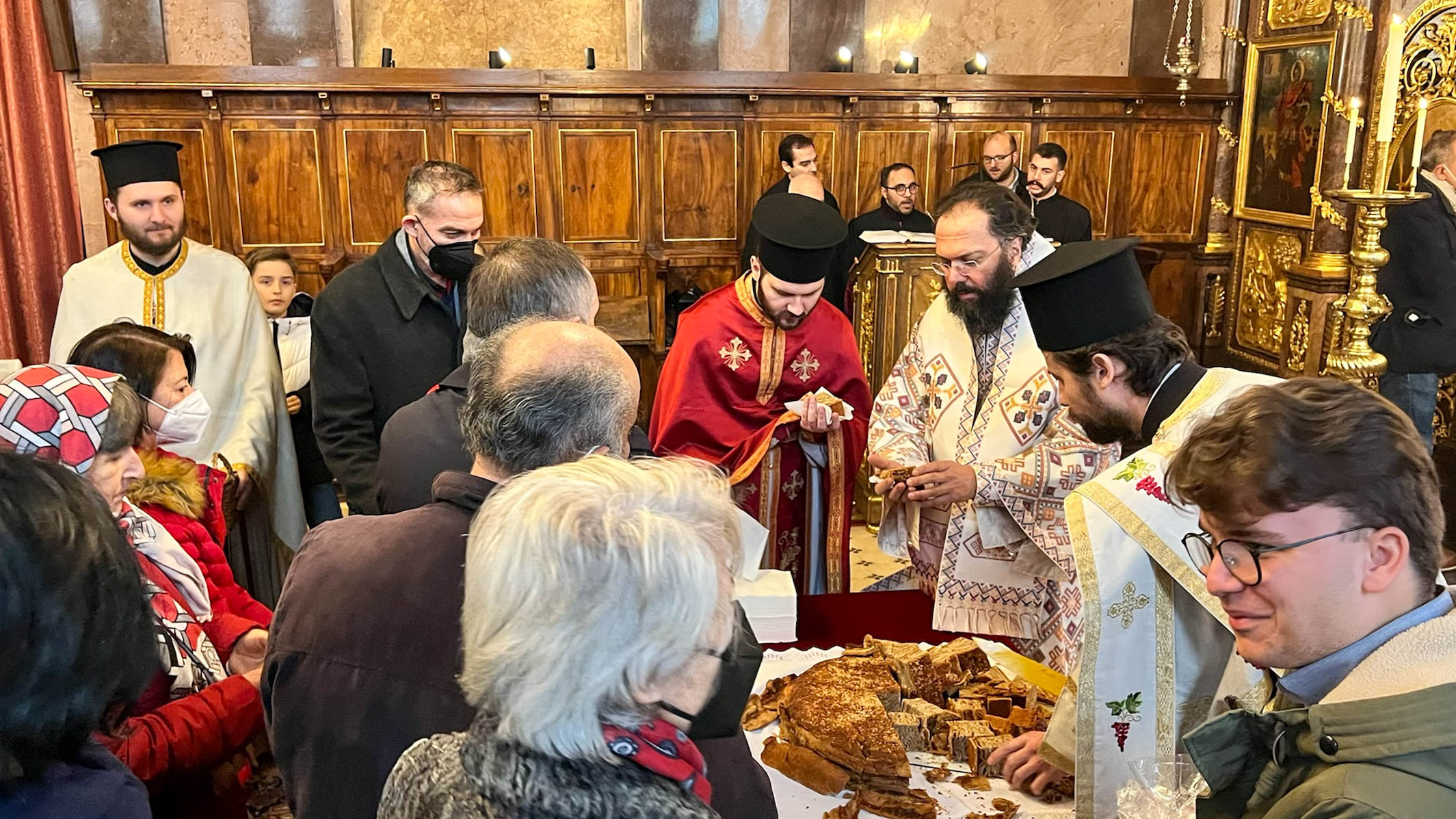 Am Ende der Göttlichen Liturgie wurde die Doxologie anlässlich des Beginns des neuen Jahres gefeiert, bei der die Kirche für die Gesundheit aller Menschen in der ganzen Welt betete. Dieses Jahr wurde insbesondere um ein baldiges Ende der Covid-19-Pandemie gebetet. Anschließend wurde die traditionelle Vasilopita gesegnet und angeschnitten sowie an die Gläubigen ausgeteilt. Außerdem wurden die frisch eingetroffenen Taschenkalender der Metropolis von Austria für das Jahr 2022 verteilt, die sich in diesem Jahr thematisch besonders an die Kinder und Jugend richten.