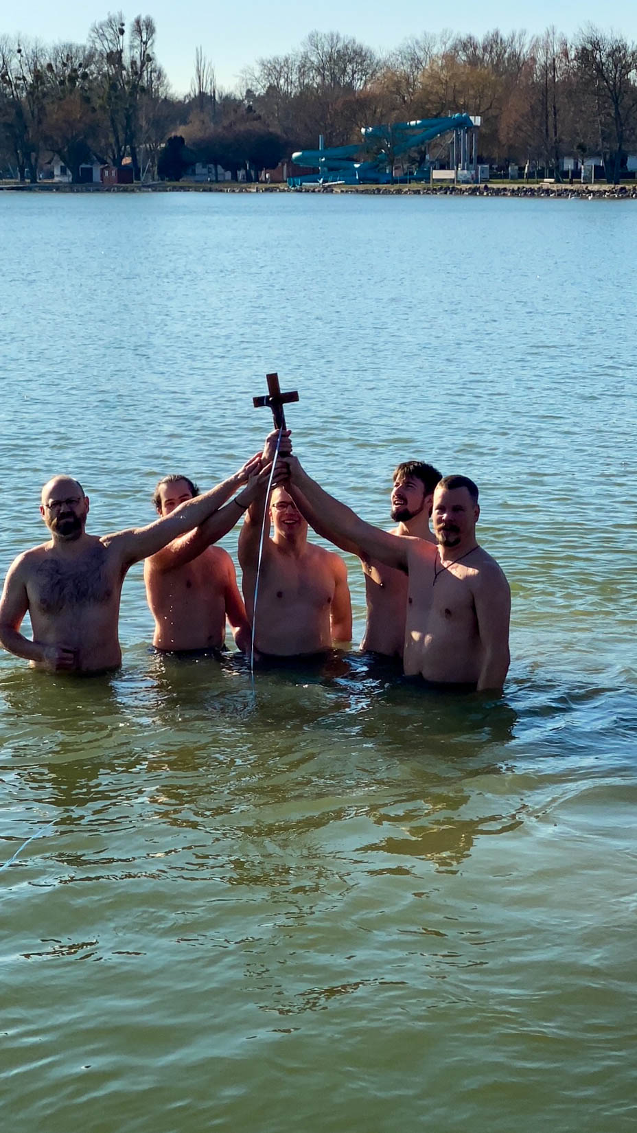 Nach der Göttlichen Liturgie begaben sich alle gemeinsam zum Balaton-See, in den Metropolit Arsenios das traditionelle Kreuz warf, um die Gewässer und die Anwesenden zu segnen. Mit den teilnehmenden örtlichen Persönlichkeiten aus der Politik wurden Glück- und Segenswünsche ausgetauscht und außerdem Interviews für das örtliche Fernsehen und Radio gegeben.