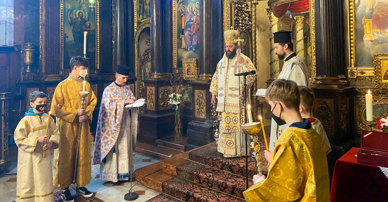 Am Sonntag, den 27. Februar 2022, feierte Seine Eminenz Metropolit Arsenios von Austria gemeinsam mit der ukrainischen Gemeinde zum hl. Vladimir und zur hl. Olga die Göttliche Liturgie in der Wiener Kathedrale zur Hl. Dreifaltigkeit. Metropolit Arsenios betete mit dem Gemeindepfarrer P. Yuriy Strugov, Priester Mykola Lesiuk, Erzdiakon Maximos Rugyko sowie zahlreichen Gläubigen inständig um Frieden in der Ukraine.