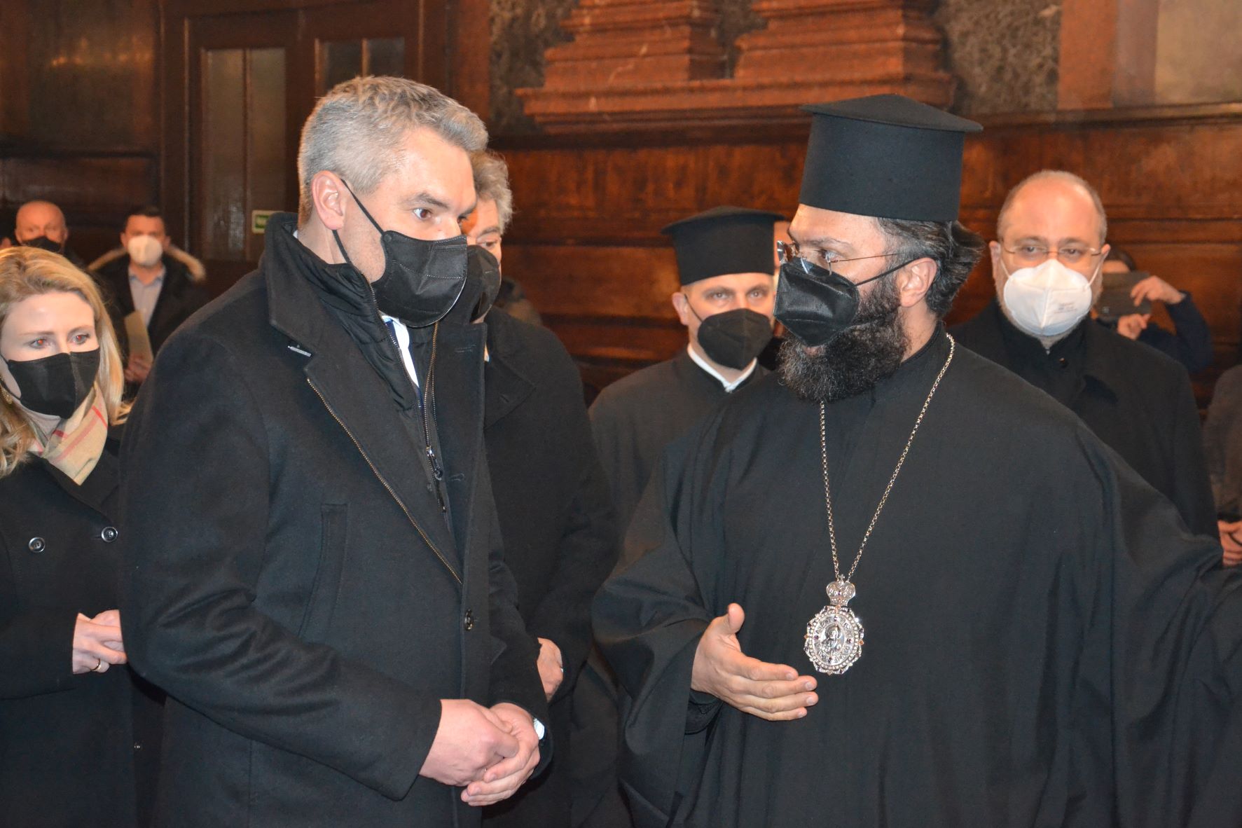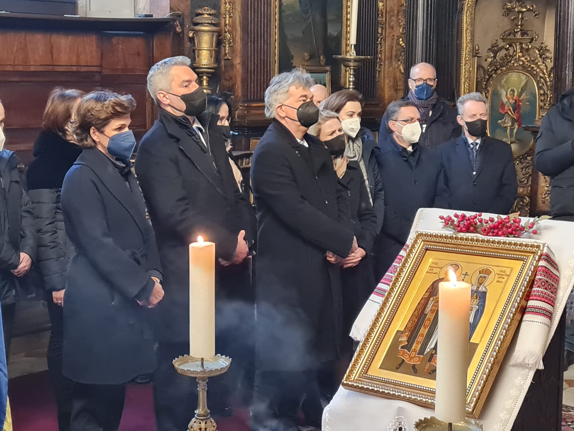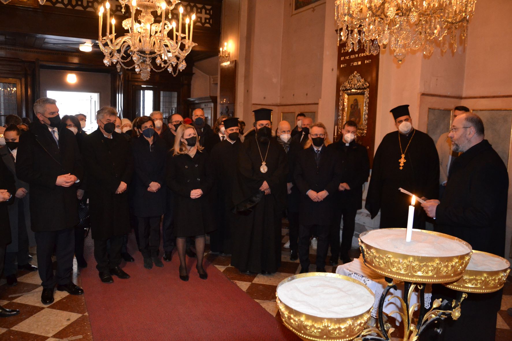 Am Donnerstag den 3. März 2022 empfing Metropolit Arsenios gemeinsam mit dem Bischofsvikar Erzpriester Ioannis Nikolitsis, den Priestern der ukrainischen Gemeinden Yurij Strugov und Mykola Lesiuk, sowie Erzdiakon Maximos Rugyko zahlreiche hochrangige Vertreter der Republik Österreich, der Kirche und der Diplomatie in der Kathedrale zur Hl. Dreifaltigkeit in Wien. Anlass des Besuches war der Ausdruck der Solidarität der Politik, Kirche und letztlich der ganzen Gesellschaft mit all den Menschen, welche in diesen Tagen zu Opfern des Krieges in der Ukraine werden und wurden.