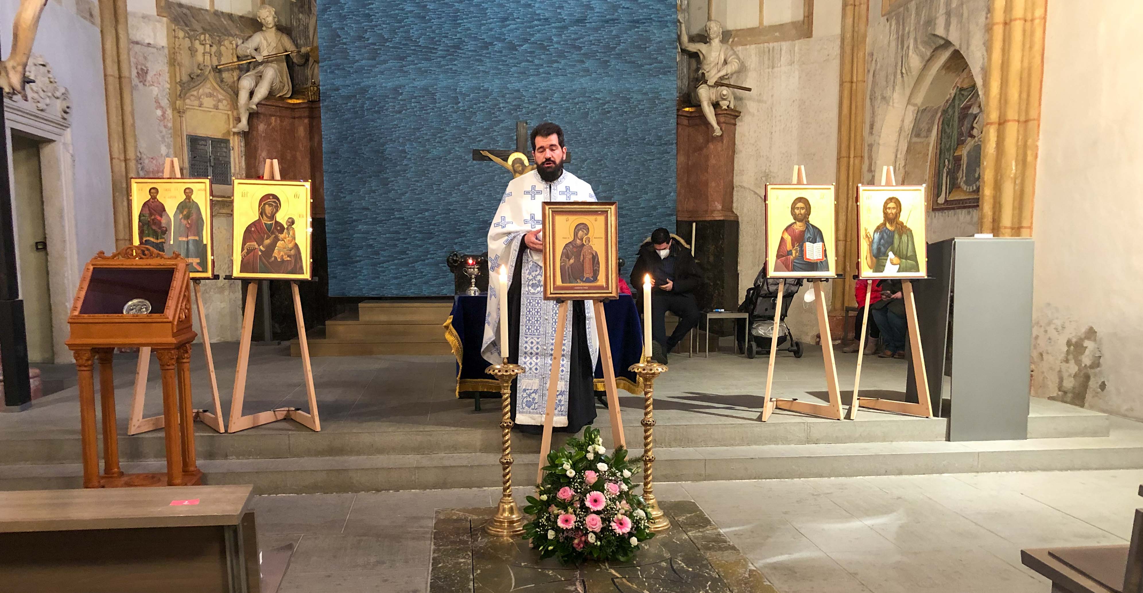 Am 5. Fastensonntag, den 10. April 2022, besuchte Seine Eminenz Metropolit Arsenios die Gemeinde zu den hll. Ärzten Koasmas und Damian in Graz und feierte dort gemeinsam mit Pfarrer Dimitrios Makris und Erzdiakon Maximos Rugyko und zahlreichen Gläubigen aus Graz und Umgebung die Göttliche Liturgie.
