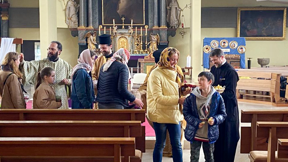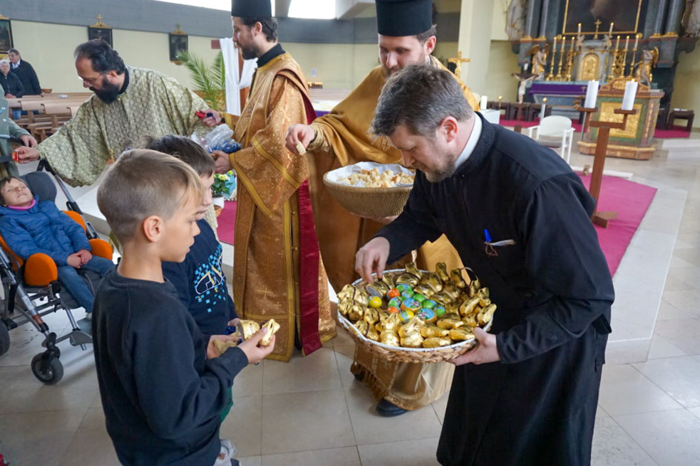 Metropolit Arsenios sprach in seiner Predigt über die Auferweckung des Lazarus, derer an diesem Tag gedacht wurde, sowie über die bevorstehenden Tage der Hohen und Heiligen Karwoche, die zum glorreichen Tag der Auferstehung Christi hinführen. Die aus ihrer Heimat Vertriebenen lud er ein, geduldig ihre Hoffnung und ihren Glauben auf Christus zu legen und das ihnen auferlegte Kreuz zu tragen. Das Gebet und die Kraft, die wir aus dem Vertrauen auf den Heilsplan Gottes schöpfen, können dabei helfen, den unvermeidlichen Schmerz über die Folgen des Krieges und die Trennung von geliebten Personen zu tragen, so der Metropolit. Er bestärkte die Gläubigen, ihr Gebet zum Herrn um Frieden zu intensivieren, und mit Freude die materiellen und geistigen Hilfen ihrer Mitmenschen anzunehmen. Er wünschte ihnen, dass sie trotz der furchtbaren Umstände das Licht der Hoffnung der Auferstehung Christi verspüren werden.