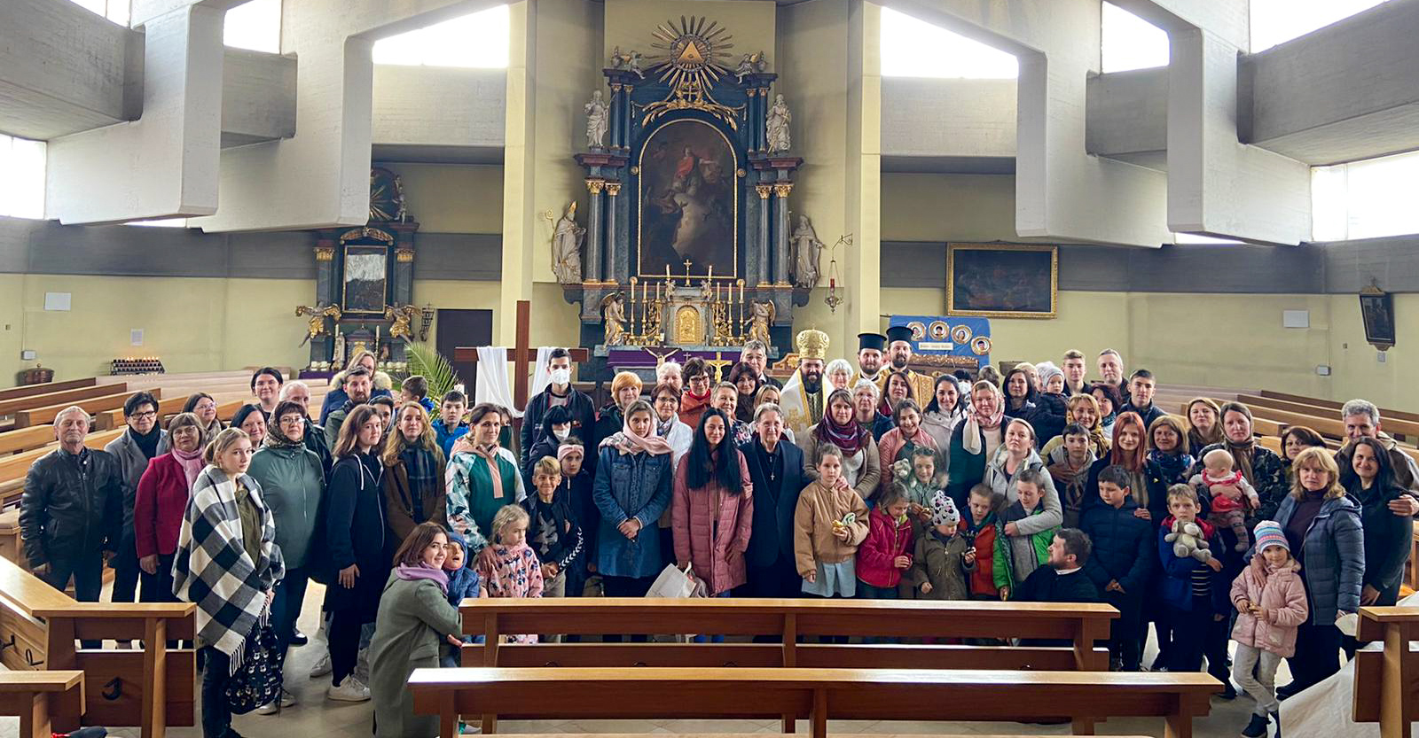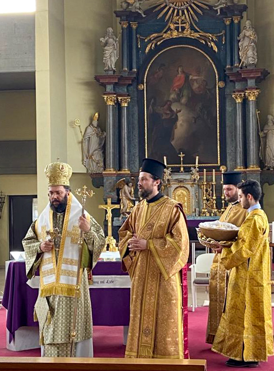 Am Samstag, den 16. April 2022, feierte Seine Eminenz Metropolit Arsenios von Austria gemeinsam mit Priestermönch Bartholomäus, Priester Mykola Lesiuk und Erzdiakon Maximos Rugyko die Göttliche Liturgie in der Pfarrkirche von Apetlon für die vor kurzem in der Region angekommenen orthodoxen Gläubigen aus der Ukraine.
