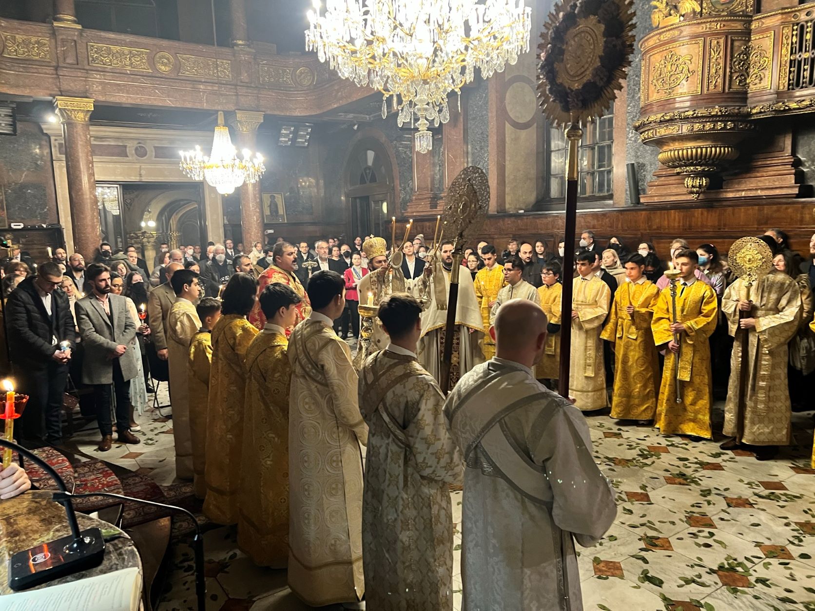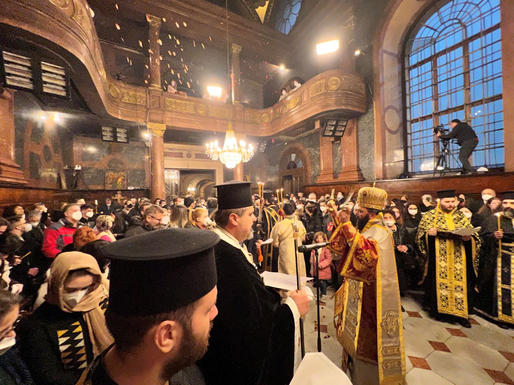 In der Osternacht wurde auch die Osterbotschaft Seiner Allheiligkeit des Ökumenischen Patriarchen verlesen. Der Patriarch erinnerte daran, dass die Auferstehung für uns Orthodoxe der Mittelpunkt unseres Glaubens ist. Umso entsetzlicher seien gerade in diesen Tagen die vielfältige Gewalt, die soziale Ungerechtigkeit und die Missachtung der Menschenrechte. Die freudige Kunde von der Auferstehung Christi erklingt zur gleichen Zeit mit dem Lärm der Waffen, mit dem Schrei der Verzweiflung der unschuldigen Opfer der kriegerischen Gewalt und der Klage der Flüchtlinge, unter denen sich zahllose unschuldige Kinder befinden. Für Christen ist es unvorstellbar, angesichts dieser Verhöhnung der Menschenwürde zu schweigen. Die Kirche betet nicht nur um den „Frieden von oben“ und den „Frieden der ganzen Welt“, sondern betont auch, wie wichtig es ist, dass die Menschen sich für den Frieden einsetzen.