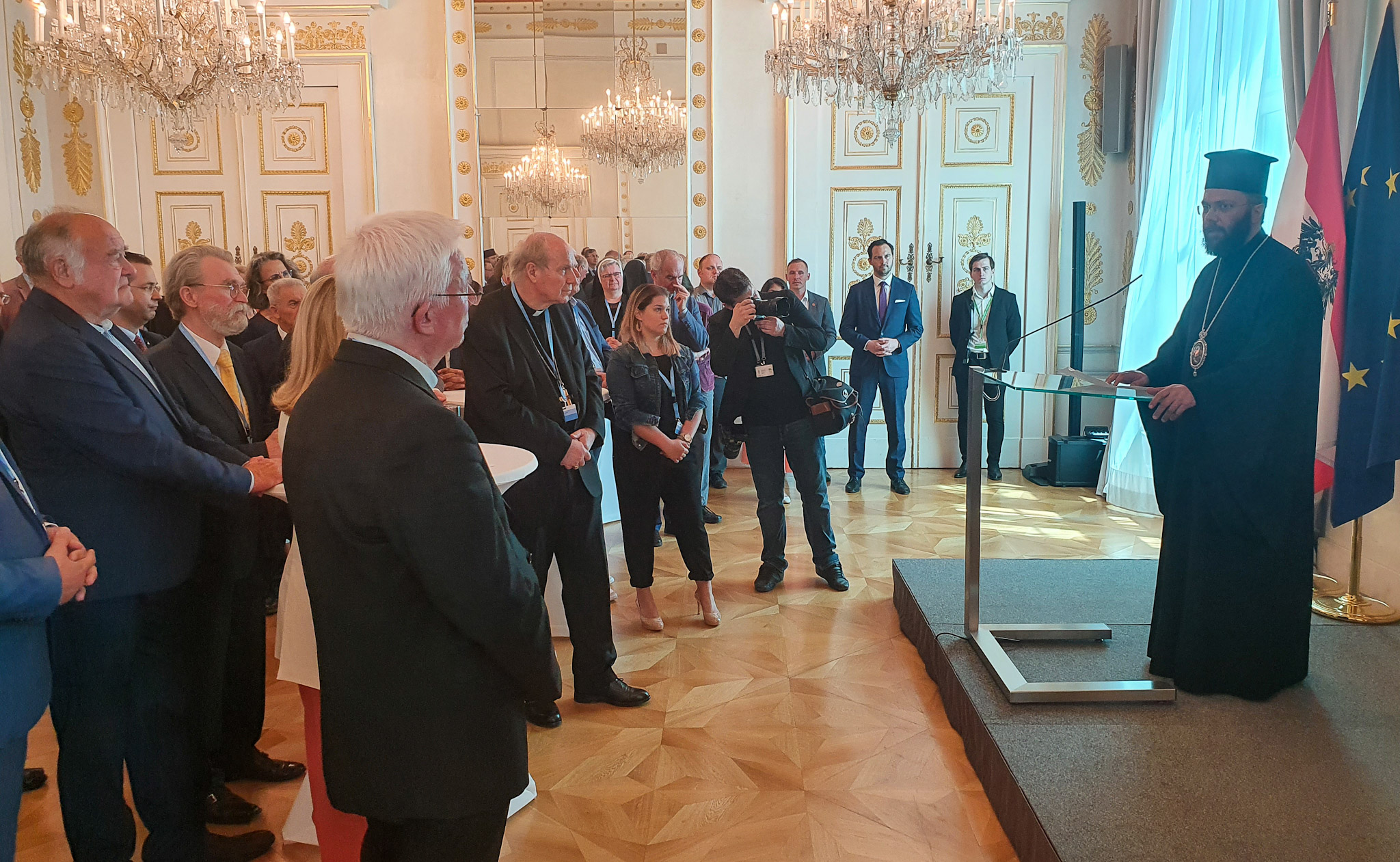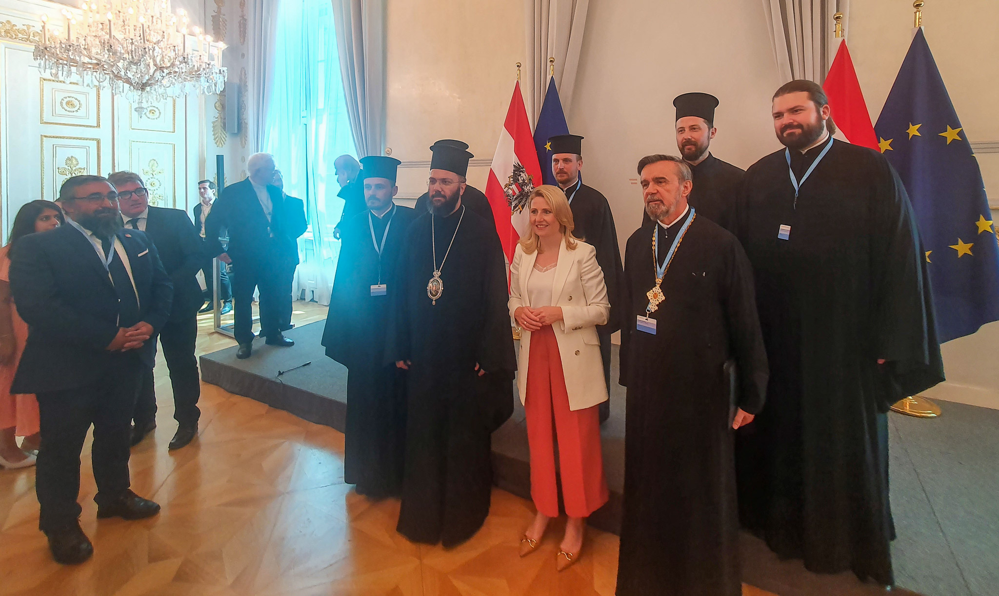Am Donnerstag, den 19. Mai 2022, fand auf Einladung von Bundesministerin Susanne Raab ein „Empfang zur Osterzeit“ statt, zu dem sich zahlreiche Vertreter der Kirchen und Religionsgesellschaften in Österreich im Bundeskanzleramt versammelten. Vonseiten der Metropolis von Austria und der Orthodoxen Bischofskonferenz in Österreich nahm Seine Eminenz Metropolit Arsenios an diesem Empfang teil, der seit der Pandemie erstmals wieder in Präsenz stattfinden konnte.