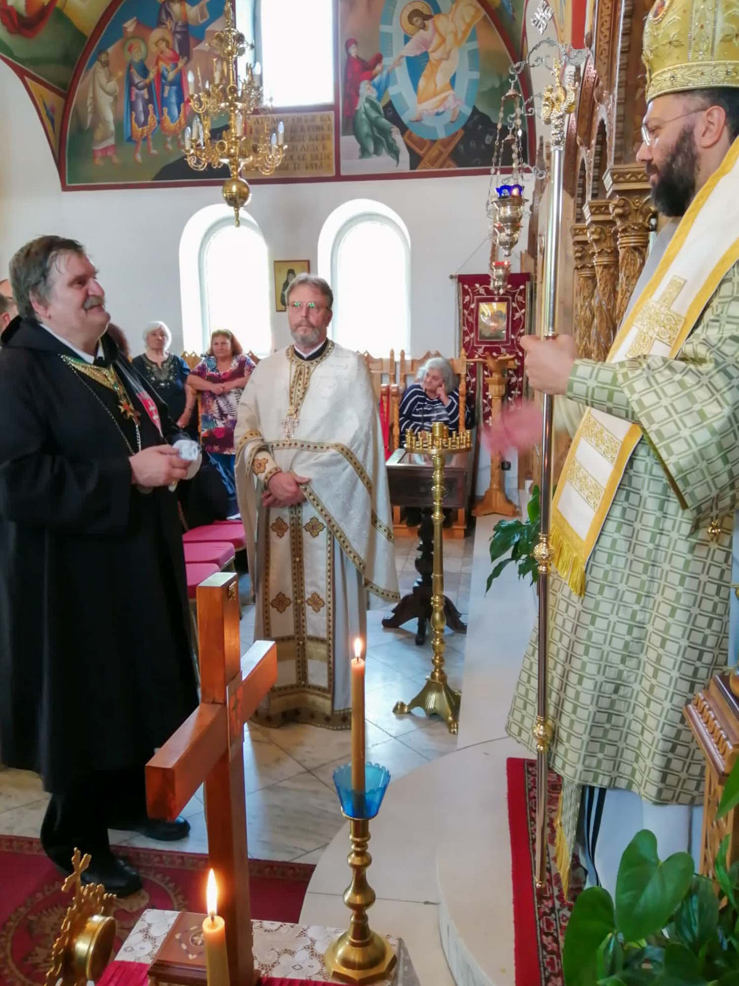 Am Dienstag, den 24. Mai 2022, dem Fest der heiligen und apostelgleichen Kaisern Konstantin und Helena feierte Seine Eminenz Metropolit Arsenios die Bischöfliche Liturgie in der Kirche zu den hll. Konstantin und Helena im ungarischen Beloioannisz des Exarchats. Mit ihm feierten neben Bischof Paisios von Apameia und allen Klerikern des Exarchats eine große Zahl der Gläubigen der Gemeinde sowie Tessel Zoltán, Mitglied des ungarischen Parlaments, der Botschafter Griechenlands in Ungarn, Efthymios Pantzopoulos, der Bürgermeister von Beloioannisz, Konstantinos Papalexis, Loakratis Koranis als Vertreter der Griechischen Gemeinden sowie Georgios Koukoumtzis.