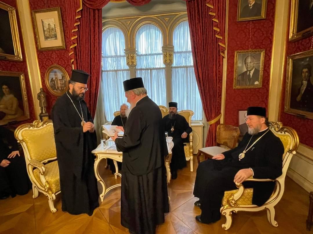 Die Delegation überbrachte die herzlichen Grüße und Segenswünsche Seiner Seligkeit Patriarch Daniel von Rumänien, in einem brüderlichen Austausch wurden sodann die Situation und Herausforderungen der Orthodoxen Kirche in Rumänien, Griechenland und vor allem in Österreich besprochen und die verschiedenen Bereiche der Zusammenarbeit erörtert. Nach dem Gespräch lud Metropolit Arsenios die Delegation zu einem gemeinsamen Mittagessen, das weitere Möglichkeiten des Austauschs bot.