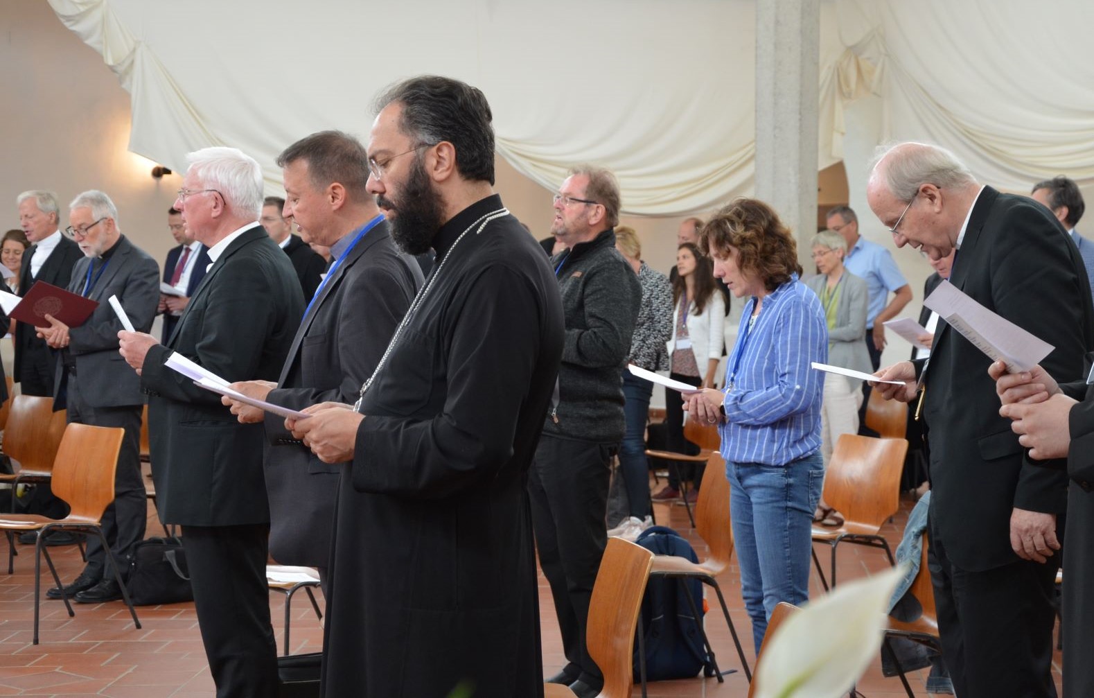 Der Metropolit nahm sodann an den weiteren Gesprächen und Diskussionen in den Groß- und Kleingruppen teil, die sich intensiv mit der Frage der Synodalität und der angemessenen Vorbereitung auf die Weltsynode der katholischen Kirche beschäftigte und teilte dabei mit den Anwesenden immer wieder Einsichten und Erfahrungen aus dem reichen Schatz der Orthodoxen Tradition.