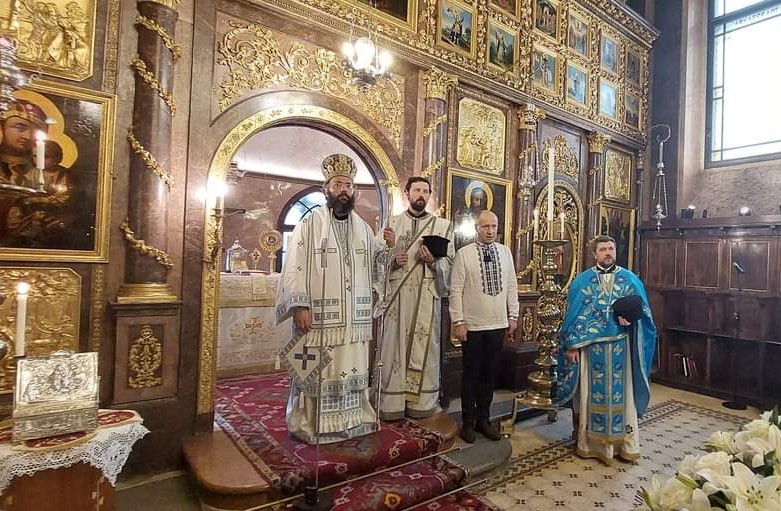 Zusammen mit den zahlreichen Gläubigen wohnte auch der Botschafter der Ukraine Dr. Vasyl Khymynets, sowie weitere Vertreter der ukrainischen Diplomatie in Österreich, der Göttlichen Liturgie bei.