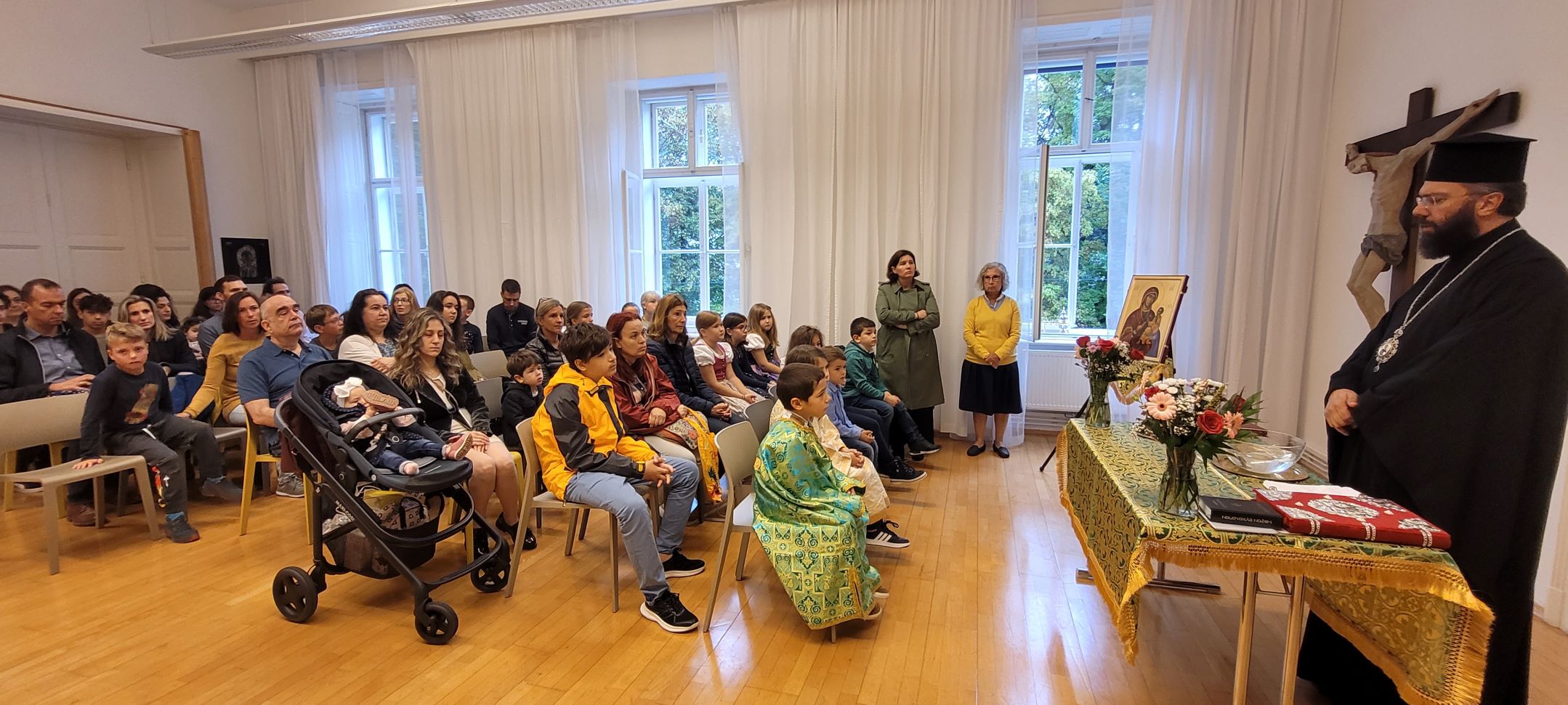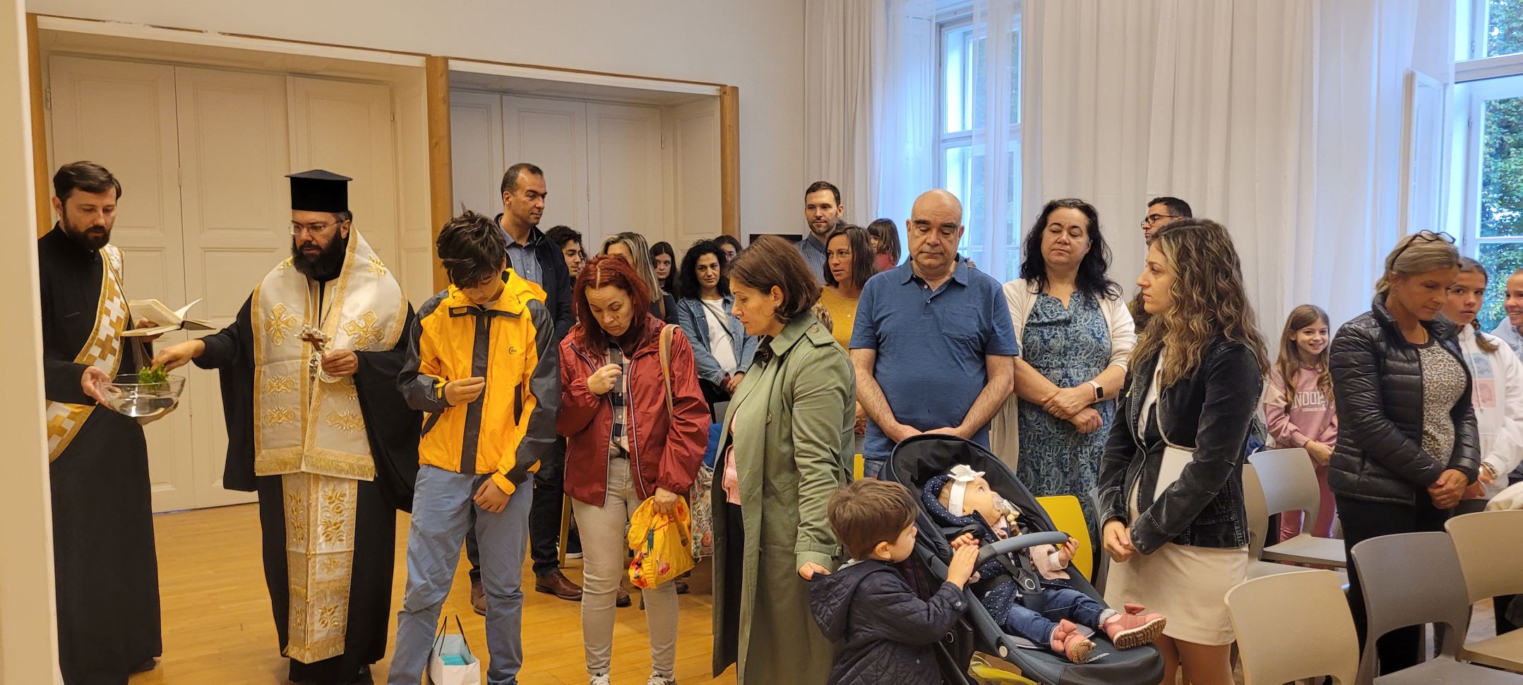 Am Samstag, den 17. September 2022, besuchte Metropolit Arsenios von Austria in Begleitung seines Erzdiakons Vater Maximos die Grazer Kirchengemeinde, wo er gemeinsam mit dem Erzpriester Dimitrios Makris, dem Vorsteher der dortigen Gemeinde, die Wasserweihe zum Beginn des neuen Schuljahres feierte. An der Wasserweihe nahmen auch die Lehrerin an der Griechischen Schule in Graz, die Priestersgattin Frau Sophia Arkoumani, sowie die Schülerinnen und Schüler und deren Eltern teil.