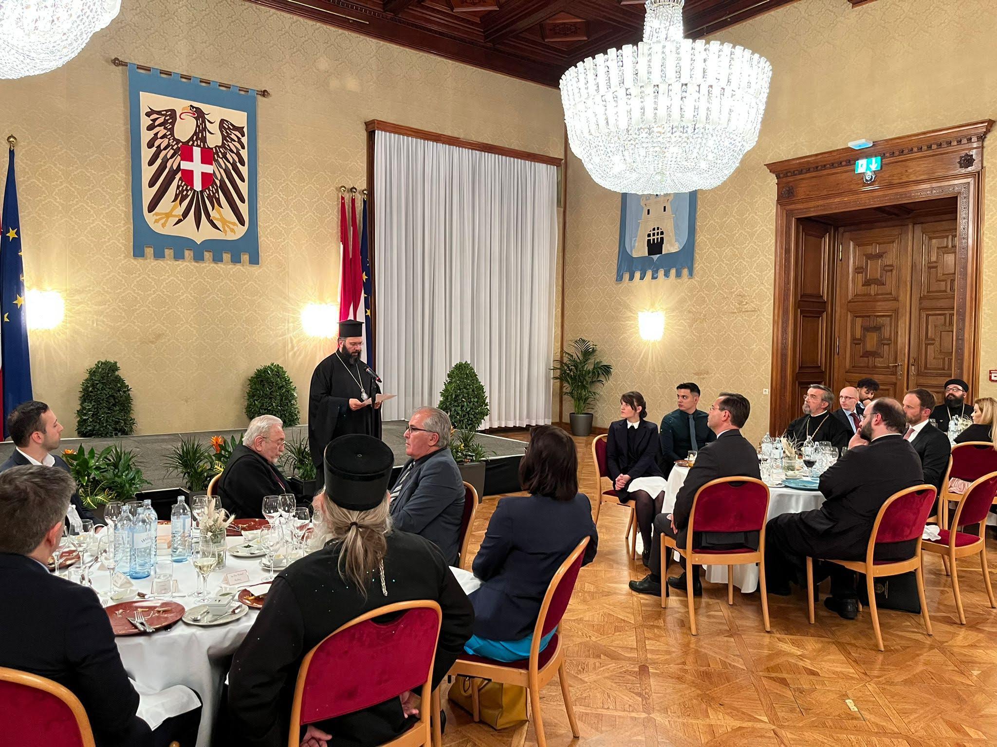 Metropolit Arsenios bedankte sich in seiner Ansprache zunächst herzlich bei den Organisatoren des Empfanges. Er betonte weiters: „Auf der reichen orthodoxen Spiritualität und den bewährten Werten unserer Vorväter basierend, bemüht sich die Orthodoxe Kirche nach Kräften, alle Menschen in Österreich zu erreichen und geistlich und menschenliebend zu unterstützen, insbesondere jene Teile der Gesellschaft die im Besonderen der Hilfe bedürfen.“ Danach legte Metropolit Arsenios die Aufgabe und die Funktionsweise der Orthodoxen Bischofskonferenz in Österreich dar. Er hob den „aktiven und konstruktiven Austausch mit Österreichs Politikern, sowie Beamten zahlreicher Ministerien zum Wohle Österreichs und der hier lebenden Menschen“ hervor und brachte seine Hoffnung zum Ausdruck, dass die Zusammenarbeit mit den staatlichen und politischen Stellen sich in Zukunft noch intensivieren und weiter gute Früchte bringen möge.