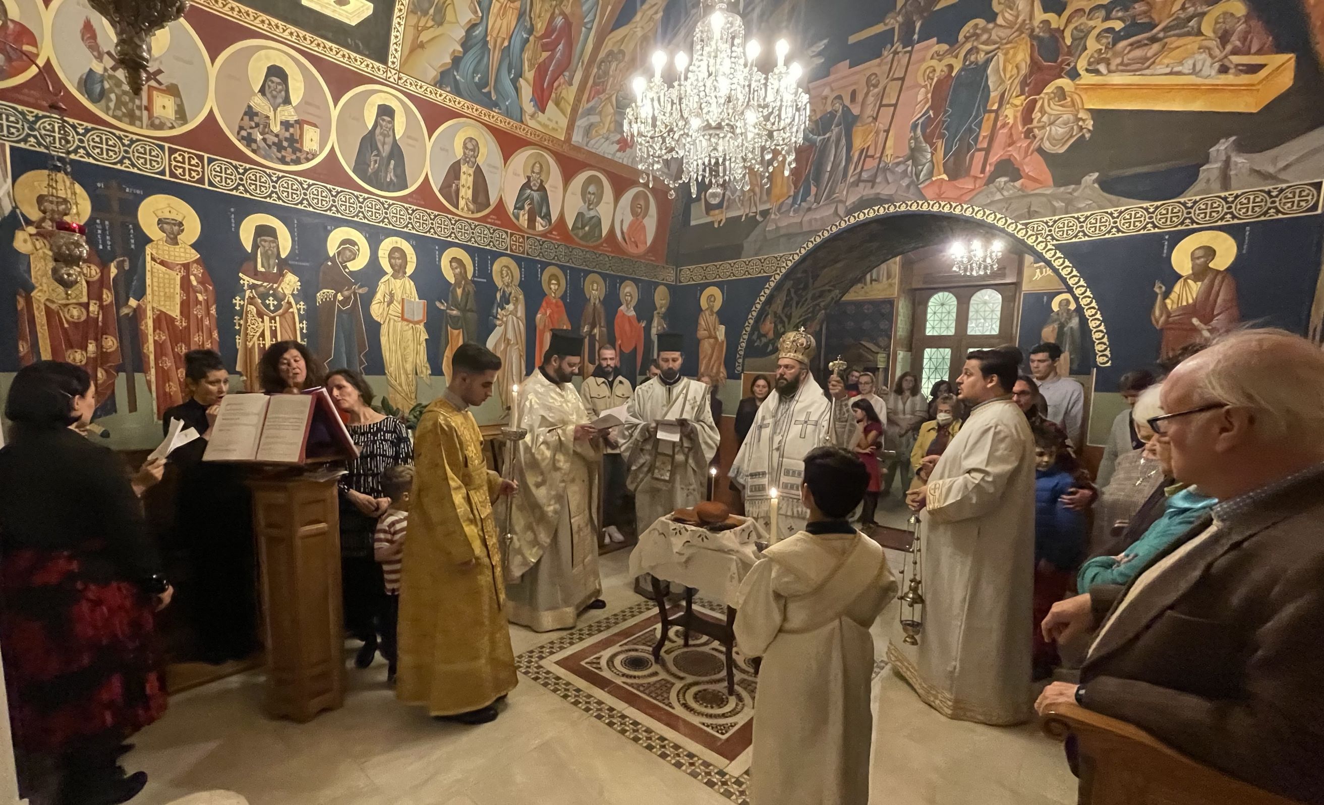 Am Sonntag, den 13. November 2022, wurde auch heuer wieder das Gedächtnis unseres Vaters unter den Heiligen Johannes Chrysostomos, des Patriarchen von Konstantinopel, mit einer feierlichen Vesper und bischöflichen Göttlichen Liturgie in der ihm geweihten Kapelle der Metropolis von Austria in Wien begangen. Gemeinsam mit Seiner Eminenz Metropolit Arsenios feierten der Pfarrer der Gemeinde, Priestermönch Athanasius Buk, Erzdiakon Maximos Rugyko sowie zahlreiche Gläubige, Pfarrangehörige und Besucher dieses große Fest. Musikalisch gestaltet wurde die Liturgie vom Chor der deutschsprachigen Gemeinde unter der Leitung von Ileana Tonca-Rappert. Am Ende der Göttlichen Liturgie wurde eine Artoklasie gefeiert.