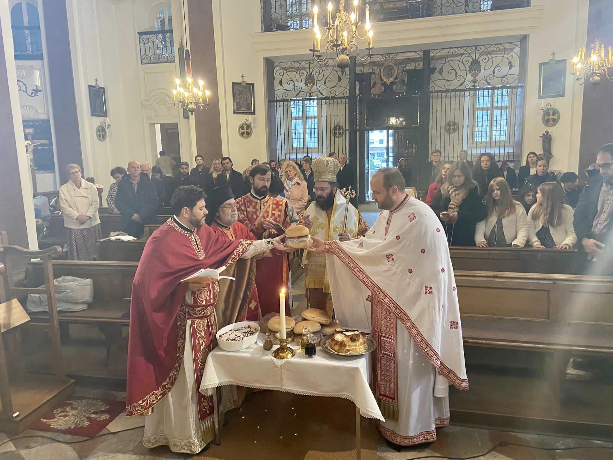 In seiner inspirierenden Predigt bezog sich Metropolit Arsenios auf das Leben des Großmärtyrer Demetrios und betonte die zeitgerechte Entscheidung des Heiligen, Christus bedingungslos zu folgen. Er unterstrich die mutige Hingabe des Heiligen, der durch sein Handeln zu Christus stand und die Wahrheit sowie den Erlöser in den Mittelpunkt seines Lebens stellte. Metropolit Arsenios erinnerte daran, dass Christus in die Welt kam, um die Menschheit zu erlösen. In Übereinstimmung mit den Lehren der Kirchenväter sprach Metropolit über die zentrale Bedeutung des Friedensgebots im Leben der Christen. „In einer Welt, die von Konflikten und Kriegen geprägt ist“, betonte er, „es ist unsere Pflicht, Menschen des Friedens zu sein und nach innerem Frieden zu suchen.