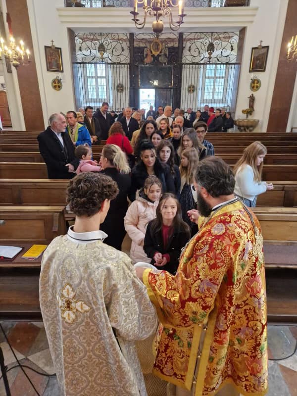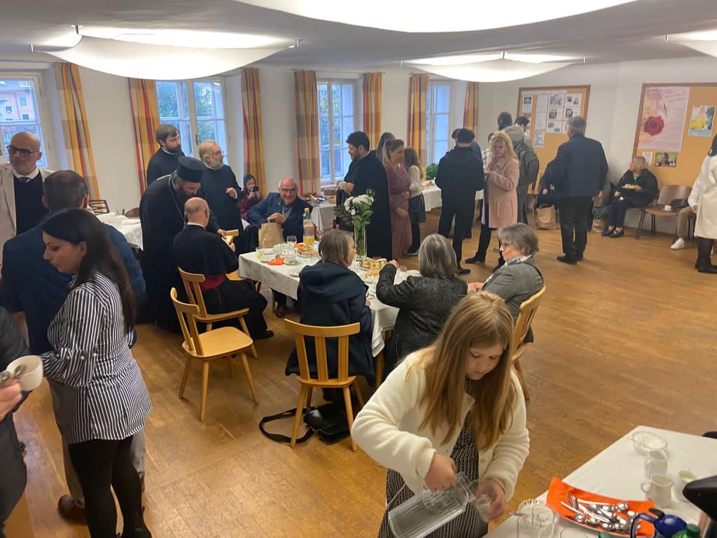 Nach der Liturgiefeier begab sich die Festgemeinde ins Pfarrhaus von Sankt Erhard, wo eine Agape angeboten wurde. Dort bot sich Gelegenheit für Austausch und Vertiefung zum Leben des Heiligen Demetrius.