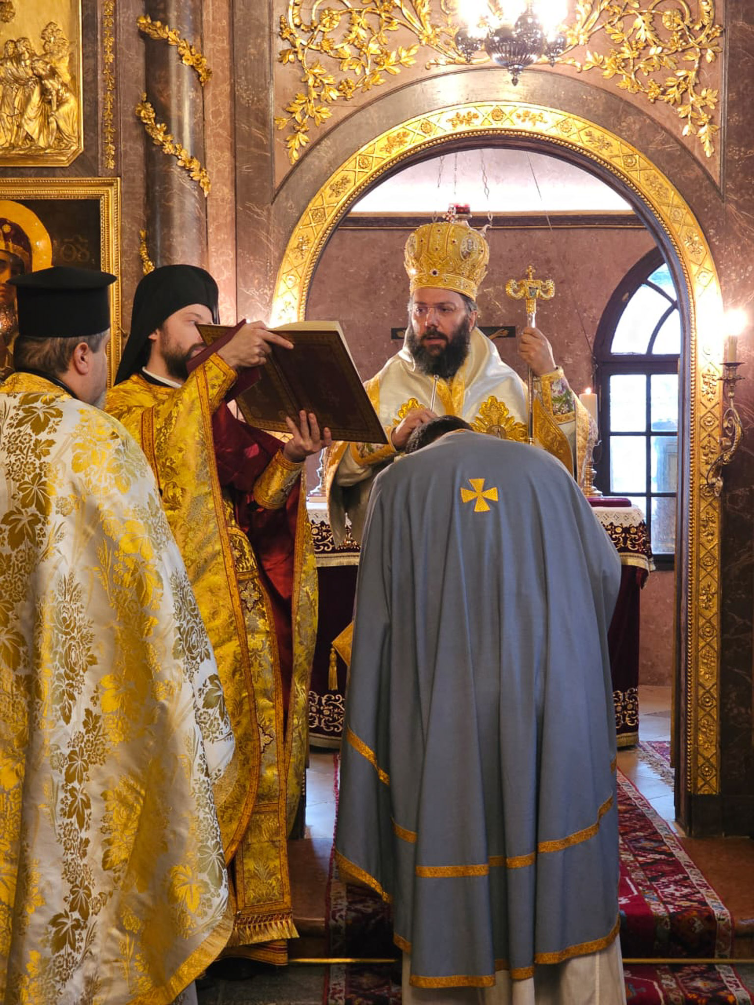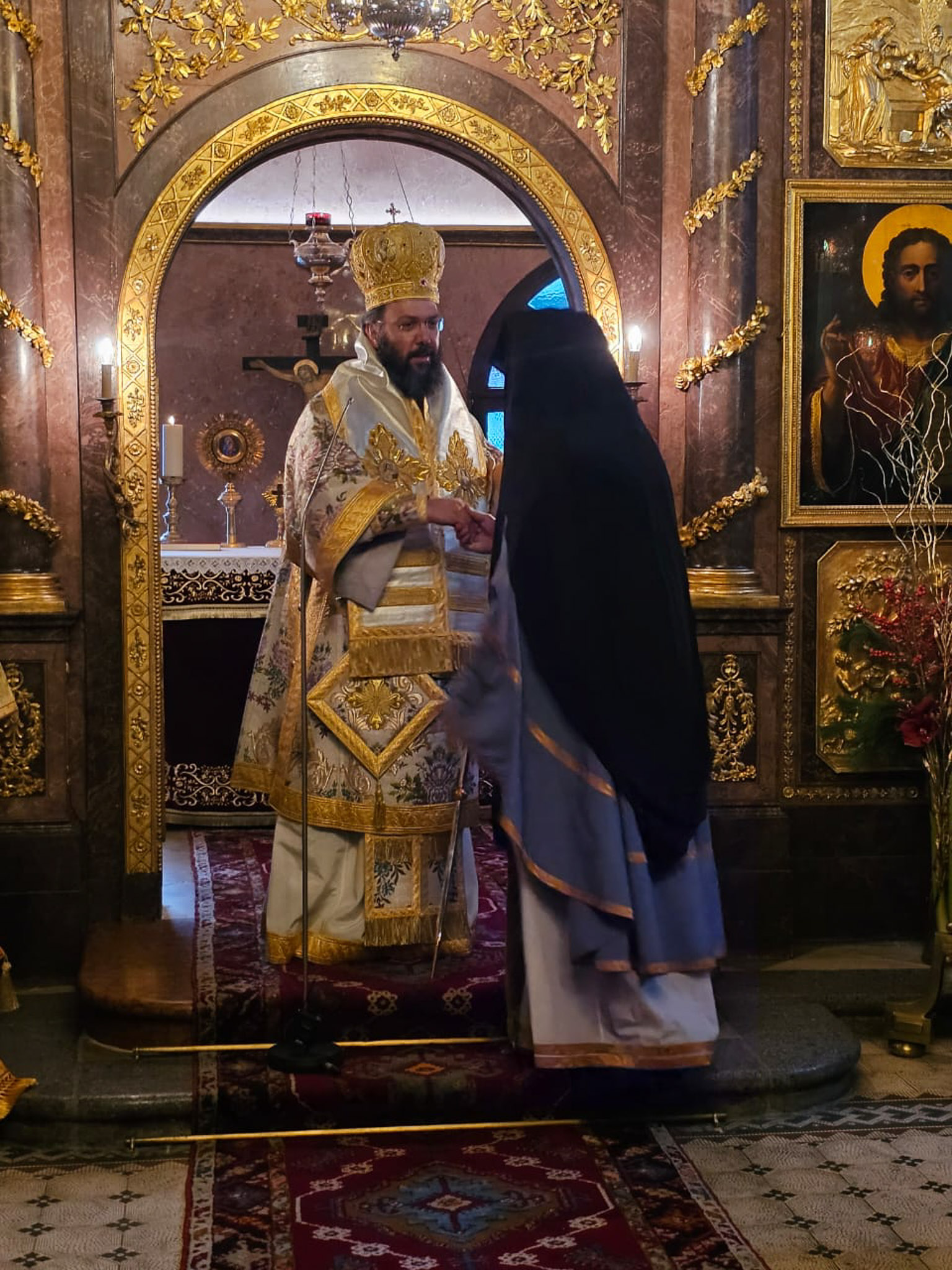 Vor dem Abschluss der Göttlichen Liturgie erhob Seine Eminenz den Priestermönch Bartholomäus zum Archimandriten. Er hob seinen Beitrag für die Arbeit der Metropolie hervor, besonders im Bereich der Jugendarbeit und der Außenmission, wo P. Bartholomäus trotz seiner Lehrverpflichtungen mit vollem Einsatz große Hilfe leiste. Der Gottesdienst endete mit der Doxologie für das neue Jahr 2024, gesungen vom byzantinischen Chor der Metropolis.