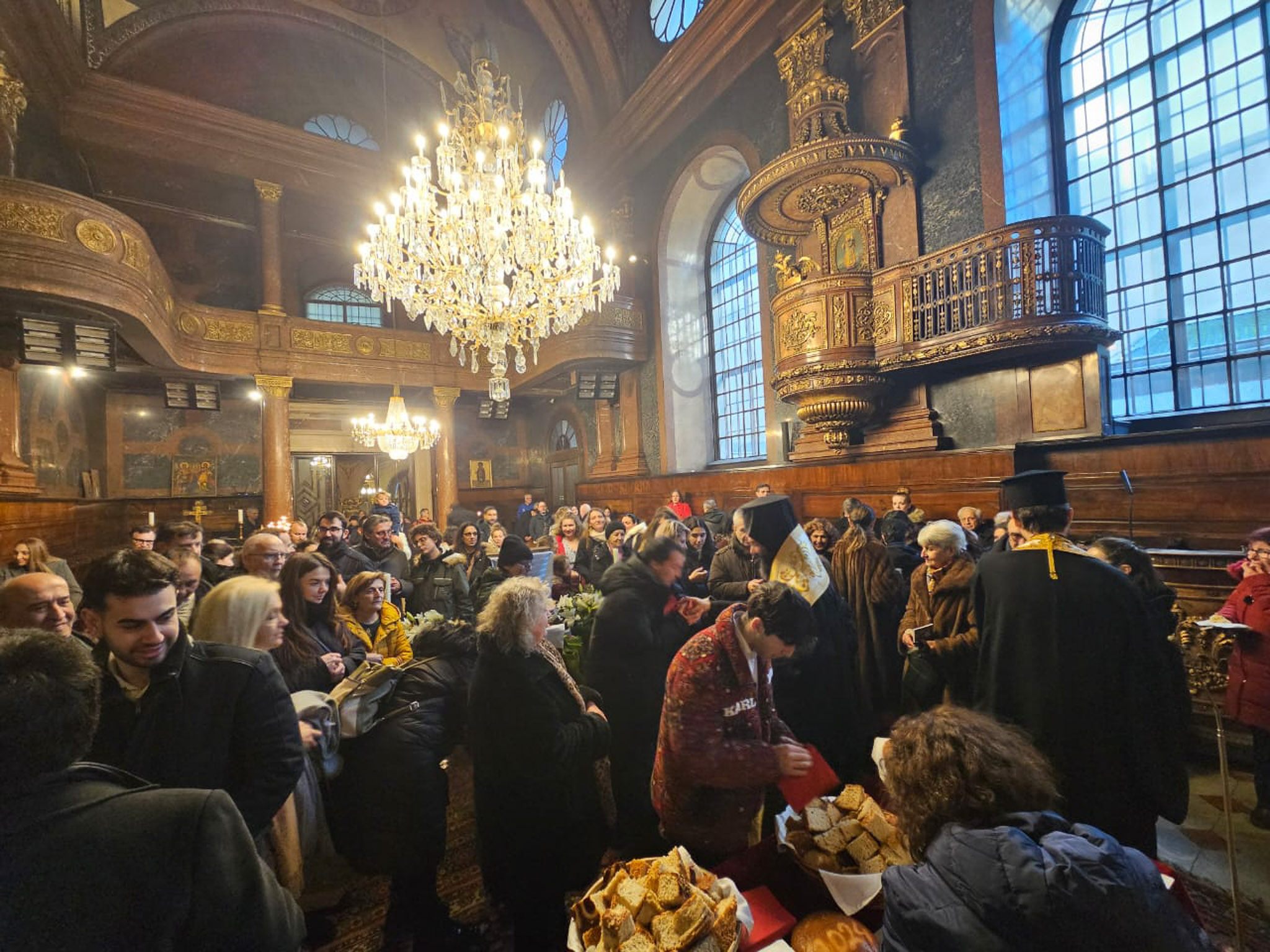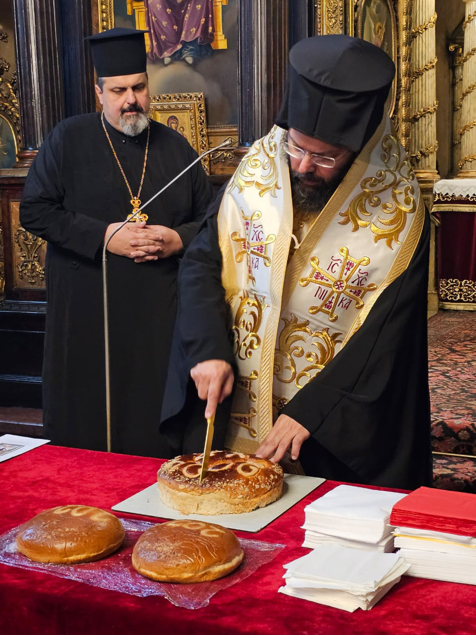 Anschließend begab sich die Festgemeinde in die Kathedrale der Heiligen Dreifaltigkeit, wo Metropolit Arsenios den Kuchen des Heiligen Basilius segnete und anschnitt. Die anwesenden Gläubigen hatten die Gelegenheit, mit Seiner Eminenz persönlich ihre Wünsche auszutauschen und den Segen der Kirche für das neue Jahr mit nach Hause zu nehmen.
