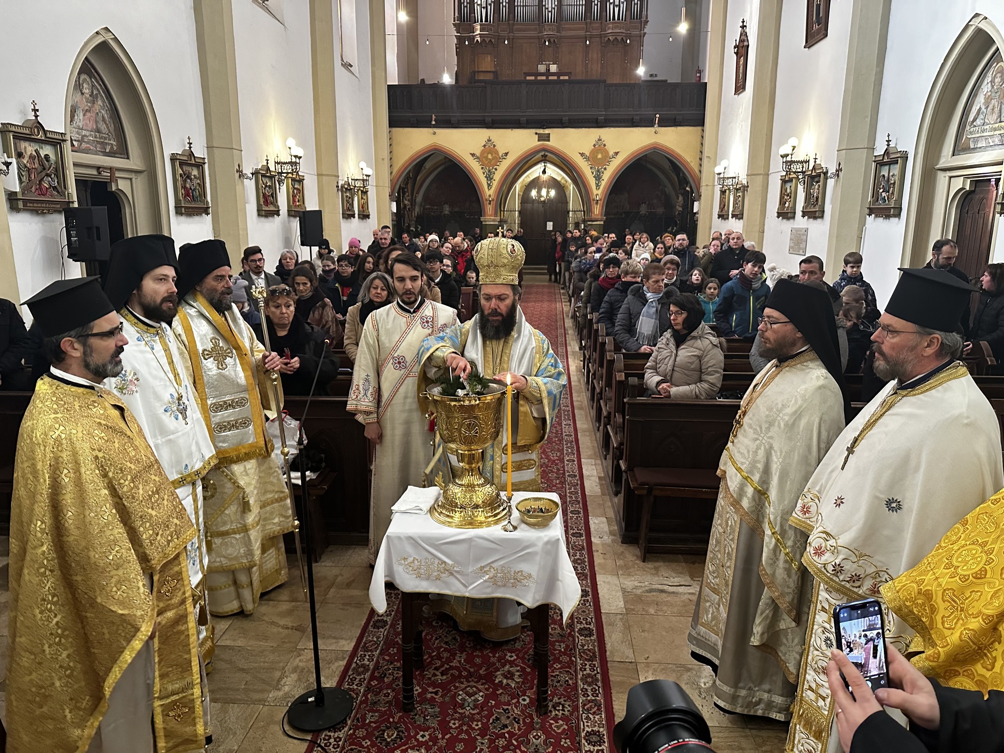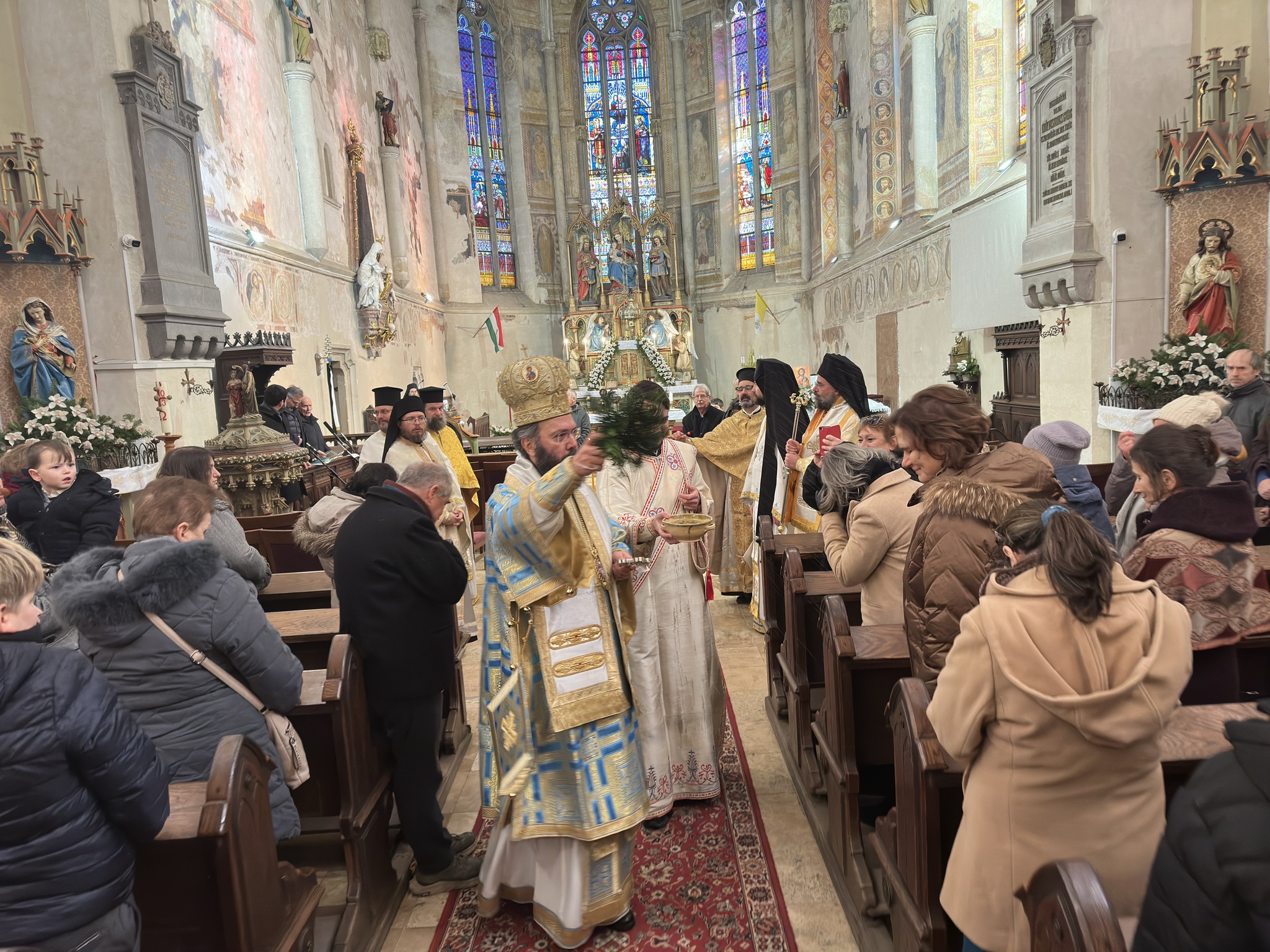 Am Samstag, dem 20. Januar 2024, feierten Seine Eminenz Metropolit Arsenios von Austria, Exarch von Ungarn und Mitteleuropa, und Seine Exzellenz Bischof Paisios von Apameia die Göttliche Liturgie zu Ehren des Heiligen Eufhymios des Großen. Generalvikar Archimandrit Maximos Rudko, die Priestermönche Dimitrios Frankiv, Stavrofor Grigorios Nácsinák und Prodromos Katona, der Presbyter Josef Ötvös und der Diakon Erasmos Brankovski assistierten den Bischöfen. Am Ende der Liturgie wurde die Große Wasserweihe gefeiert, damit die Gläubigen, die Schülerinnen und Schüler sowie die Lehrerinnen und Lehrer der Schule des Exarchats den Segen der Kirche erhalten. Anschließend begab sich die Festgemeinde zum Plattensee, wo Metropolit Arsenios die Wasserweihe vornahm. Schließlich traf Seine Eminenz die Schülerinnen und Schüler sowie die Lehrerinnen und Lehrer der Schule des Exarchats, segnete den Neujahrskuchen und besuchte das Schulfest.