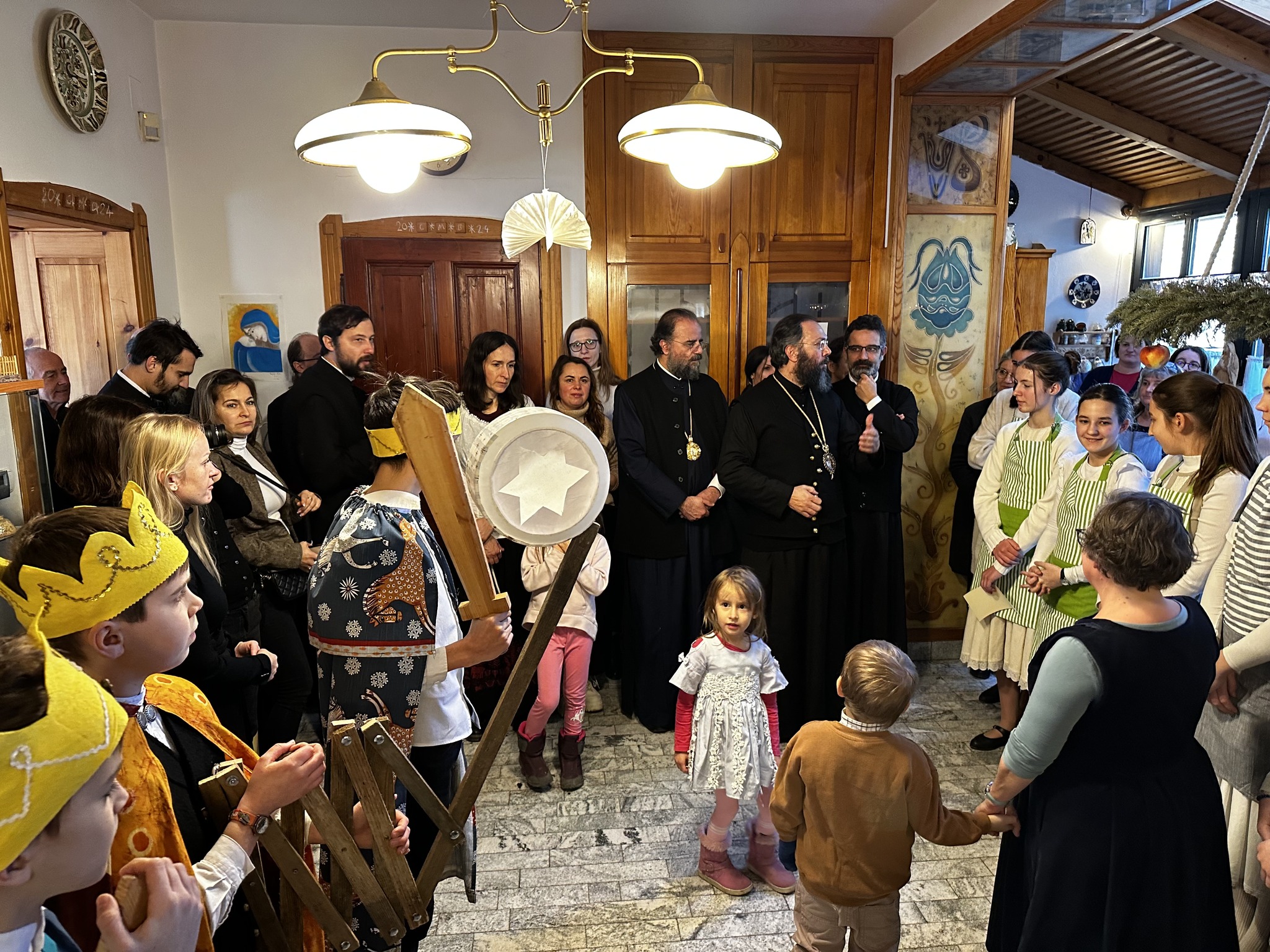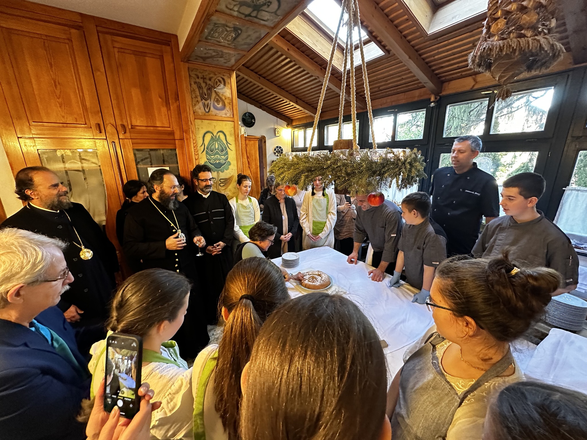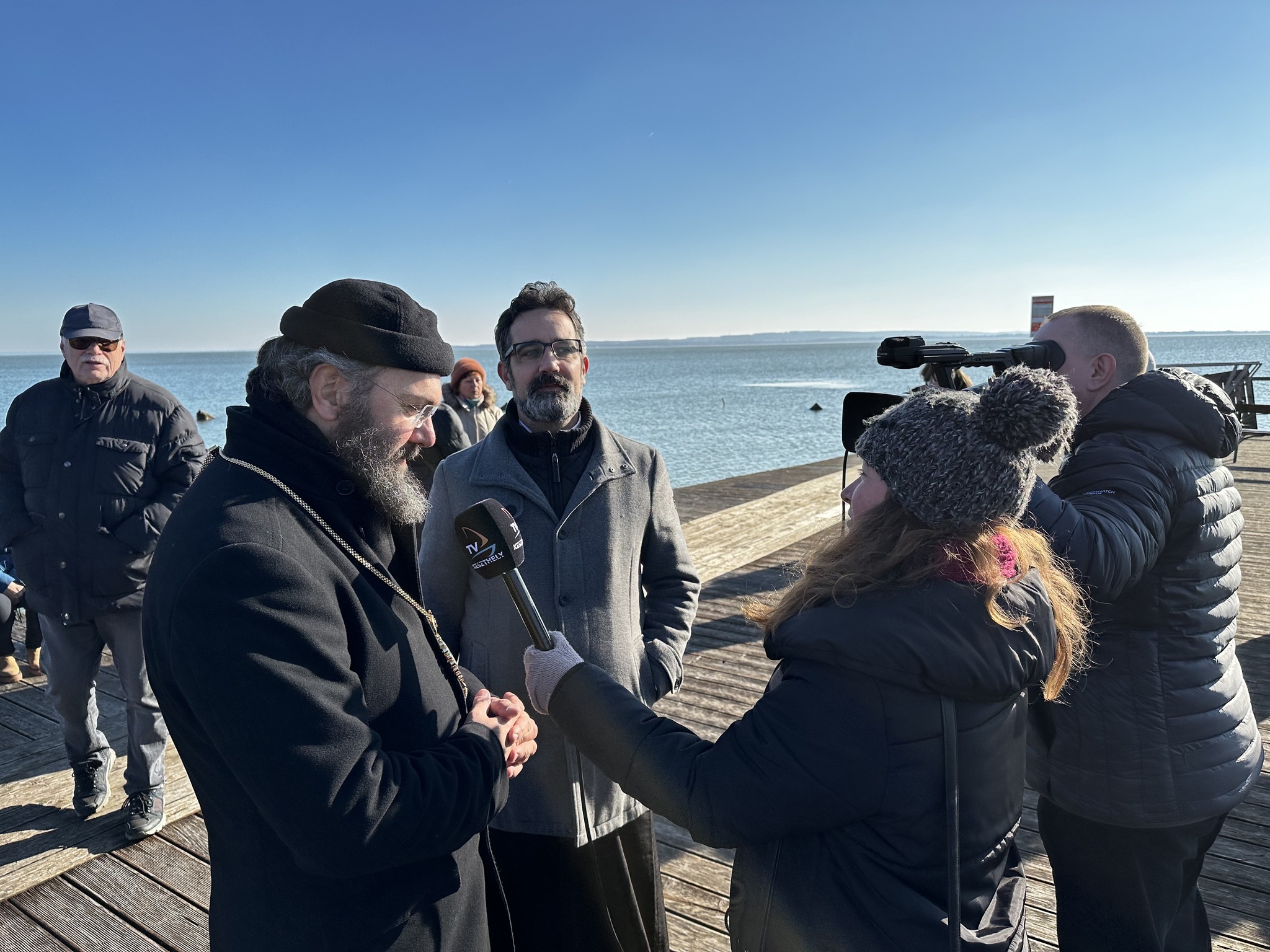 Begleitet von traditionellen Klängen begab sich die Festgemeinde zum Ufer des Plattensees, wo Seine Eminenz die Segnung des Gewässers vornahm. Ein großer Teil der Gemeinde, Schüler und Lehrer der Schule des Exarchats und Einwohner der Stadt, die diese neue Tradition für ihre Stadt verfolgen, nahmen an der Zeremonie teil. Nach der Zeremonie besuchte Seine Eminenz die Csalad-Schule des Exarchats von Ungarn, wo er sich von der sorgfältigen Erziehung der Kinder überzeugen konnte. Er nahm an dem von den Kindern vorbereiteten Festmahl teil und segnete anschließend den Neujahrskuchen, die Wassilopita, die von den Lehrern angeschnitten und verteilt wurde. Seine Eminenz beglückwünschte die Schülerinnen und Schüler zu ihrer wunderbaren Darbietung und sagte: „Ich freue mich wirklich jedes Mal, wenn ich hierher komme, weil ich sehe, dass der Geist der Liebe Christi herrscht“.