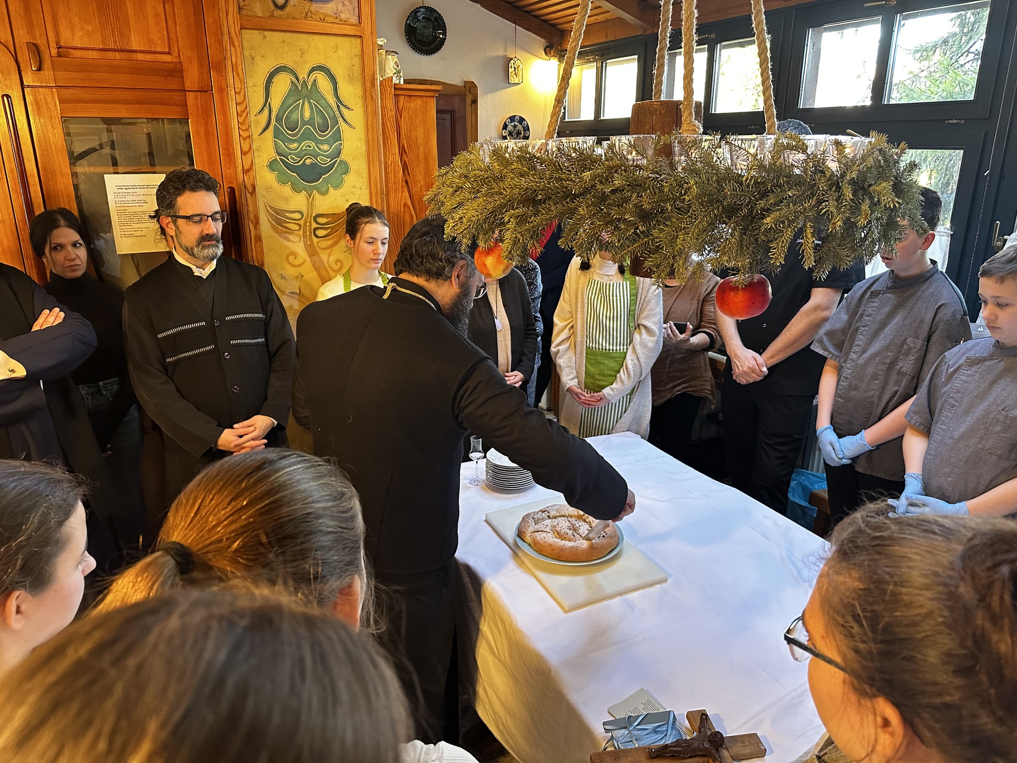 Anschließend nahm Seine Eminenz mit seinem ehrenwerten Gefolge an einem Mittagessen teil, bei dem die Schüler die Fähigkeiten demonstrierten, die sie im Hauswirtschaftsunterricht erworben hatten. Anwesend waren auch der Bürgermeister der Stadt, Herr Jenő Manninger, sowie die Patres Zoltan Tál und János Mokos von der römisch-katholischen Pfarre, die gnädigerweise die Kirche für die Feier des Gottesdienstes zur Verfügung stellten. Seine Eminenz dankte allen und wünschte für das neue Jahr Harmonie und Frieden und setzte seinen Pastoralbesuch im Exarchat des Ökumenischen Patriarchats in Ungarn fort.