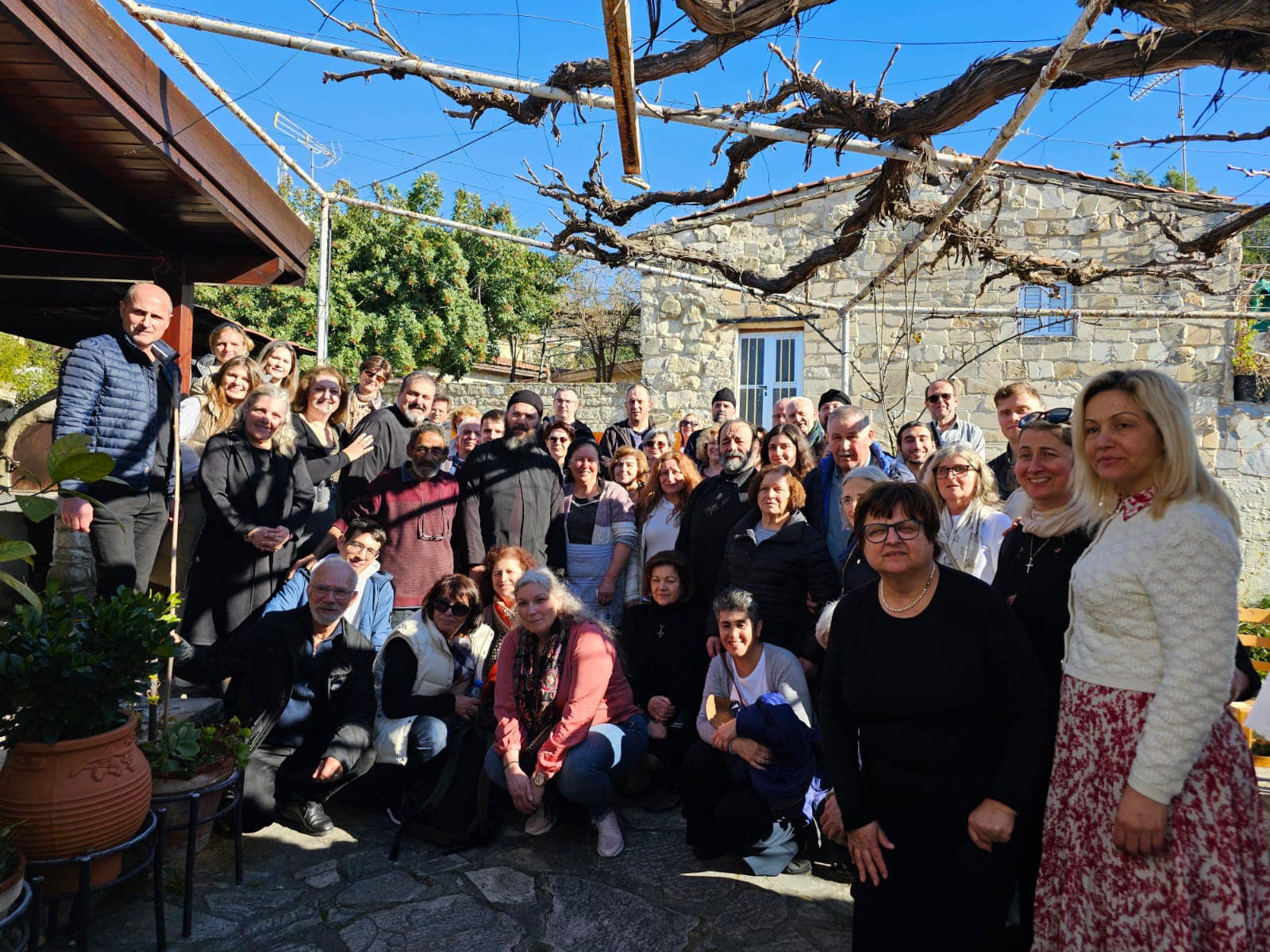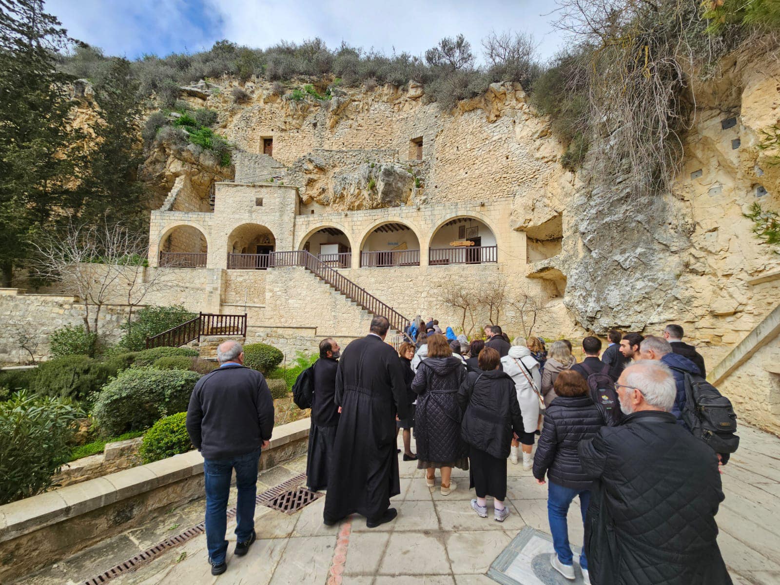 Am Dienstag, dem 6. Februar, überquerten die Pilger den Berg Troodos und pilgerten in Andacht zur Heiligen Basilika und zum Kreuzfahrerkloster des Heiligen Neophytos Enkleistos, auch bekannt als Kloster der Heiligen Enkleistra (Enklave), das 1159 vom Heiligen Neophytos in einer Höhle neun Kilometer nordwestlich von Paphos gegründet wurde und bis heute ununterbrochen bewohnt ist. Seine Exzellenz, Bischof Leontios von Chytra, empfing die Pilger in der Aula des Klosters, wo sie mit Seiner Eminenz, dem Bischof von Österreich, Grüße austauschten. Anschließend fuhr die Gruppe nach Letymbou, wo sie die uralte Kapelle der Heiligen Kerykos und Ioulita besuchte und die traditionelle Gastfreundschaft einer zypriotischen Familie mit Verbindungen nach Österreich genoss. Nach einer kurzen Besichtigung der Ausgrabungsstätte und der Stadt Paphos fuhren die Pilger nach Limassol, wo sie von Seiner Eminenz Metropolit Athanasios von Limassol und seinem Gefolge herzlich empfangen wurden. Nach der Andacht in der Kathedrale der Allerheiligsten Gottesgebärerin Pantanassa Katholiki hat Seine Eminenz Metropolit Athanasios von Limassol mit Metropolit Arsenios Grußworte ausgetauscht und gemeinsam mit Bischof Nikolaus von Amathous und dem Klerus die Pilgergruppe mit einem geistlichen Wort und Publikationen im Saal der Metropolis im Hof der Kathedrale herzlich empfangen.