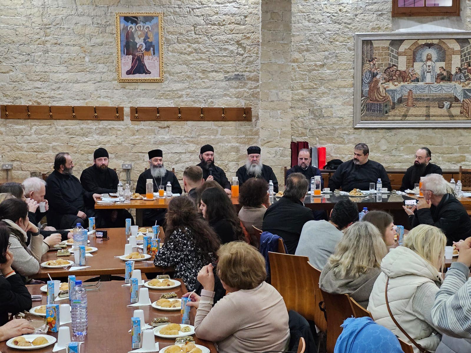 In den frühen Morgenstunden des Donnerstags, 8. Februar, wurden die Pilger zum Heiligen Kloster Machera gebracht. Dort wurden der Orthros und die Göttliche Liturgie nach dem Ritus des Berges Athos feierlich zelebriert. Seine Eminenz Metropolit Arsenios von Austria stand und mit ihm gemeinsam zelebrierten Ihre Exzellenzen Paisios von Apameia, Porphyrios von Neapolis und Epiphanios von Ledra, sowie der Abt des Klosters. Anschließend wurde den Gästen im Klostersaal ein reichhaltiges Frühstück serviert und Grüße und Wünsche ausgetauscht.
