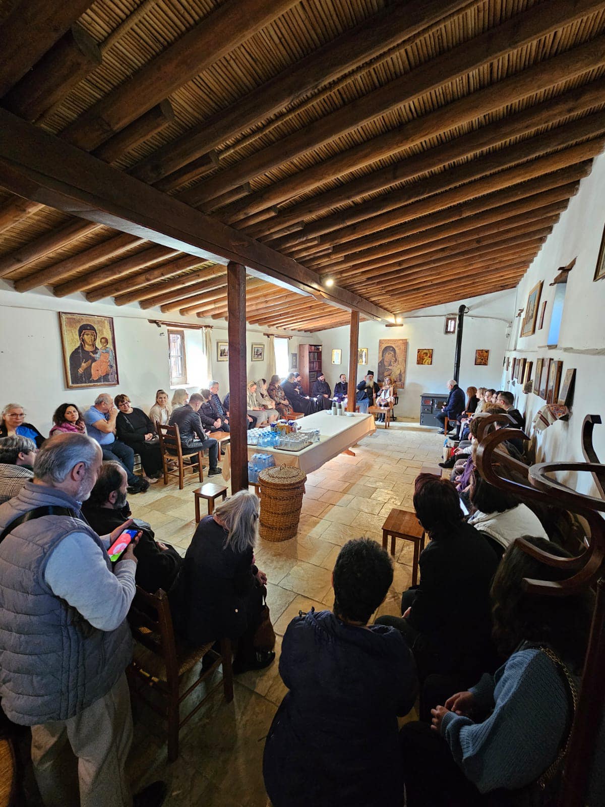 Am Freitag, dem 9. Februar, besuchten die Pilger das Kloster St. Nikolaus von Orunda. Nach einem Gebet im Katholikon des Klosters wurden sie von der Äbtissin Philumena über die Geschichte des Klosters (12.-15.-20. Jh.) und seine jüngste Renovierung informiert. Seine Eminenz Metropolit Arsenios von Austria und die Pilger wurden in der Aula des Klosters von Seiner Eminenz Metropolit Neophytos von Morphou empfangen, der ihnen neben reicher Gastfreundschaft auch ein geistliches Wort mit auf den Weg gab. Metropolit Arsenios dankte Seiner Eminenz.