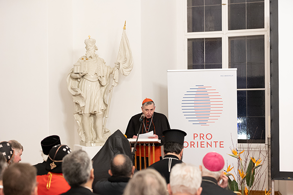 Im Anschluß an den Gottesdienst fand ein Festakt zum 60jährigen Jubiläum der Stiftung „Pro Oriente“ im Wiener Erzbischöflichen Palais statt, bei dem der Hauptvortrag von Kardinal Kurt Koch gehalten wurde. Metropolit Arsenios richtete Grußworte an die feierliche Versammlung. Er sagte unter anderem, daß „wir dankbar auf viele Jahrzehnte des segensreichen Wirkens im Dienst an der Versöhnung und der Annäherung zwischen der Katholischen Kirche und den Kirchen des Ostens zurückblicken.“ Kardinal Franz König und die von ihm begründete Stiftung „Pro Oriente“ dürfen zurecht als eine der großen und bedeutenden Akteure in der Ökumenischen Bewegung seit dem Zweiten Vatikanischen Konzil gelten. Metropolit Arsenios betonte, daß „Ökumene im Sinne der Stiftung ‚Pro Oriente‘ keine abstrakte Idee ist, es ist keine ‚Schreibtischökumene‘, sondern immer ganz konkret, es ist zuerst eine wohlwollende und freundschaftliche Begegnung, des persönlichen Kontakts. Es ist eine Ökumene, die ein konkretes Gegenüber hat – und in diesem Gegenüber Christus zu erkennen versucht, im authentischen, ehrlichen, aber vor allem freundschaftlichen Ringen um die Wahrheit.“ In diesem Sinne wünschte er, daß viele weitere Jahre folgen und viele neue Generationen und junge Menschen von diesem Geist inspiriert werden mögen.
