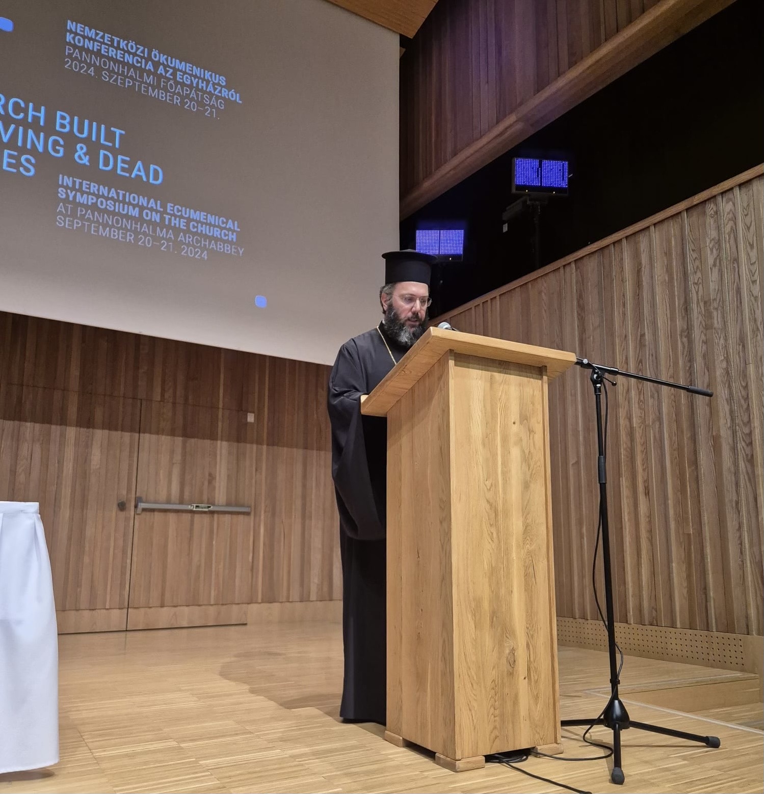 Am 20. und 21. September 2024 fand in der Abtei von Pannonhalma, Ungarn, das Vierte Internationale und Interchristliche Symposium zum Thema „Kirche aus lebendigen und toten Steinen“ statt. Die Atmosphäre war feierlich anlässlich des 800-jährigen Jubiläums der Weihe der Abteikirche. Unter den hochrangigen Gästen waren auch der Wiener Erzbischof Kardinal Christoph Schönborn und der emeritierte Erzbischof Rowan Williams von der Anglikanischen Kirche. Die Orthodoxe Kirche war durch Seine Eminenz Metropolit Arsenios von Austria, Exarch von Ungarn, vertreten. In ihrer Ansprache bei der Eröffnungssitzung am Freitagvormittag, 20. September verwies er auf die Teilnahme des Ökumenischen Patriarchen Bartholomaios an Friedenskonferenzen in Ungarn im vergangenen Jahr, die einen vielversprechenden Meilenstein für den interreligiösen und interchristlichen Dialog darstellten. Er fuhr fort, dass die Verpflichtung der Teilnehmer am Dialog darin besteht, sich von dem Bewusstsein des Irrtums und der Sündhaftigkeit und der vollständigen Kultivierung des geistlichen Lebens leiten zu lassen, wobei das Ziel des Kurses das Gebot ist, das der Herr selbst als Grundlage der Kirche festgelegt hat, „alle in einem zu sein“ (Joh 17,21). In seinen Überlegungen zu den Perspektiven des interchristlichen Dialogs stellte er fest, dass „wir uns nicht nur mit äußeren, rechtlichen oder administrativen Fragen befassen sollten, die die Einheit der Kirche sichtbar machen würden“, sondern eine Lösung für das innere Problem suchen sollten, nämlich dass wir gespalten sind, obwohl wir alle als Jünger Christi gelten“. Seine Eminenz bezog sich auch auf die Lehre der liturgischen Erfahrung, als er den Satz aussprach: „Christus in unserer Mitte! – Er ist und Er wird sein!“, und lud alle ein, an der Christus-zentrierten Begegnung teilzunehmen und optimistisch zu sein, dass Christus uns eint. Schließlich wies er darauf hin, dass die Kirchenväter unwiderlegbare Zeugen der Wahrheit und ein Kompass auf dem Lebensweg für jeden Christen sind.