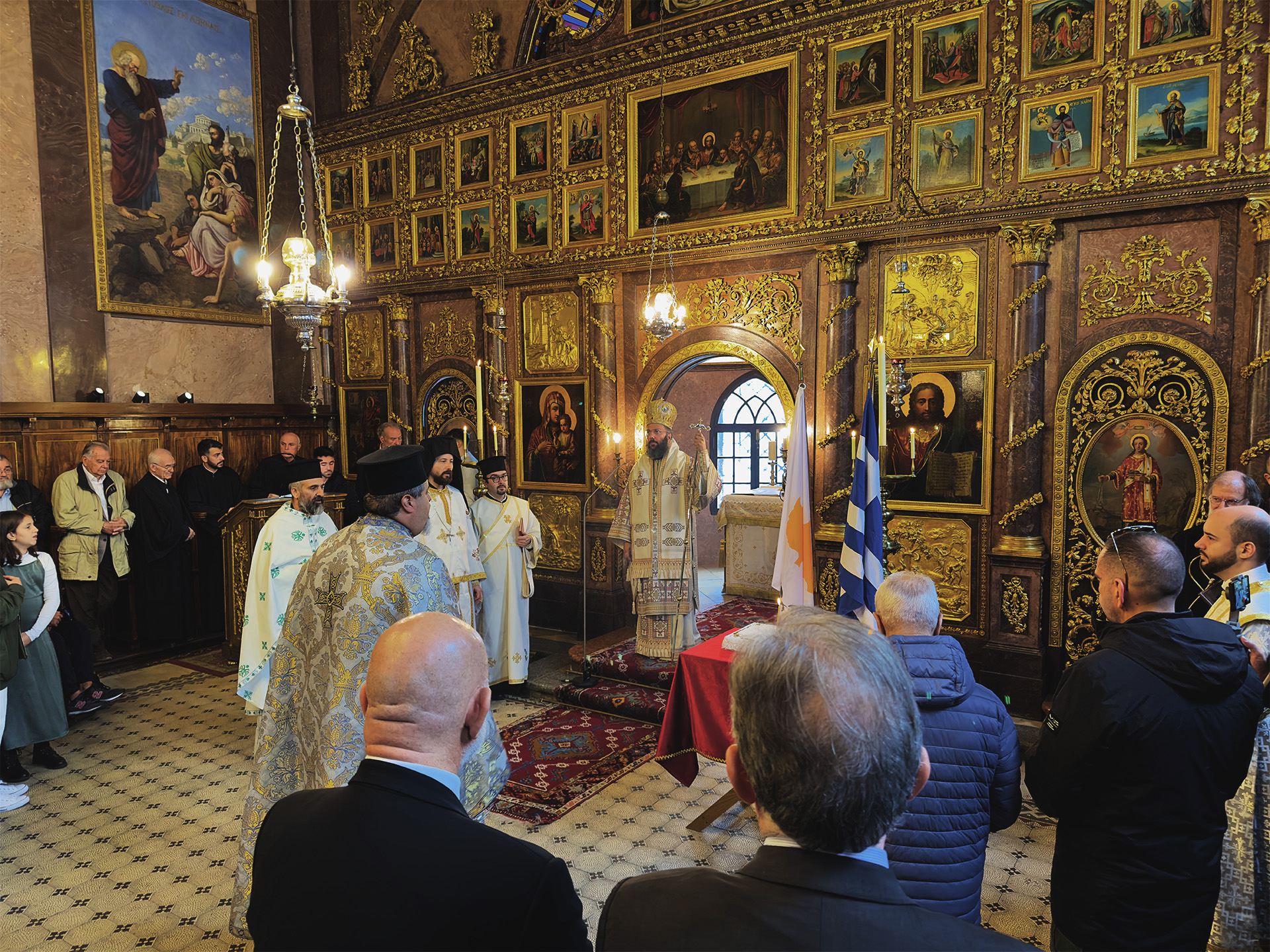 Am Sonntag, den 29. September 2024, stand Seine Eminenz Metropolit Arsenios von Austria der Erzbischöflichen Göttlichen Liturgie zum Gedächtnis des Heiligen Kyriakos des Einsiedlers in der Kirche zum Heiligen Georg in Wien vor. Mit dem Metropoliten zelebrierten Generalvikar Bischofselekt Maximos von Aristi, Bischofsvikar Erzpriester Ioannis Nikolitsis, Priester Aristeidis Ganosis und Diakon Goran Ostojic. Bei der Liturgie waren die Exzellenzen der Botschafter der Republik Zypern, Herr Andreas Ignatiou, und der Republik Griechenland, Herr Georgios Iliopoulos, sowie andere Mitglieder des diplomatischen Korps anwesend. Im Anschluss an die Liturgie wurde ein Totengedenken für die Gefallenen nach der türkischen Invasion im Jahr 1974 abgehalten.