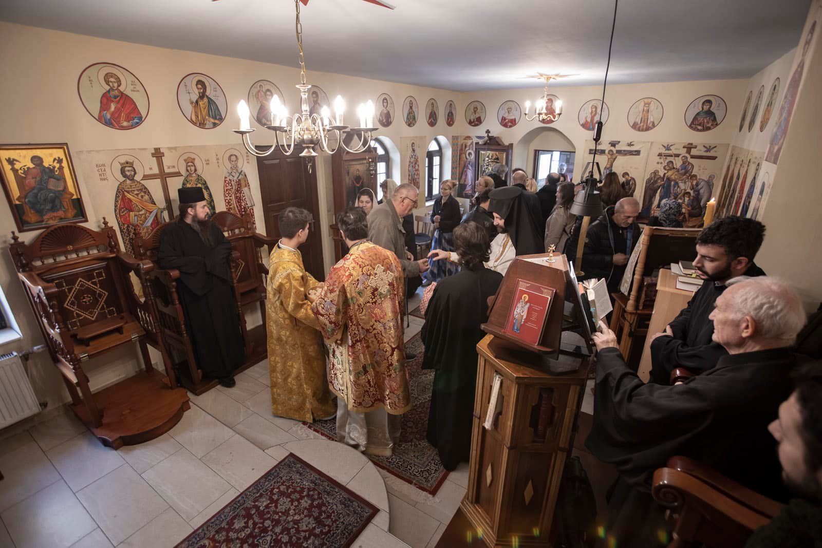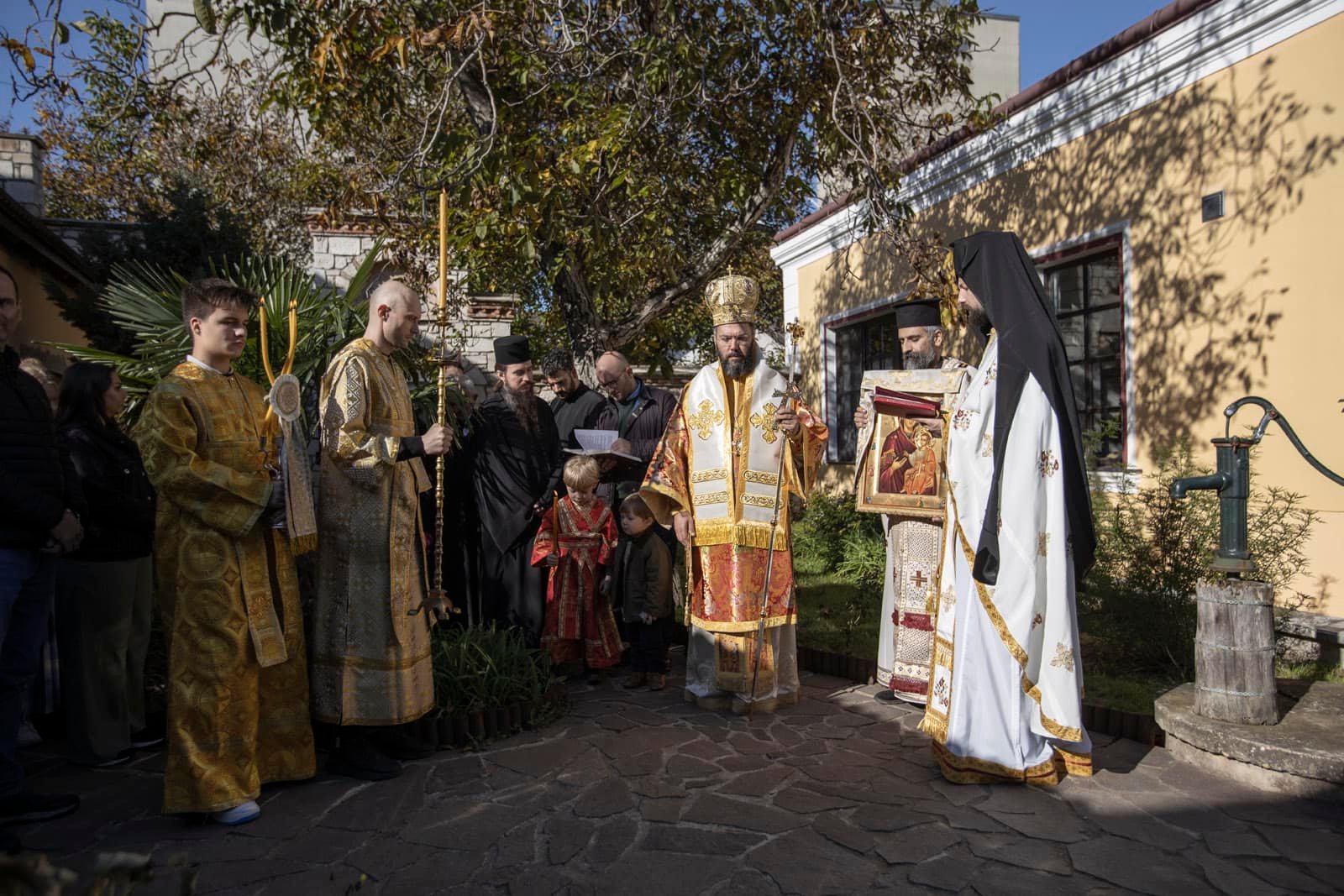 Am Samstag, dem 12. Oktober 2024, leitete Seine Eminenz Metropolit Arsenios von Austria in St. Andrä am Zicksee die Erzbischöfliche Göttliche Liturgie zum Patrozinium des Klosters Schutz der Allerheiligsten Gottesmutter und des Heiligen Paisios vom Berg Athos. Bischof Maximos von Aristi begleitete den Metropoliten liturgisch zusammen mit dem Ökonom des Klosters, dem Priestermönch Iakobos Giannopoulos und dem Presbyter Aristeidis Ganosis. Bereits am Vorabend wurde feierlich die erzbischöfliche Vesper nach der Gebetsordnung der Kirche, ein Bittgebet an unsere Herrin, die Gottesmutter und Immerwährende Jungfrau Maria und ein Apodeipnon gefeiert. Nach der Göttlichen Liturgie empfing Seine Eminenz die Pilger im Festsaal des Klosters und hielt eine Ansprache gemäß der Lehre der Kirche. Anschließend waren alle im Archontariki des Klosters zu Mittagessen eingeladen.