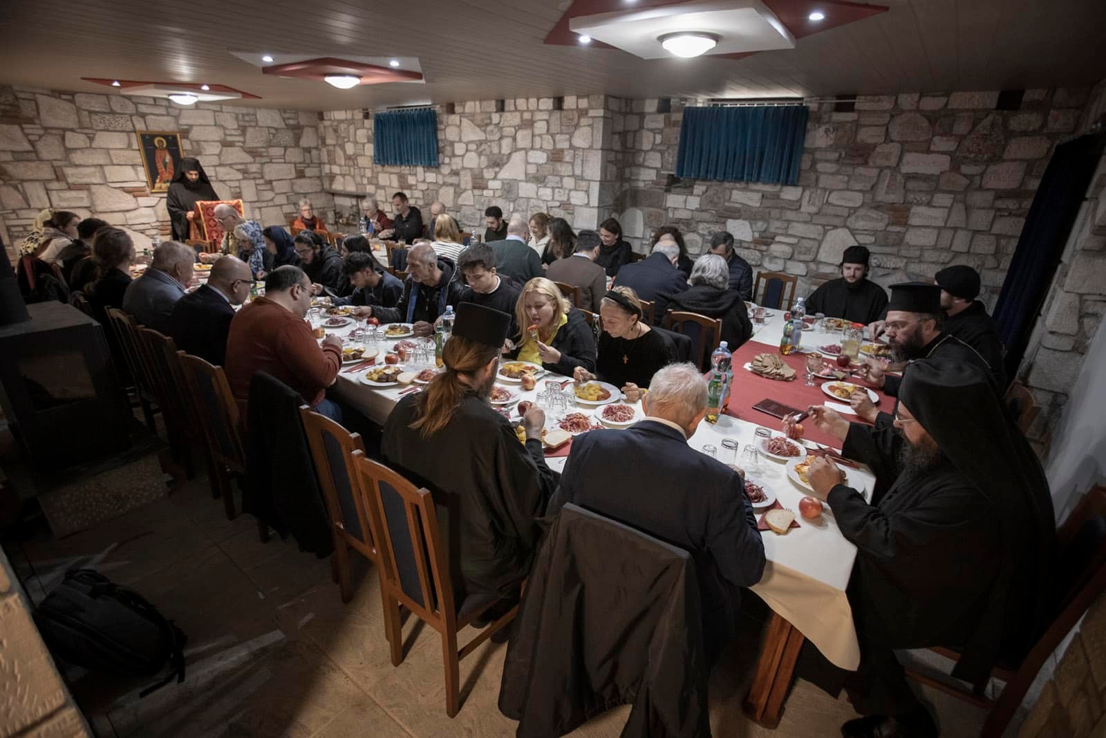 Nach der Ansprache nahmen alle an einem von den Patres des Klosters zubereiteten und von Seiner Eminenz gesegneten Mittagessen teil. Nach dem Essen gab es Gelegenheit zu Begegnung und geistlichen Gesprächen.
