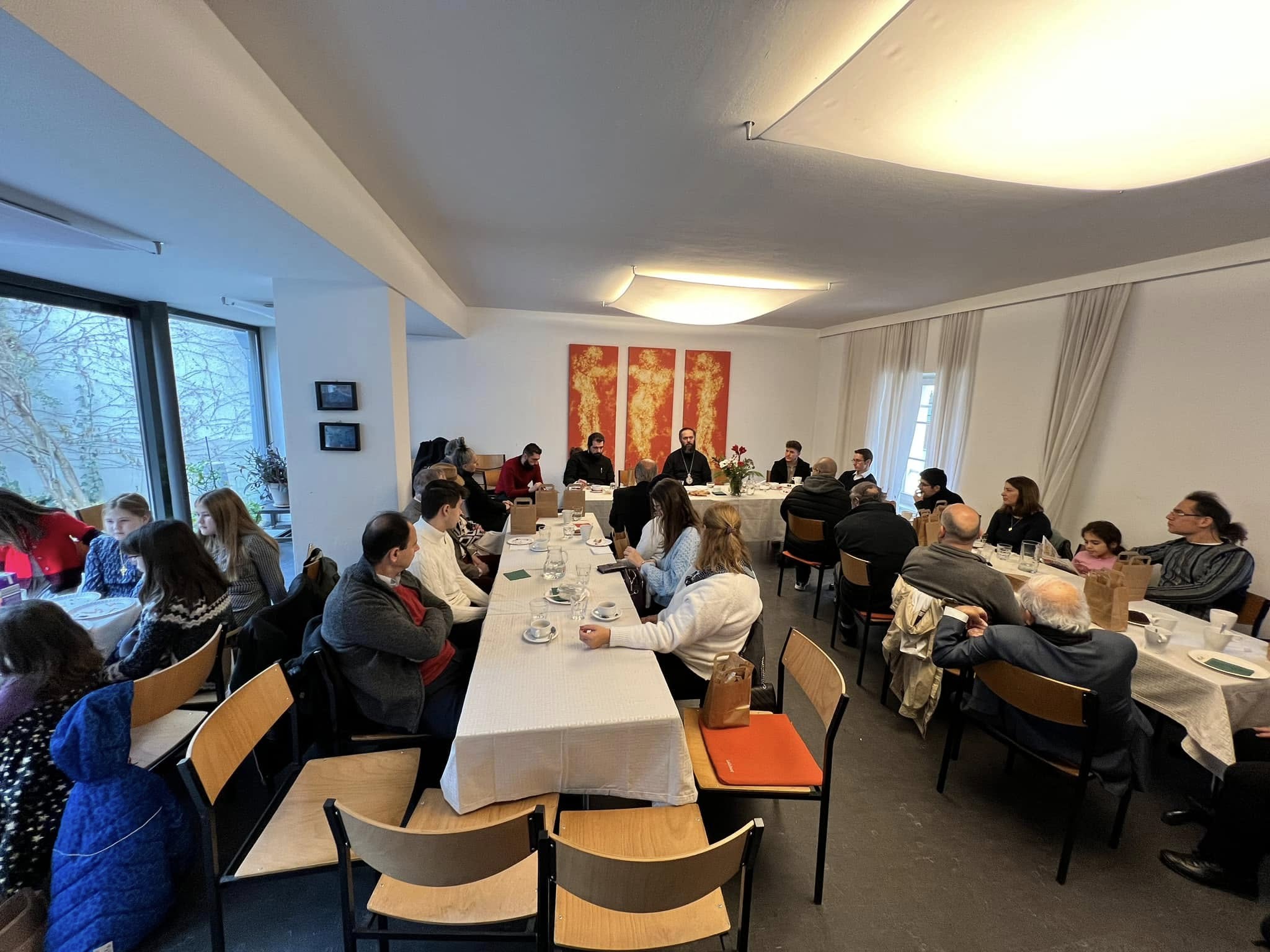 Nach dem Gottesdienst gab es eine Agape mit wunderbaren Köstlichkeiten. Metropolit Arsenios wünschte allen alles Gute und nahm auch Wünsche entgegen. Er lobte die Bemühungen von P. Dimitrios und seinen Mitarbeitern.