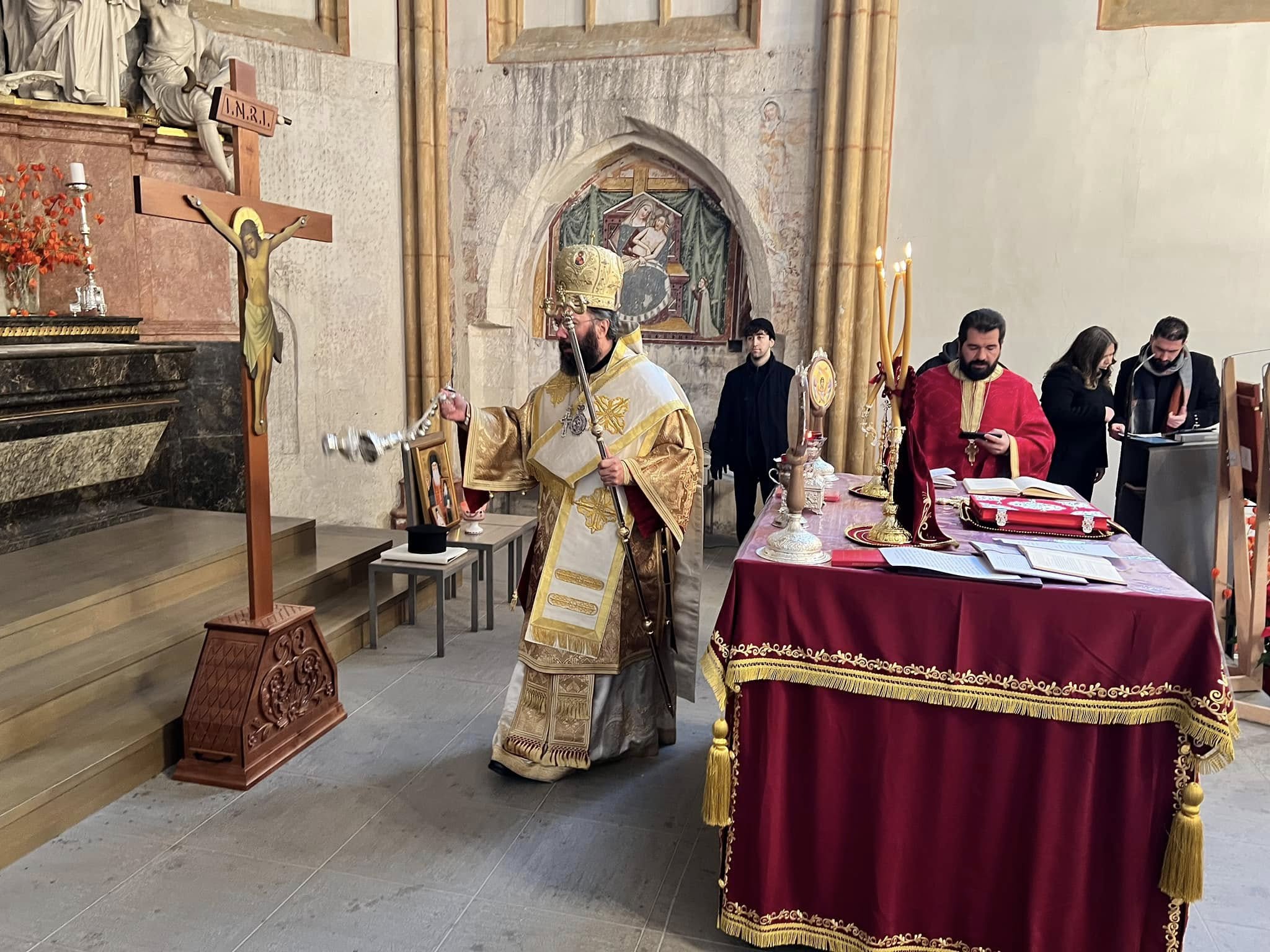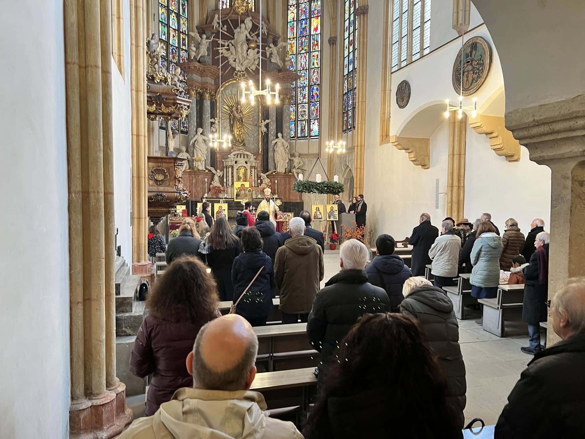 Am Sonntag, dem 1. Dezember 2024, stand Seine Eminenz Metropolit Arsenios von Austria der Erzbischöflichen Göttlichen Liturgie in der Gemeinde der Heiligen Ärzten Kosma und Damian in der Universitätskirche am Leech vor. Protopresbyter Dimitrios Markis hat Seine Eminenz ganz herzlich empfangen und mit ihr die Eucharistiefeier zelebriert. Nach dem Gottesdienst wurde den Gläubigen die Gelegenheit angeboten, mit Seiner Eminenz über die Fastenzeit im Advent auszutauschen.