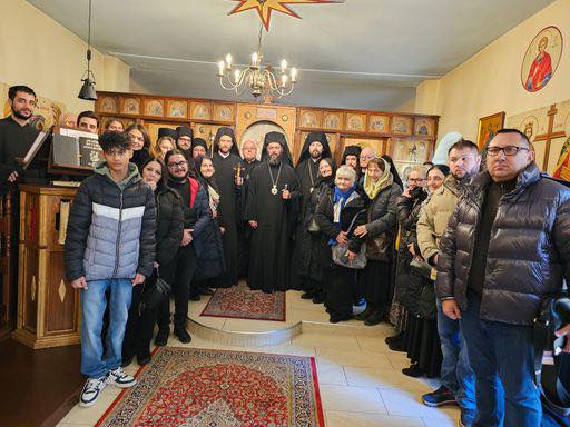 Anschließend waren alle in den Festsaal des Klosters eingeladen, wo sie ein geistliches Wort des Metropoliten über die Bedeutung von Weihnachten hörten und Gelegenheit hatten, mit ihm, Bischof Maximos und den Brüdern des Klosters ins Gespräch zu kommen. Zum Abschluss waren die Pilger zu einem festlichen Abendessen im Klosterspeisesaal eingeladen.