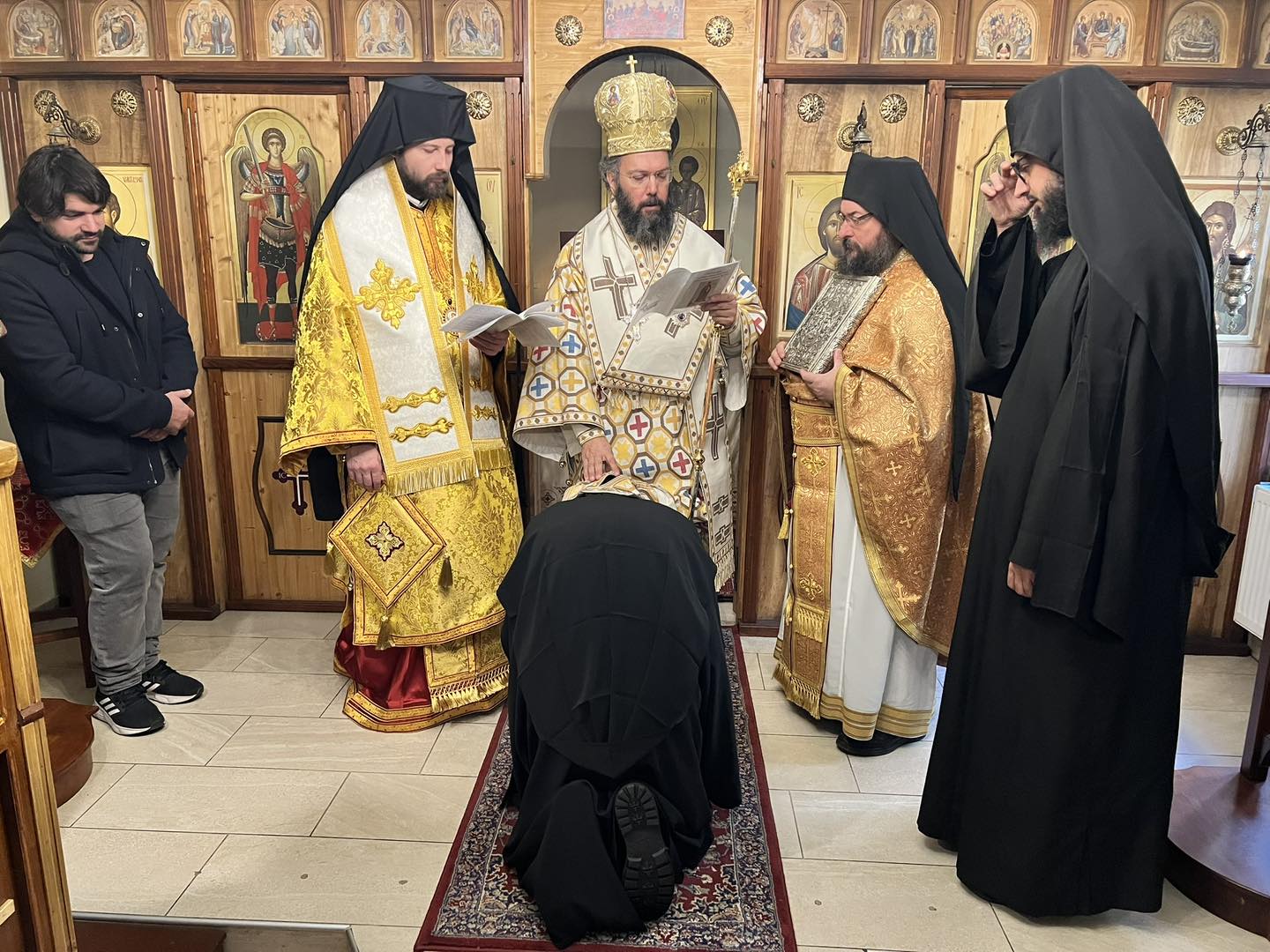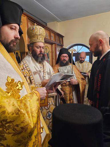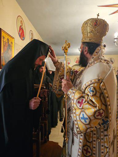 Am Sonntag, dem 29. Dezember 2024 zelebrierten Seine Eminenz Metropolit Arsenios von Austria und Bischof Maximos von Aristi im Kloster Schutz der Allerheiligsten Herrin, Gottesgebärerin und Immerjunfrau Maria und des Heiligen Paisios aus dem Berg Athos. Seine Eminenz stand der Erzbischöflichen Göttlichen Liturgie vor, begleitet vom Bischof Maximos und Mönchpriester Iakovos Giannopoulos. Nach dem Orthros legte der Novize Ruslan das Mönchsgelübde ab und erhielt vom Metropoliten den Namen Savvas.