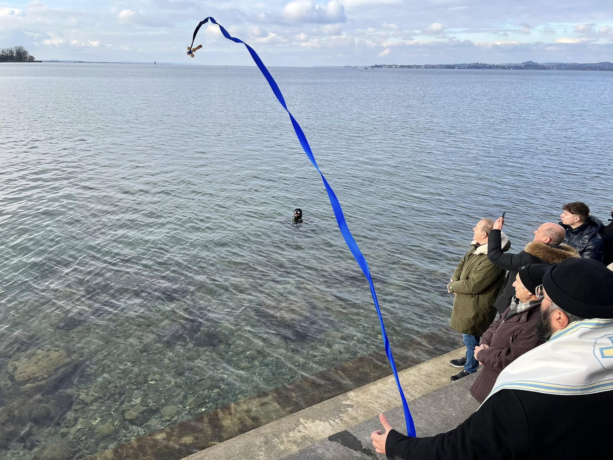 Im Anschluss an die Liturgie feierte Metropolit Arsenios eine Wasserweihe, bei der ihn auch der Erzpriester Goran Eric aus Bregenz und der Priester Nikola Balovic aus Feldkirch im Gebet begleiteten. Danach begaben sich alle an den Strand des Bodensees, wo der Metropolit das Wasser segnete, das Österreich, Deutschland und die Schweiz verbindet.
