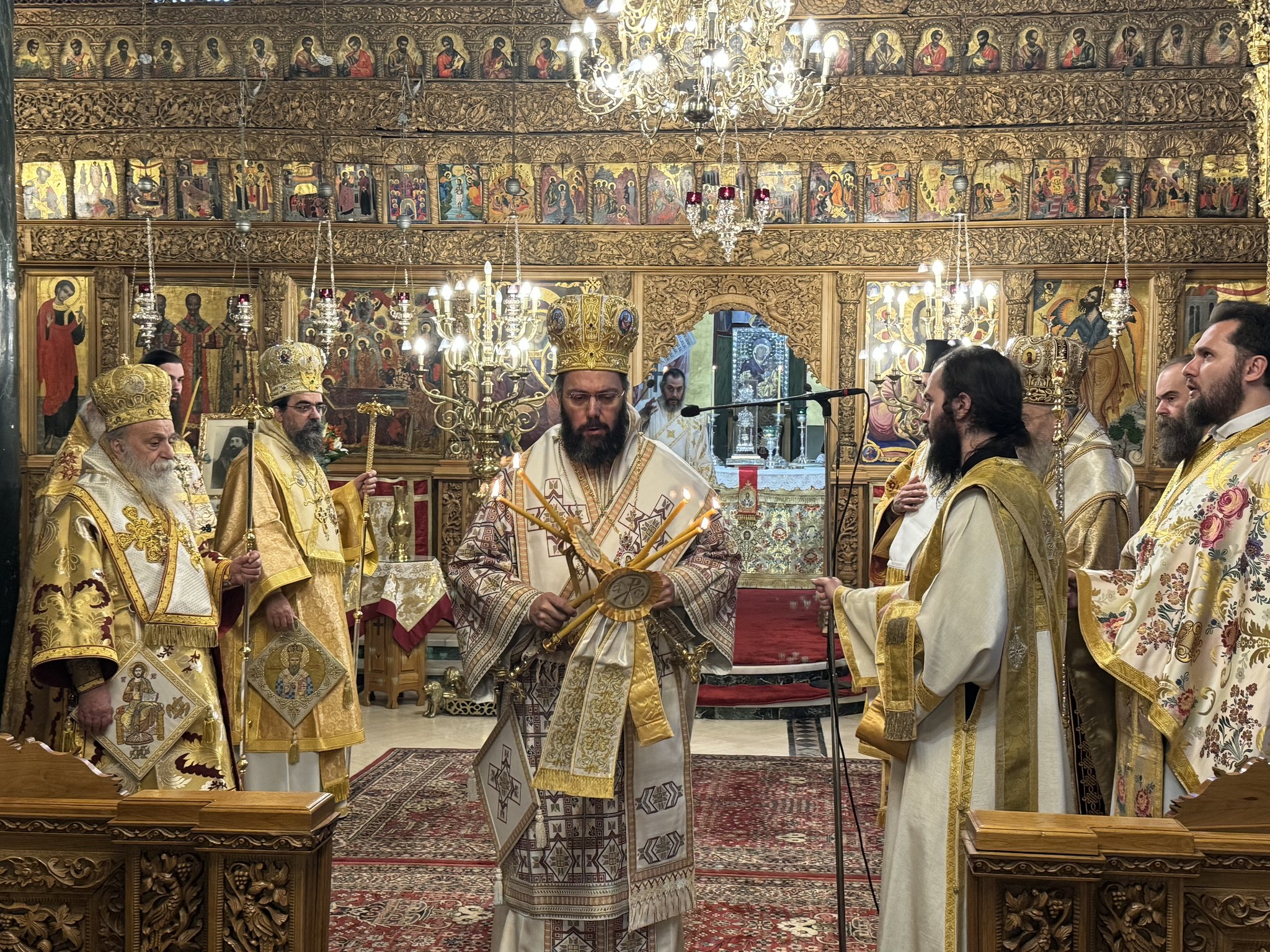 Am zweiten Sonntag des Triodions, dem 16. Februar 2025, an dem in unserer Kirche das Gleichnis vom barmherzigen Vater gelehrt wird, stand Seine Eminenz Metropolit Arsenios von Austria, Exarch von Ungarn und Mitteleuropa, der Göttlichen Liturgie in der Kathedrale der Entschlafung Mariens in Kastoria vor. Mit ihm zelebrierten Ihre Eminenzen Hierotheos von Nafpaktos und St. Blasios, David von Grevena, Kallinikos von Kastoria und Seine Exzellenz Apostolos von Tanagra. Anwesend waren auch Amtsträger und Vertreter der Politik, die Teilnehmer der Konferenz und das gläubige Volk. Nach der Göttlichen Liturgie wurde ein Totengedenken für Metropolit Germanos von Amaseia und für alle verstorbenen Metropoliten von Kastoria gefeiert und anschließend wurden Kränze am Denkmal von Metropolit Germanos niedergelegt.