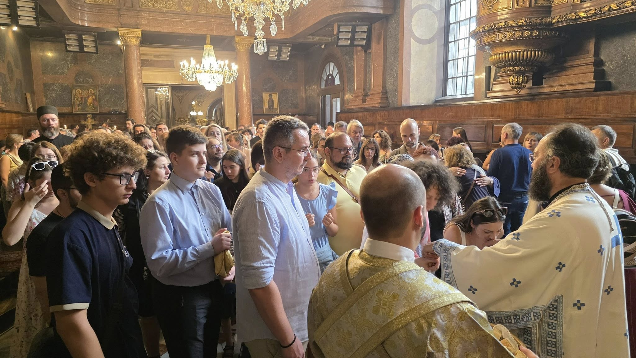Am Ende der Göttlichen Liturgie wurde eine Fürbitte für den Frieden der ganzen Welt vor der heiligen Ikone der Gottesgebärerin dargebracht. Anschließend folgte eine brüderliche Agape, bei der die Gläubigen dem Neupriester gratulierten und ihm ihre Glückwünsche aussprachen.