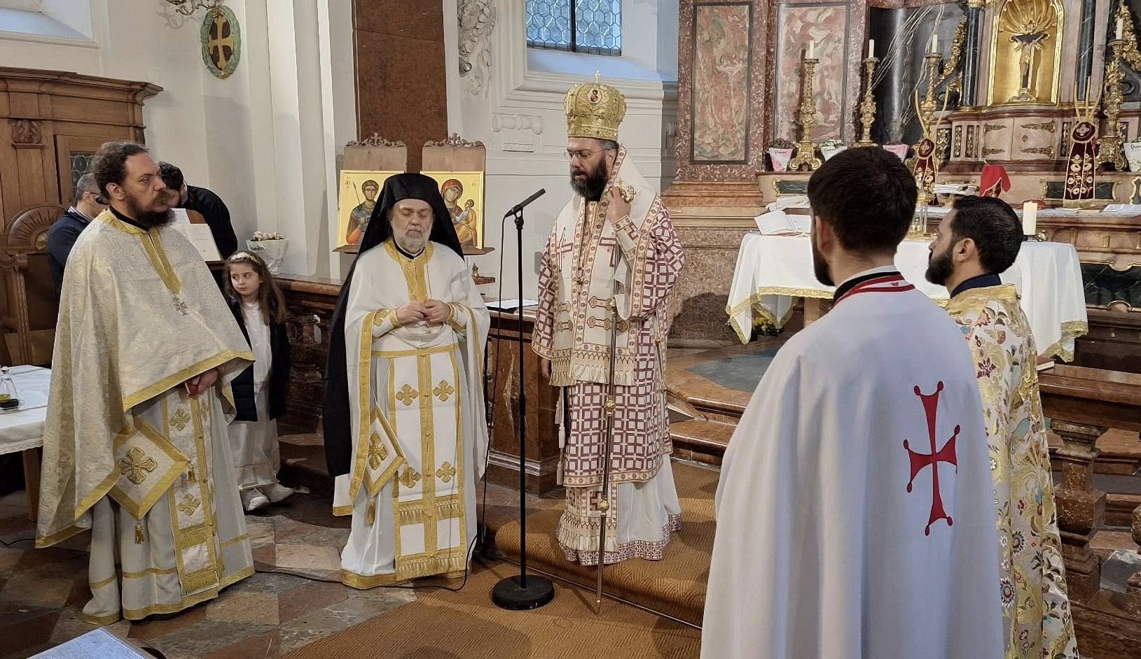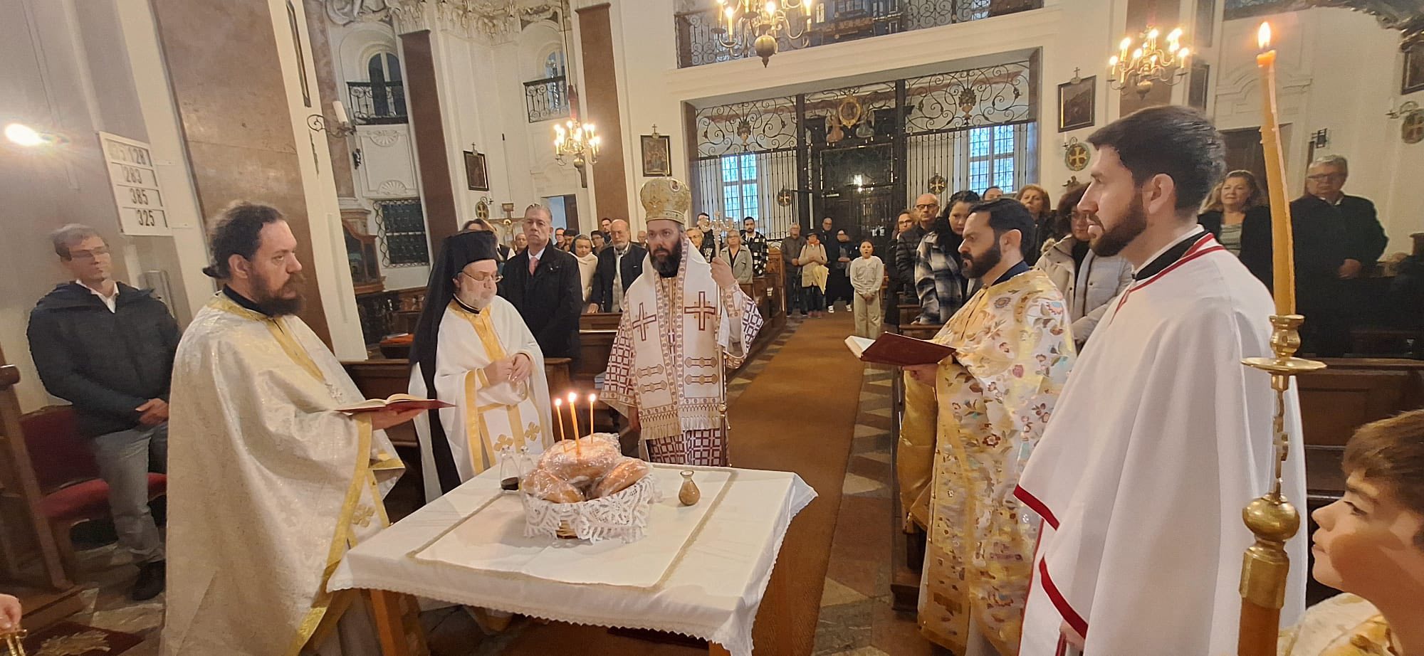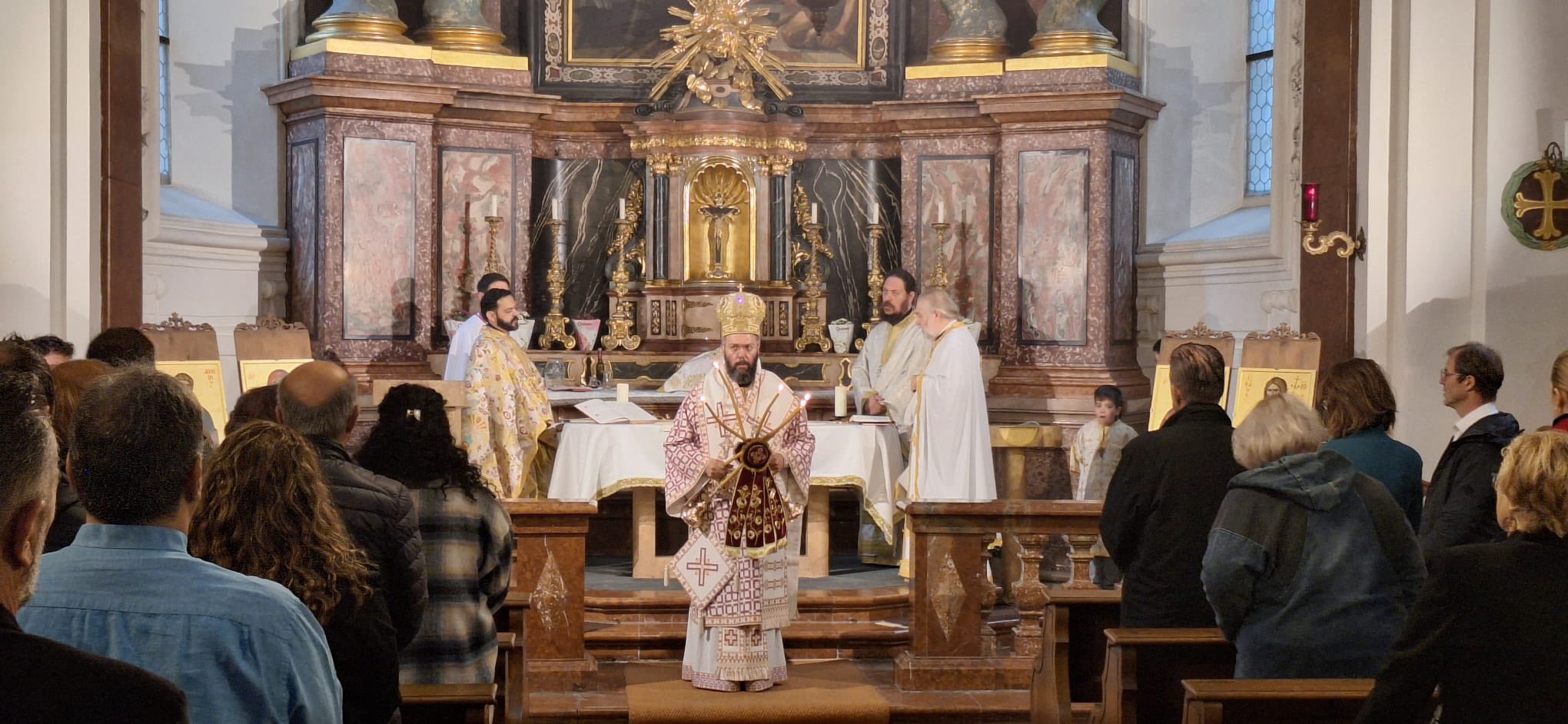 Am Sonntag, dem 2. November 2025 stand Seine Eminenz Metropolit Arsenios von Austria der Erzbischöflichen Liturgie zum Patrozinium der Kirchengemeinde des Heiligen Demetrios in Salzburg und ihm standen liturgisch Archimandrit Ilias Papadopoulos, Erzpriester Zafeirios Koutelieris und Presbyter Kostyantyn Shevchenko der ukrainischsprachigen Gemeinde bei. Nach der Göttlichen Liturgie dankte der Metropolit dem Archimandriten Ilias Papadopoulos für seinen wertvollen Beitrag zur Stärkung der Gemeinde und hieß Erzpriester Zafeirios Koutelieris willkommen, den er als Vorsteher der Gemeinde einsetzte. Es folgte ein Treffen im Gemeindezentrum und ein Schulfest anlässlich der Nationalfeiertage Griechenlands und Österreichs.