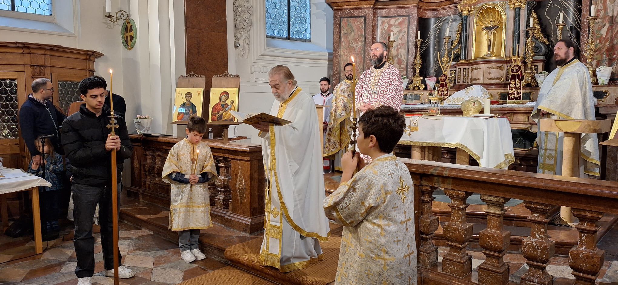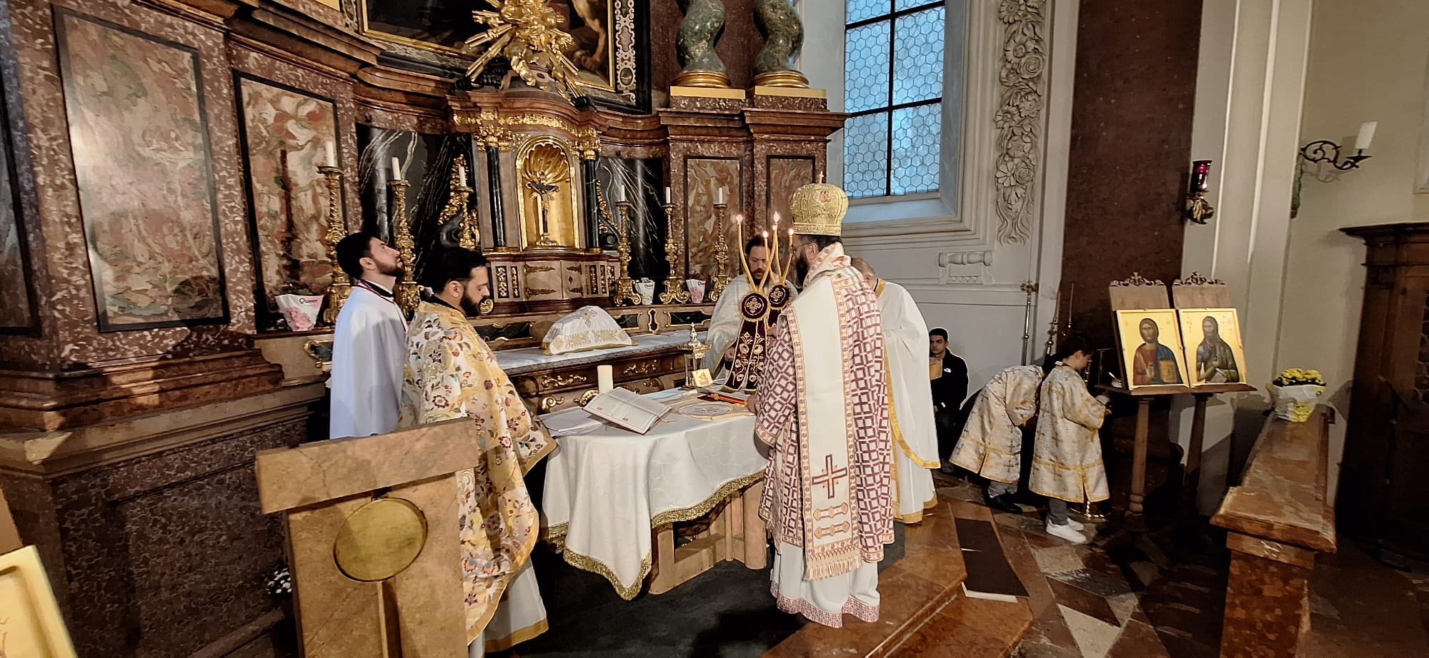 Erzbischöfliche Göttliche Liturgie zum Patrozinium der Gemeinde in Salzburg. Schulfest und Einstellung neuen Gemeindevorstehers.