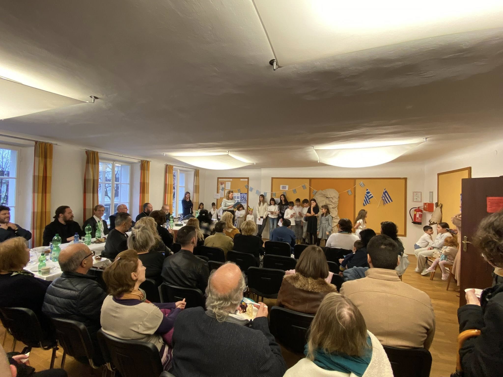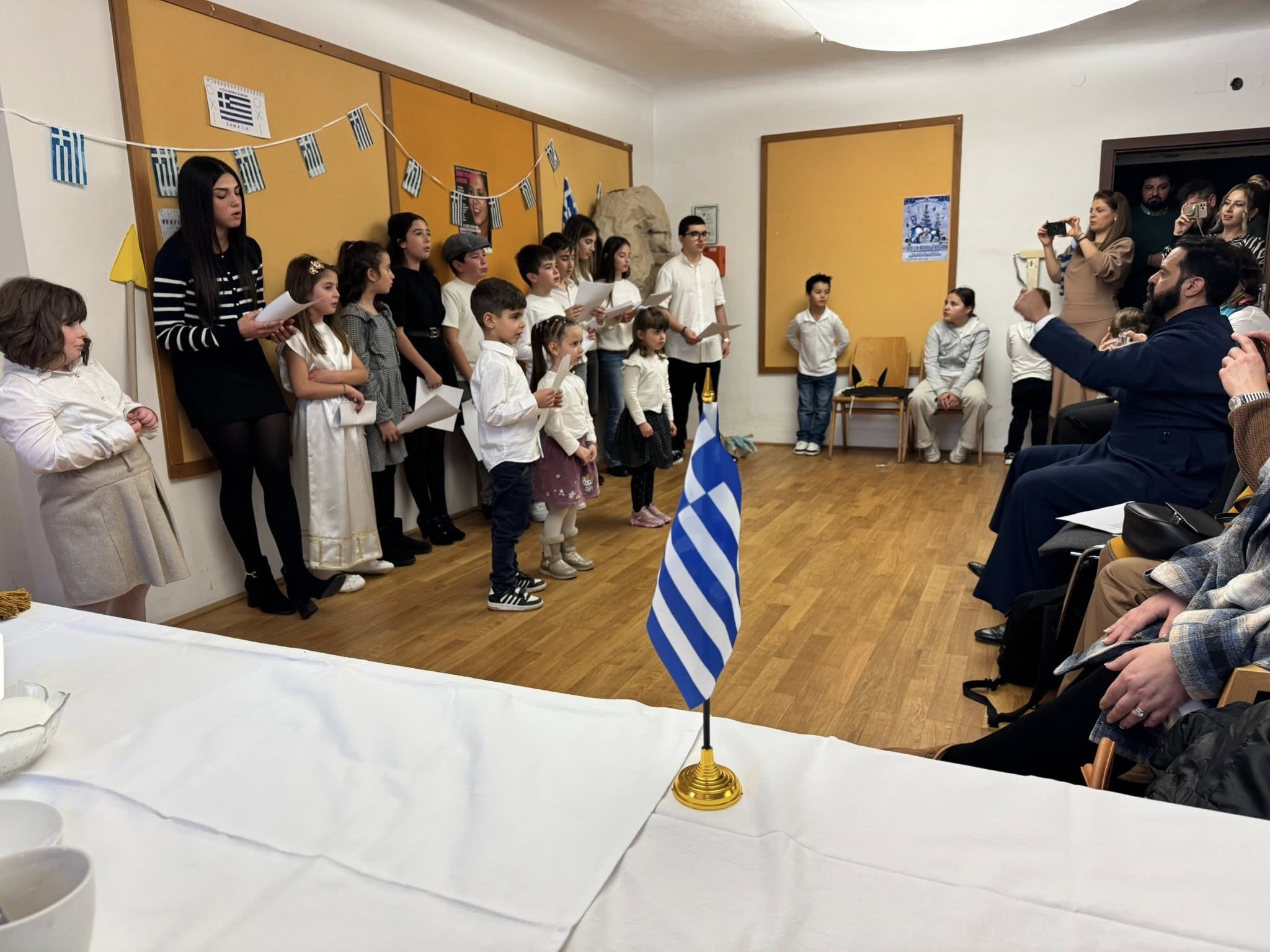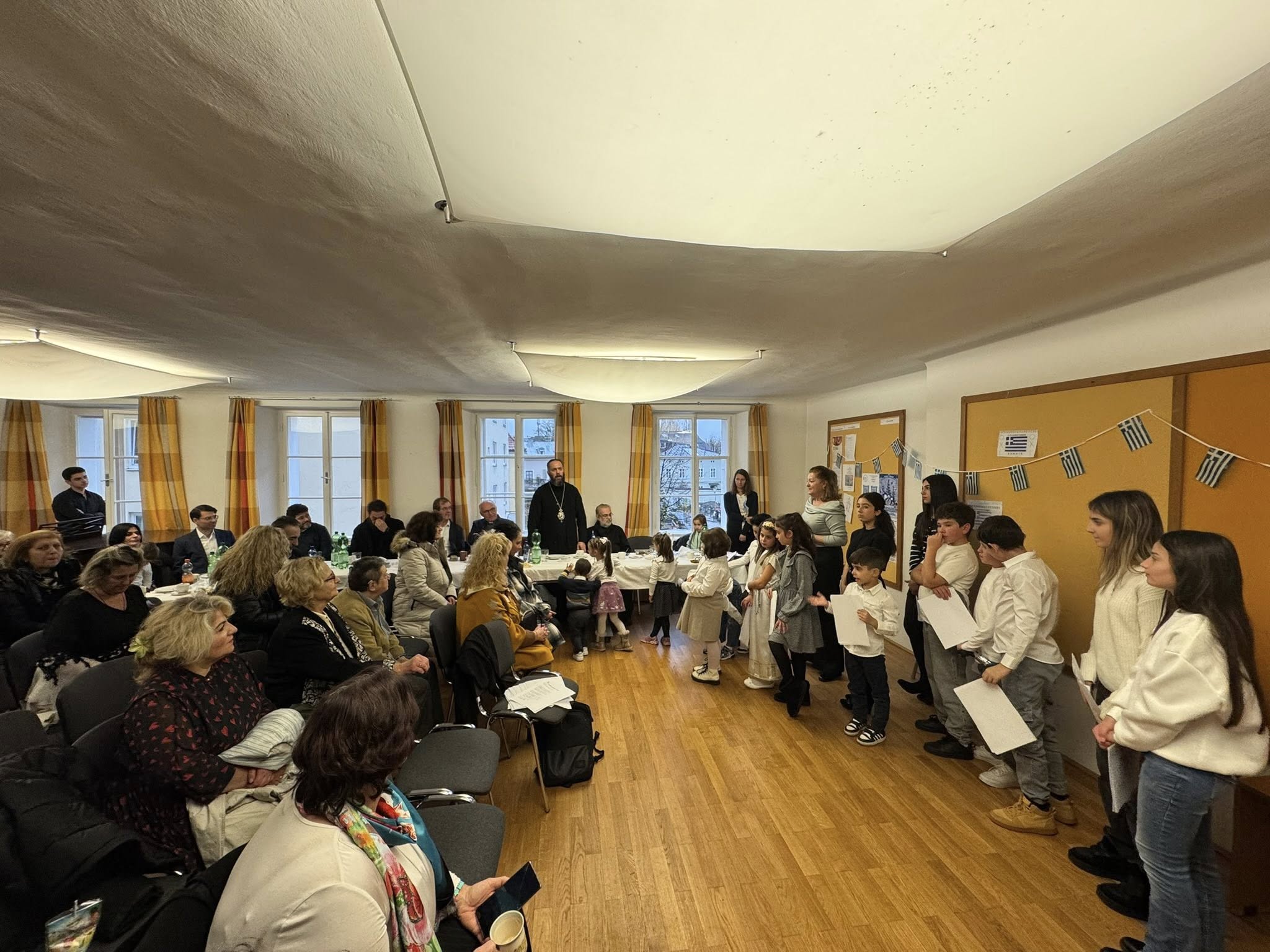 Nach dem Ende der Göttlichen Liturgie dankte Seine Eminenz dem scheidenden Archimandriten Elias Papadopoulos, der nun in Wien dienen wird. Er hieß den neuen Pfarrer, Protopresbyter Zafirios Koutelieris, willkommen und forderte ihn auf, dem Beispiel seines Vorgängers zu folgen, Christus zu lehren und den Leidenden beizustehen. Im Anschluss an die Liturgie fand eine Schulfeier zum Thema „Nationalfeiertage Griechenlands und Österreichs” mit Gedichten und Liedern statt. Danach bot sich die Gelegenheit zu Begegnungen und Gesprächen.