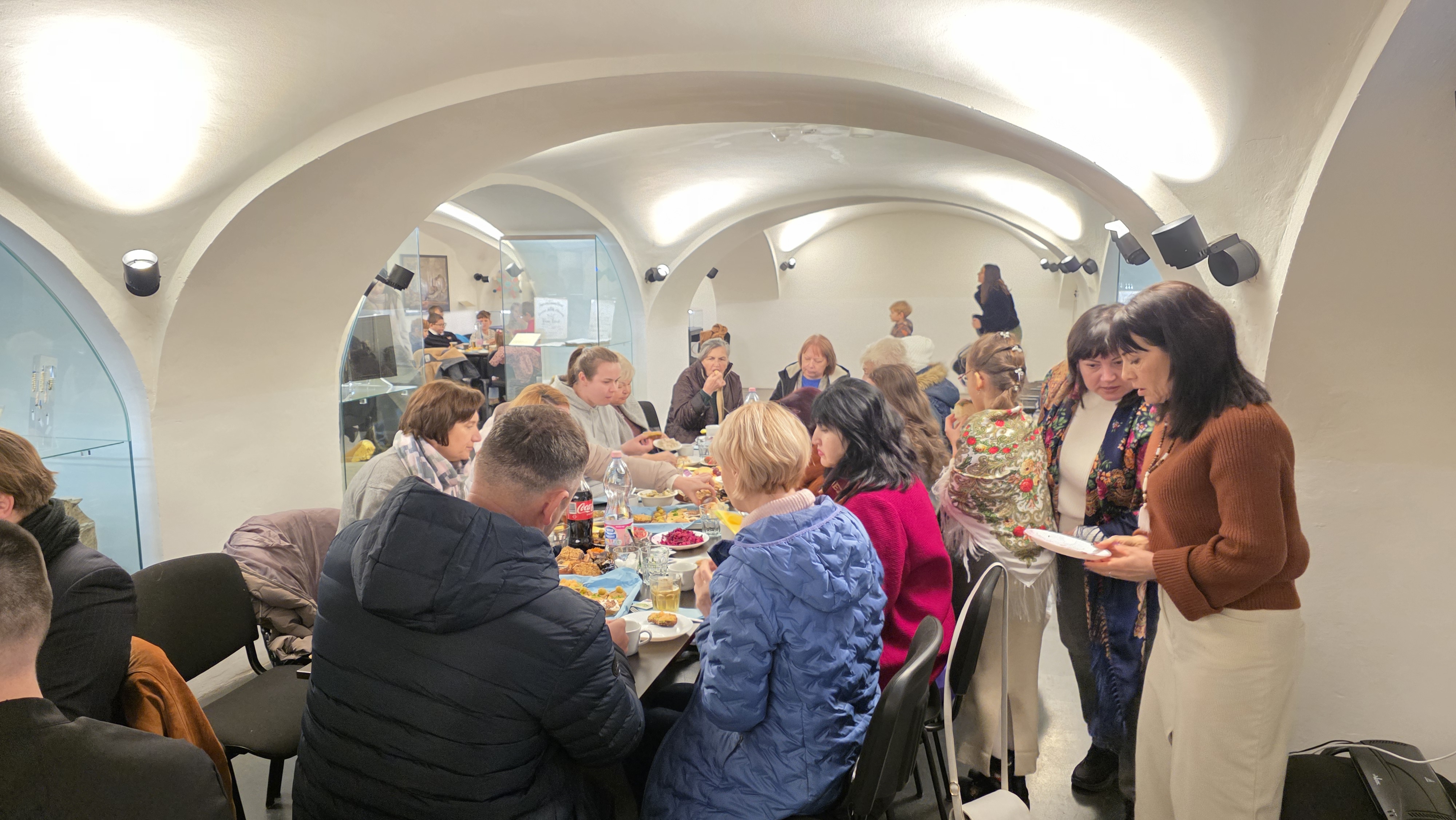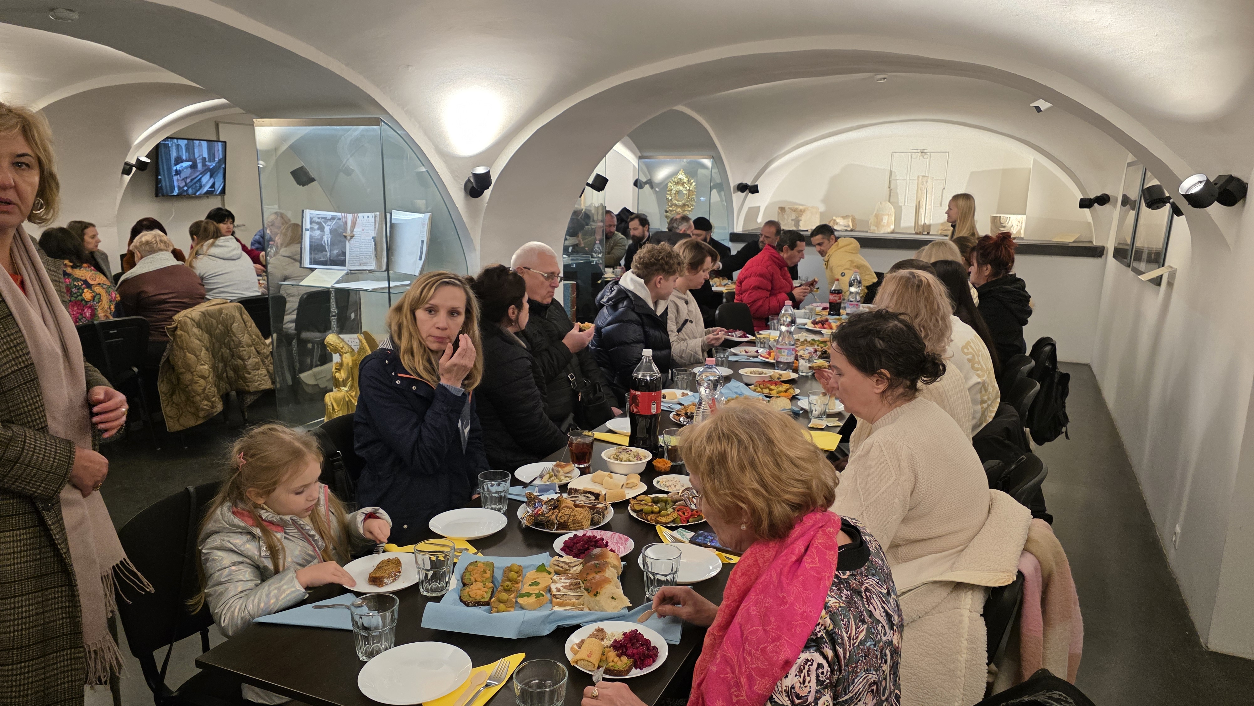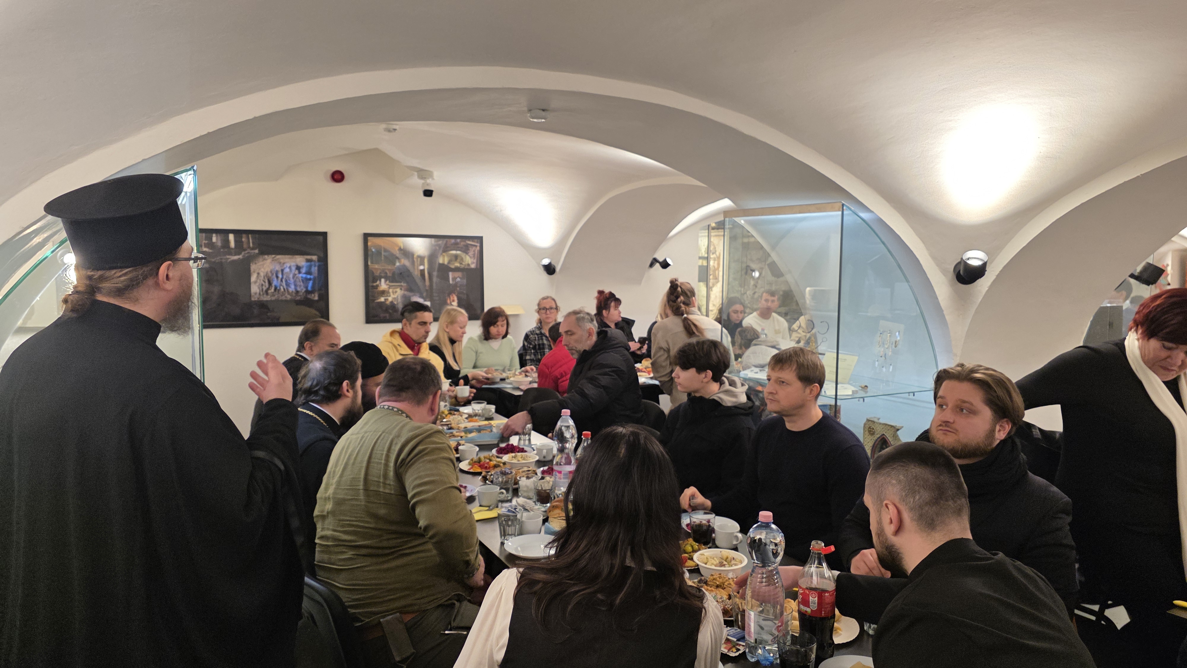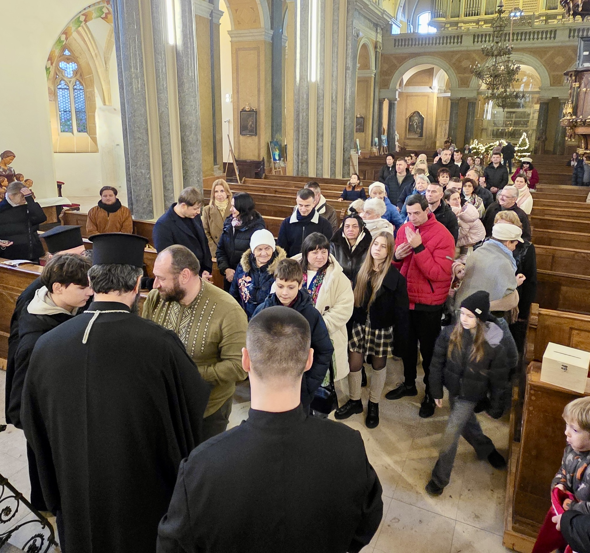 Vor der Entlassung wurde ein besonderes Gebet für die Beendigung des Krieges und das Herrschen des Friedens in der Ukraine gesprochen. Seine Eminenz gratulierte Vater Dimitrios zu dem geleisteten Werk und stärkte die Gläubigen mit Worten der Hoffnung. Im Anschluss folgte ein festliches Weihnachtsprogramm, das von den Kindern und Jugendlichen der Gemeinde dargeboten wurde, sowie ein gemeinsames Mahl, bei dem die Bischöfe die Gelegenheit hatten, mit den Gläubigen ins Gespräch zu kommen und die Freude des nahenden Weihnachtsfestes zu teilen. An dem Fest nahm auch Seine Exzellenz Bischof Paisiow von Apameia,, der seinerseits die Gemeinde für ihre Aktivitäten lobte.