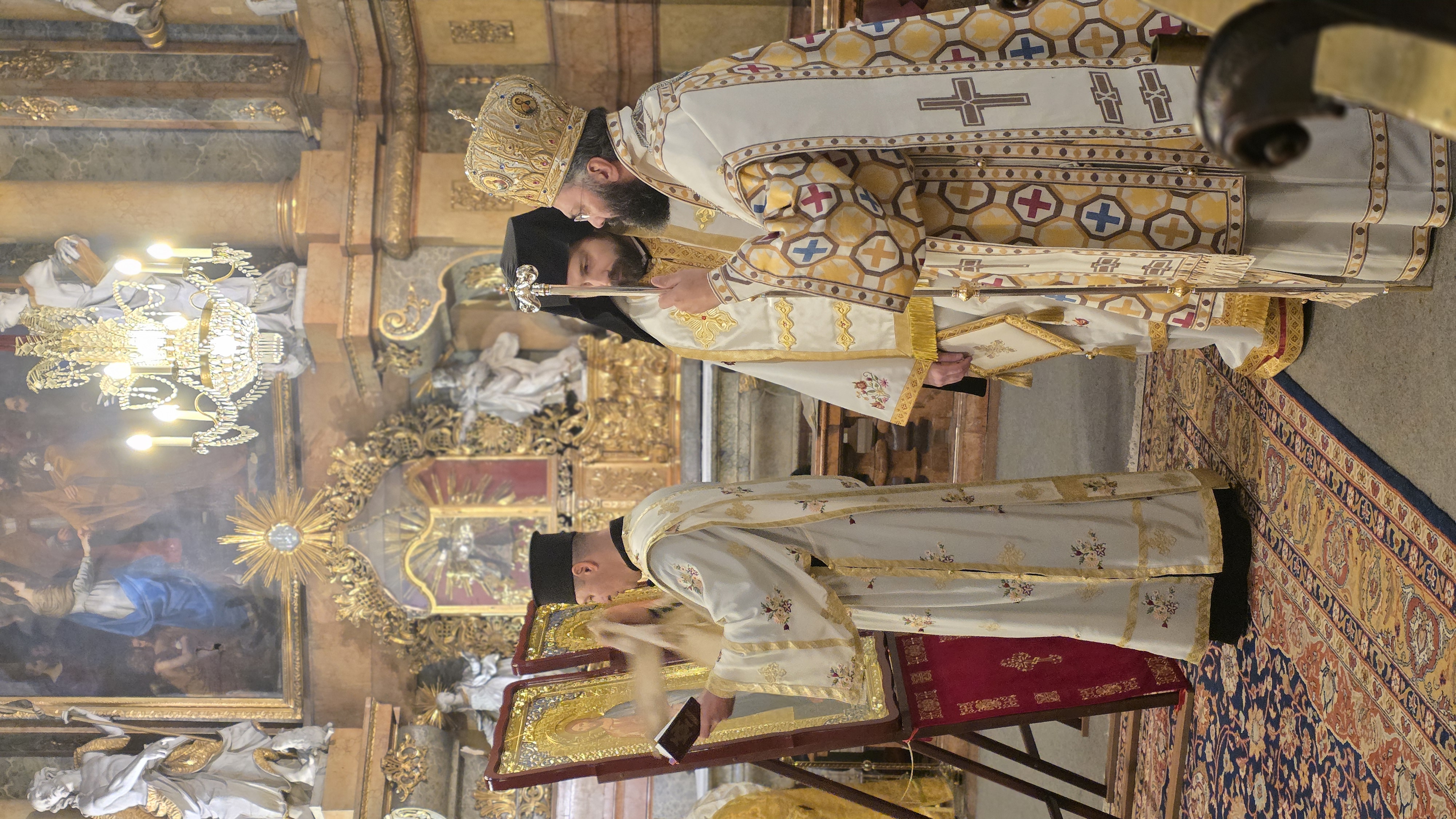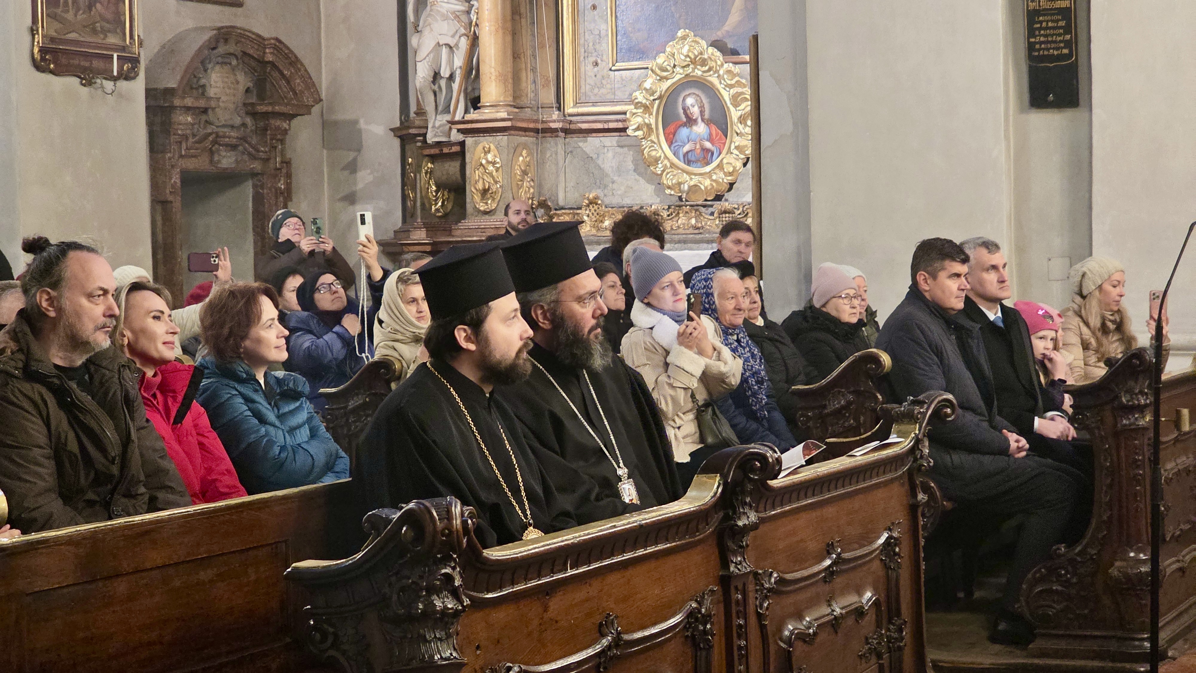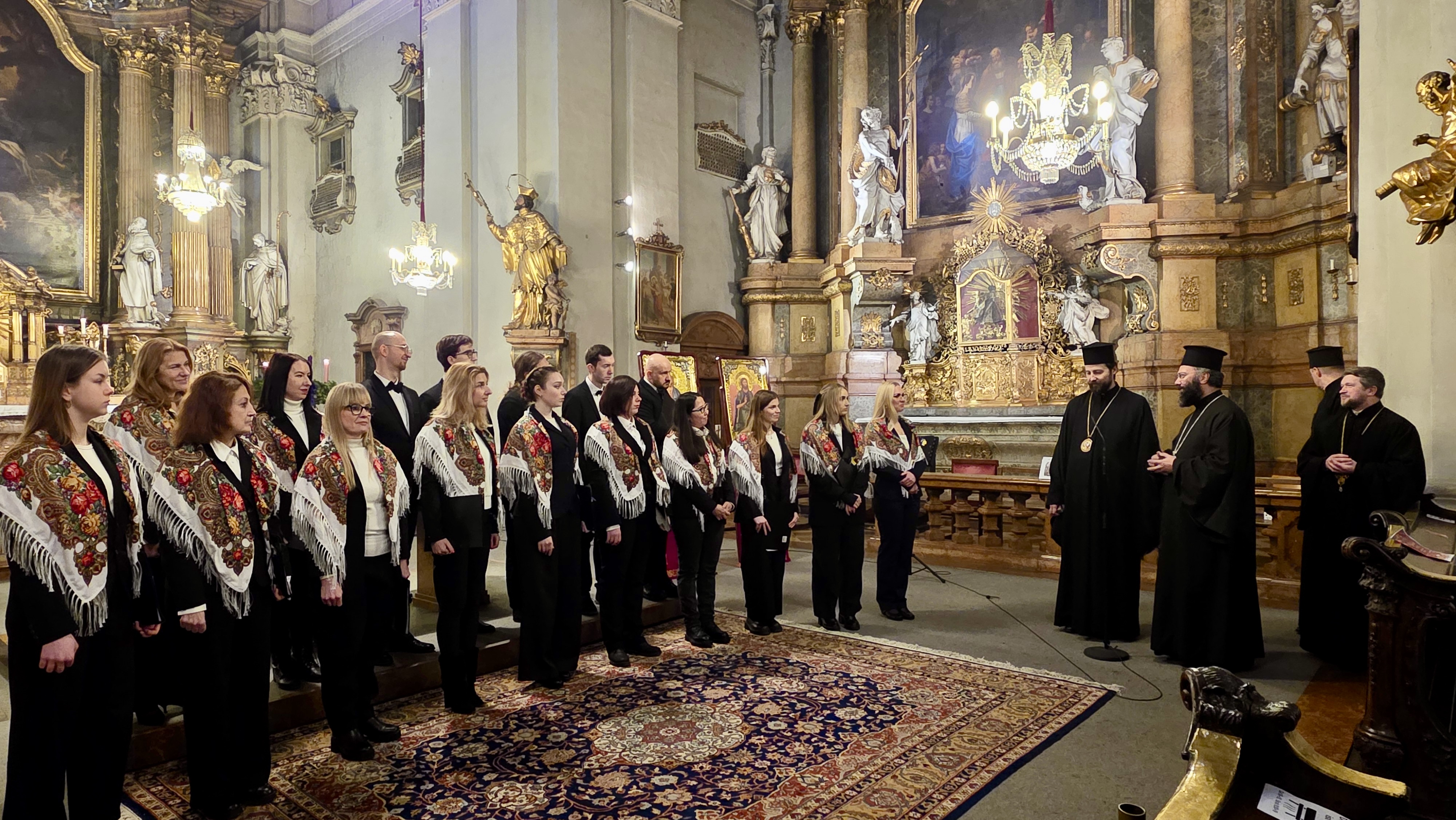 Vor der Entlassung betete Seine Eminenz für die Einstellung der Kampfhandlungen und das Herrschen des Friedens in der Ukraine und drückte seine Unterstützung für die Familien und Angehörigen der Opfer des ungerechten Krieges aus. Im Anschluss nahm er die Erhebung von Vater Yuri Strugov, der vor zehn Jahren mit seinem Segen den Aufbau der ersten ukrainischsprachigen Gemeinde in Wien begann, zum Erzpriester vor und ernannte ihn zum Bischofsvikar der ukrainischsprachigen Gemeinden der Metropolis, um Bischof Maximos bei seinem Werk zu unterstützen. Am Ende der Göttlichen Liturgie weihte Seine Eminenz Hypodiakone für den Dienst im Altar. Es folgten ein festlicher Empfang und ein Weihnachtskonzert mit aktuellen Hymnen in den Räumlichkeiten der Gemeinde.