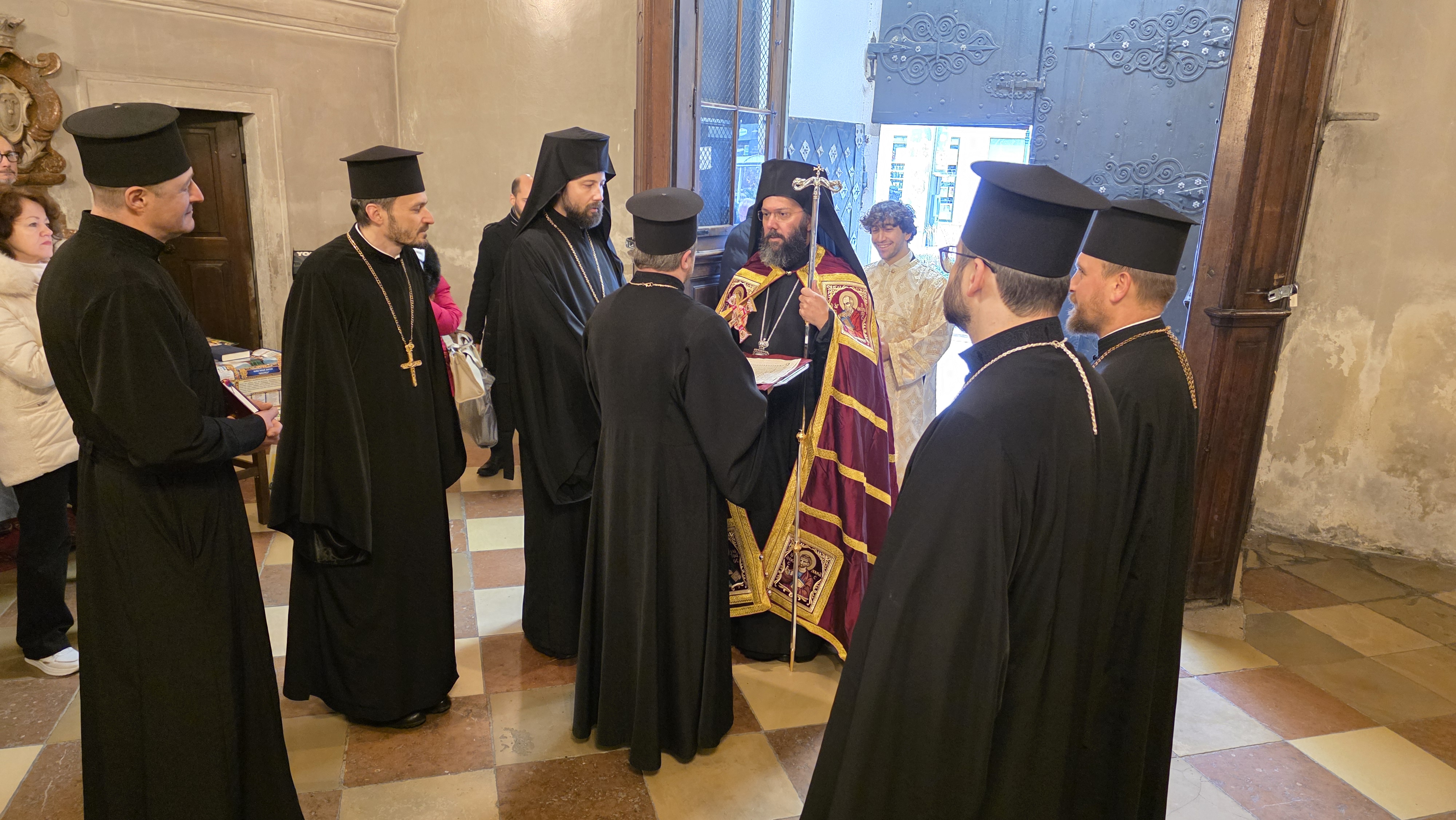 In seiner Predigt sprach Seine Eminenz über die evangelische Perikope vom Großen Gastmahl und betonte, dass diese uns das Zentrum der christlichen Ontologie offenbart: Das Reich Gottes ist kein Ort, keine Belohnung und kein metaphysischer Zustand, sondern ein Mahl, das heißt ein Ereignis der Beziehung, der Koexistenz und des gemeinsamen Lebens. Gott ruft uns zur Gemeinschaft der Personen. Die Tragik, so merkte er an, liegt nicht in der Ablehnung, sondern in deren Rechtfertigung. Die Eingeladenen lehnen nicht einfach ab, sondern bringen logische Argumente vor und ersetzen die Beziehung durch das Nützliche. Die Annahme der Einladung erfordert das Aufgeben der Selbstgenügsamkeit und den Glauben als Ersetzung des „Ich“ durch das „Wir“ des Reiches Gottes. Das Mahl ist eucharistisch und eschatologisch, und Christus ruft uns alle an den Tisch des Glaubens und bittet uns, uns auf die Begegnung mit Gott vorzubereiten, der kommt, um Mensch zu werden.