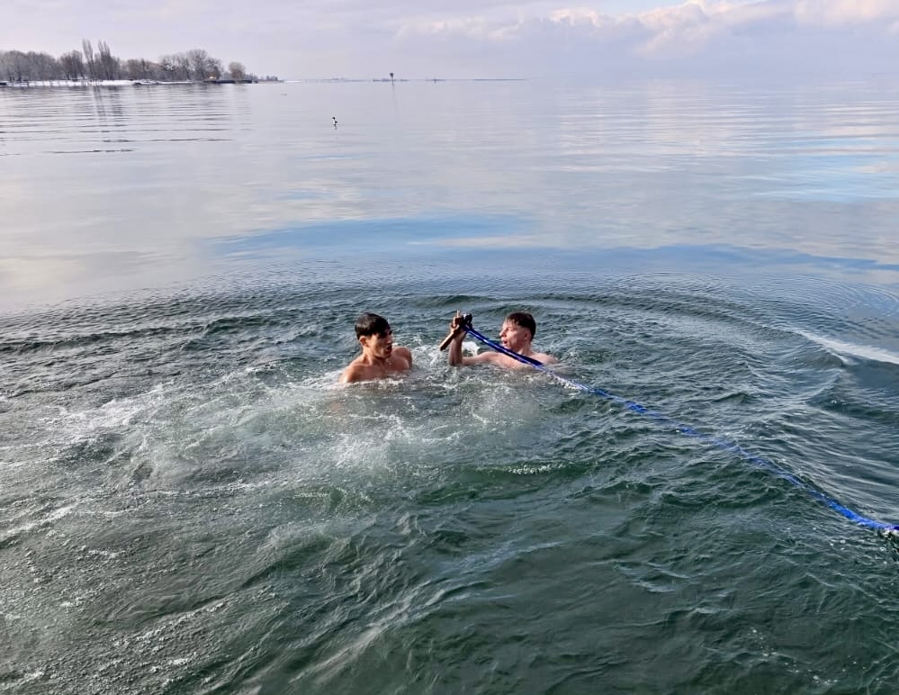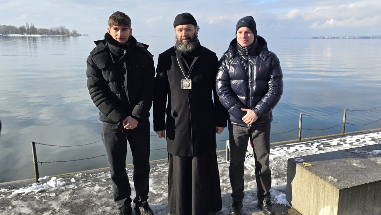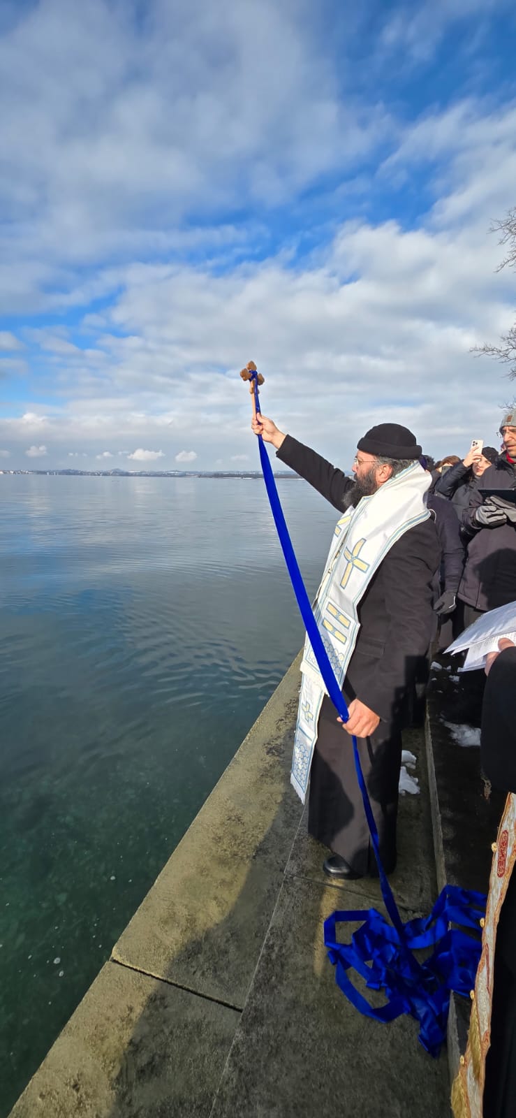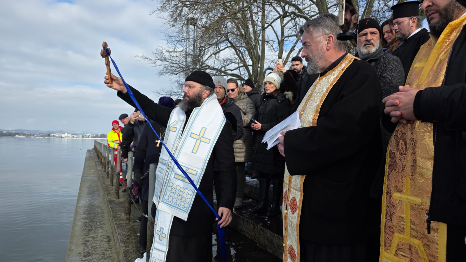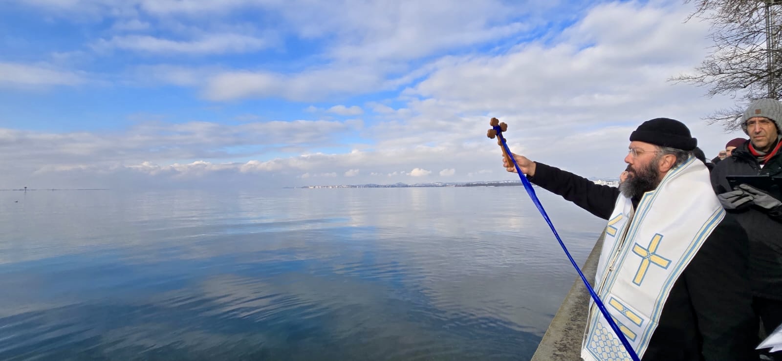 Im Anschluss wurde die Große Wasserweihe am Bodensee zelebriert, wozu auch Kleriker anderer orthodoxer Präsenzen. Beim Werfen des Kreuzes in den Bodensee in Anwesenheit zahlreicher Gläubiger eilten Schwimmer trotz der Kälte herbei, um es der Tradition gemäß zu fangen und den Segen der Kirche zu empfangen.