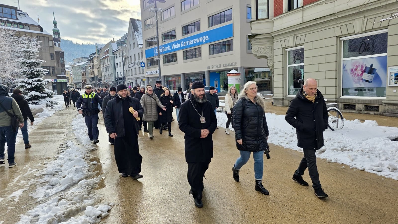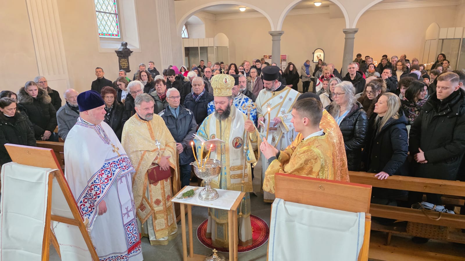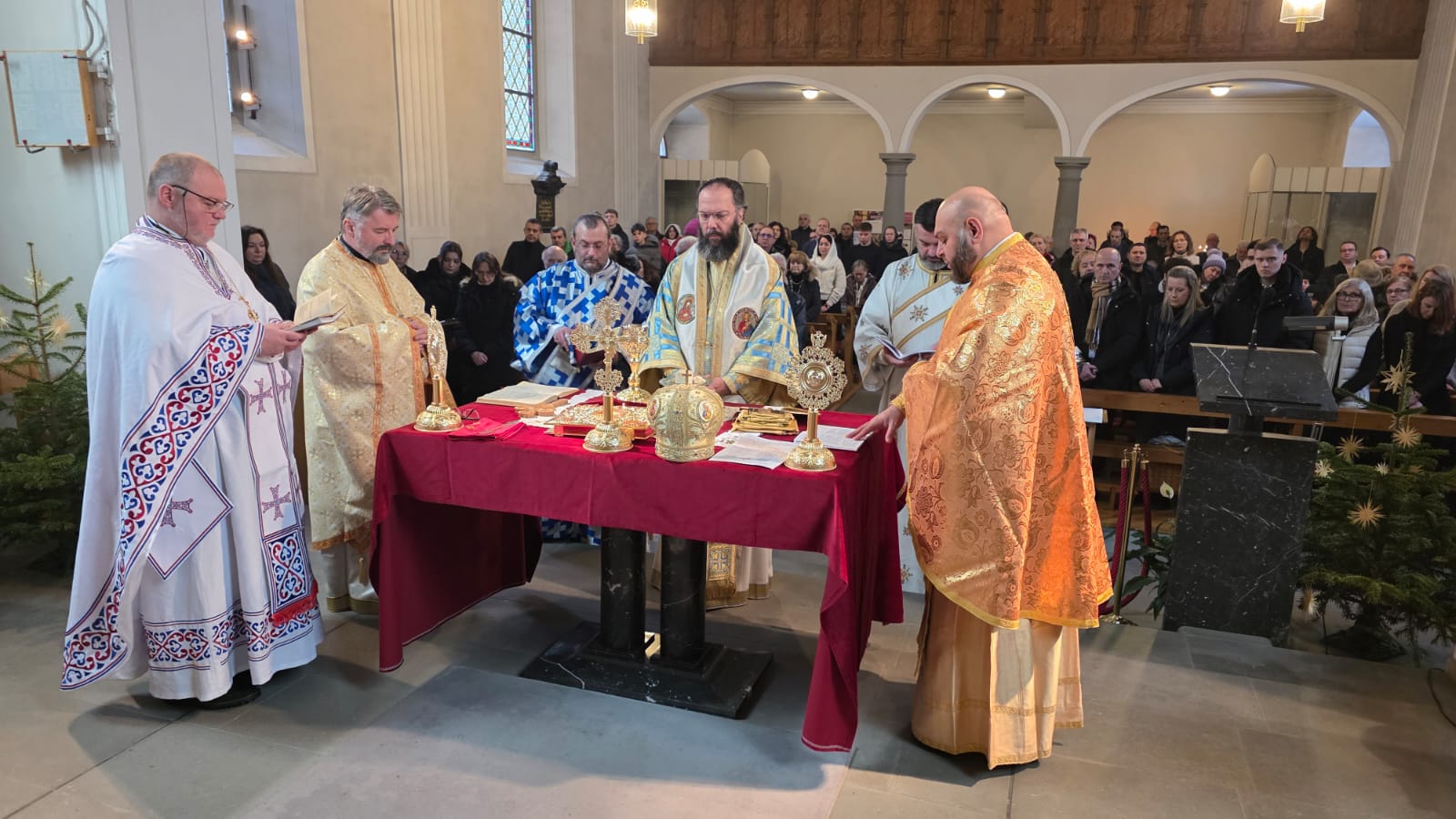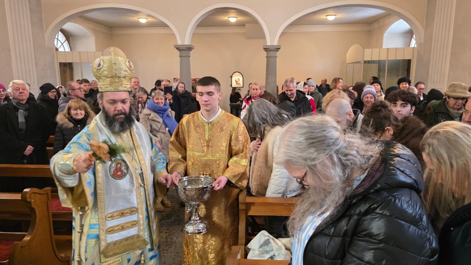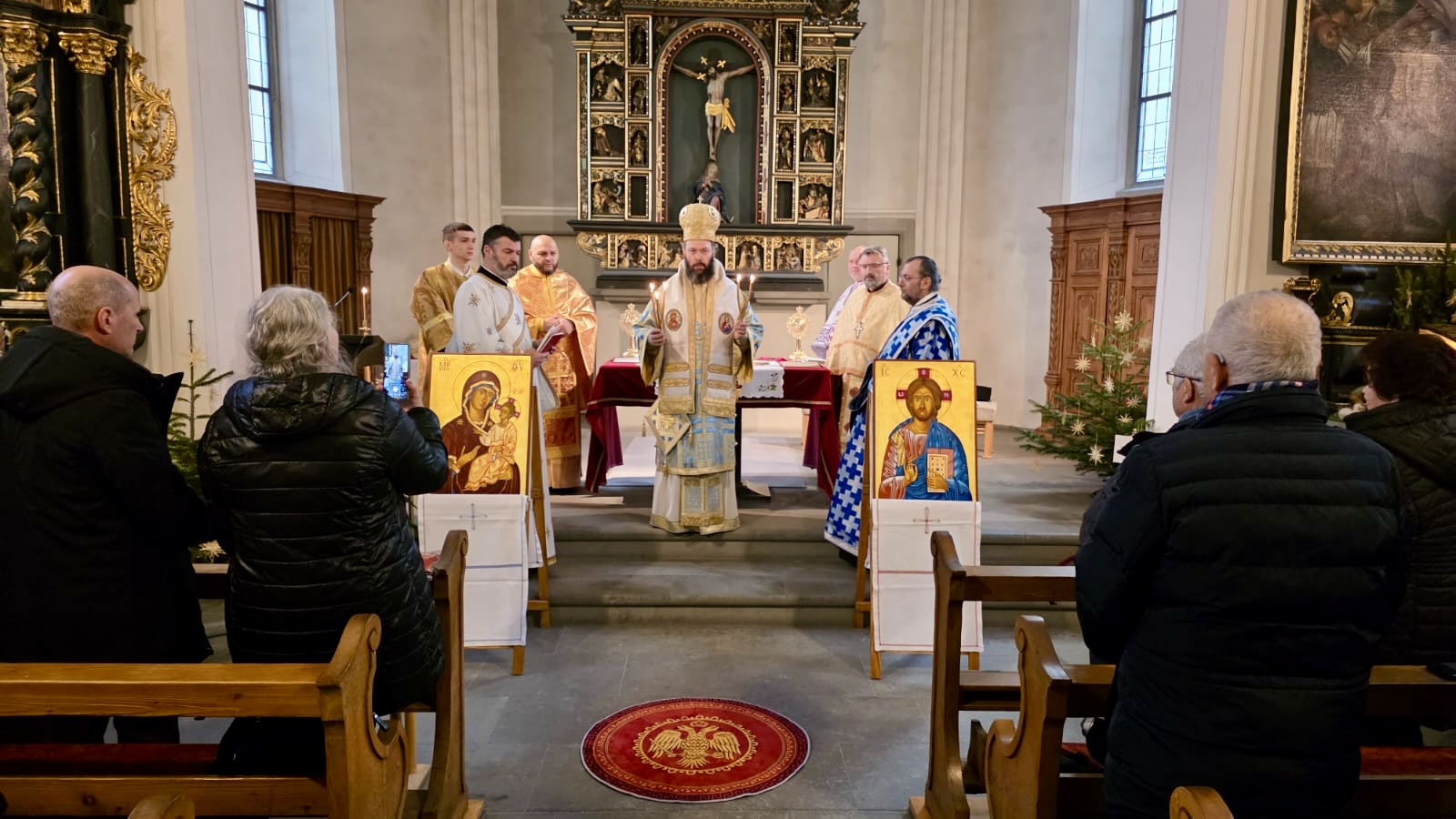Am Sonntag nach der Theophanie, dem 11. Januar 2026, am Gedenktag unseres Heiligen Vaters Theodosios des Koinobiarchen, stattete Seine Eminenz Metropolit Arsenios von Austria der Kirchengemeinde zu den Heiligen Drei Hierarchen in Bregenz einen Pastoralbesuch ab, wo er der Erzbischöflichen Göttlichen Liturgie in der Seekapelle am Ufer des Bodensees vorstand. Mit Seiner Eminenz konzelebrierten der Priester der Gemeinde, Oikonomos Stavrophoros Nebojsa Grdinic, Vater Vadim Karpenko aus Lindau und Vater Ovidiu Cozma aus Feldkirch sowie die Diakone Markus Peter und Cedomir Mijic. Nach der Göttlichen Liturgie wurde die Große Wasserweihe am Bodensee zelebriert, wo auch Erzpriester Goran Eric anwesend war. Seine Eminenz vollzog in Anwesenheit zahlreicher Gläubiger das Werfen des Kreuzes in den Bodensee, und Schwimmer eilten trotz der Kälte herbei, um es der Tradition gemäß zu fangen.
